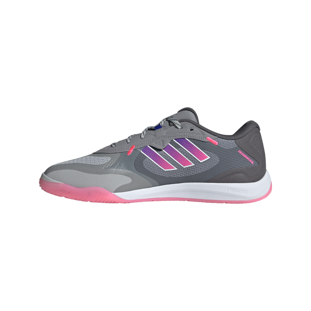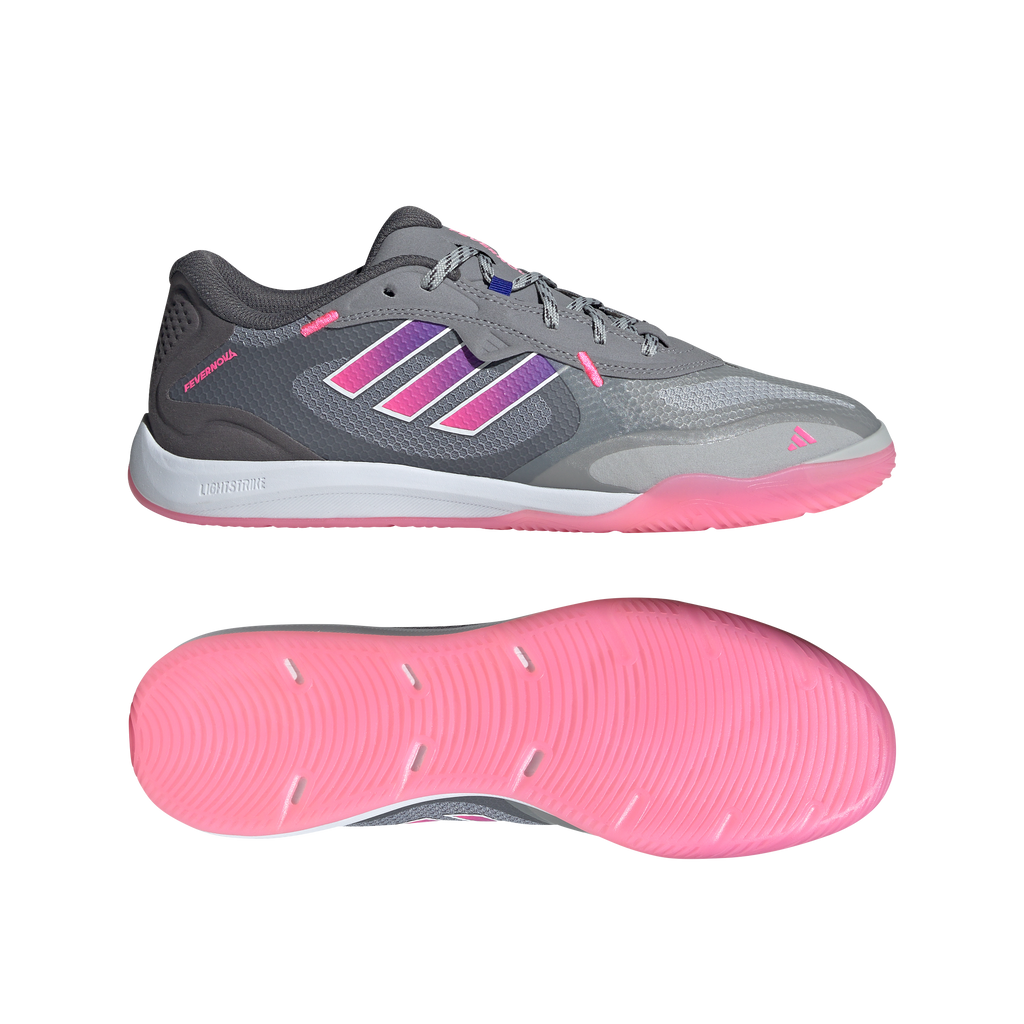 Made for red-hot futsal skills. With a design inspired by the iconic adidas Fevernova ball, these indoor football boots have a flexible textile upper with TPU overlays for abrasion resistance. Lightstrike cushioning supports explosive movement and a grippy rubber outsole offers match-turning traction on flat surfaces, so you can twist and cut with confidence.