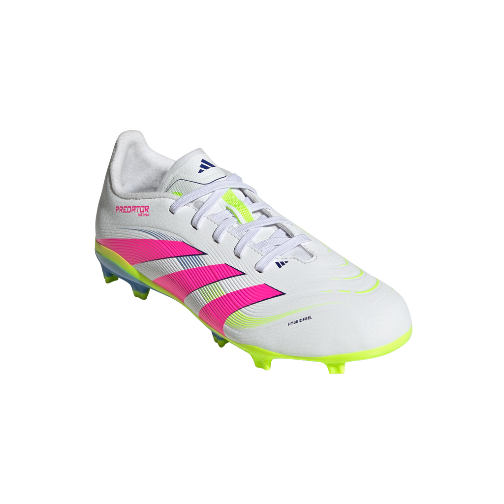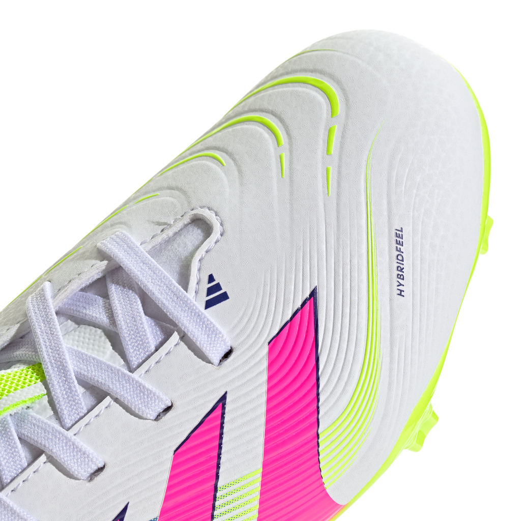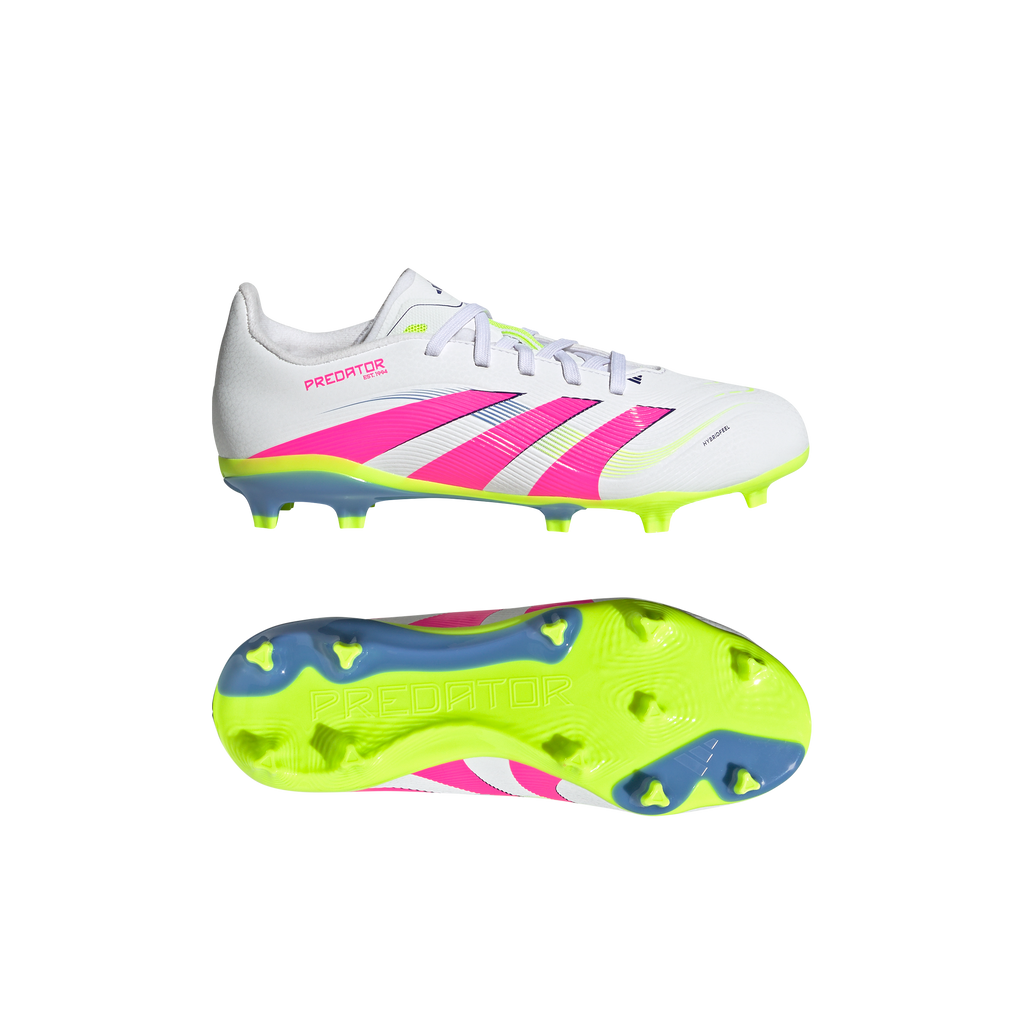 Go into every game knowing you'll score in juniors' adidas Predator League boots crafted for goals. Their Hybridfeel upper incorporates an all-over 3D texture and grippy Strikescale fins to help you manipulate the football during strikes. A versatile outsole ensures you're in the right place at the right time on a variety of surfaces.