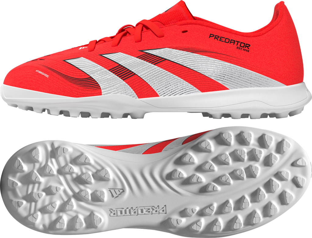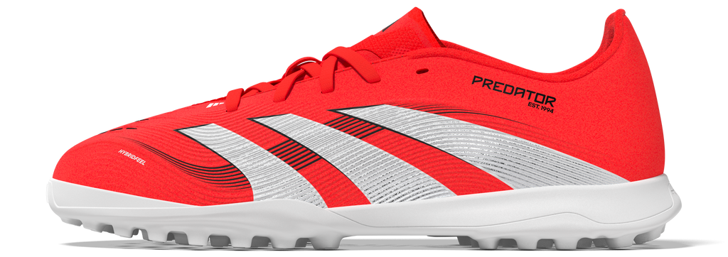 Go into every game knowing you'll score in juniors' adidas Predator League boots crafted for goals. Their Hybridfeel upper incorporates an all-over 3D texture and grippy Strikescale fins to help you manipulate the football during strikes. A lug rubber outsole ensures you're in the right place at the right time on artificial turf.