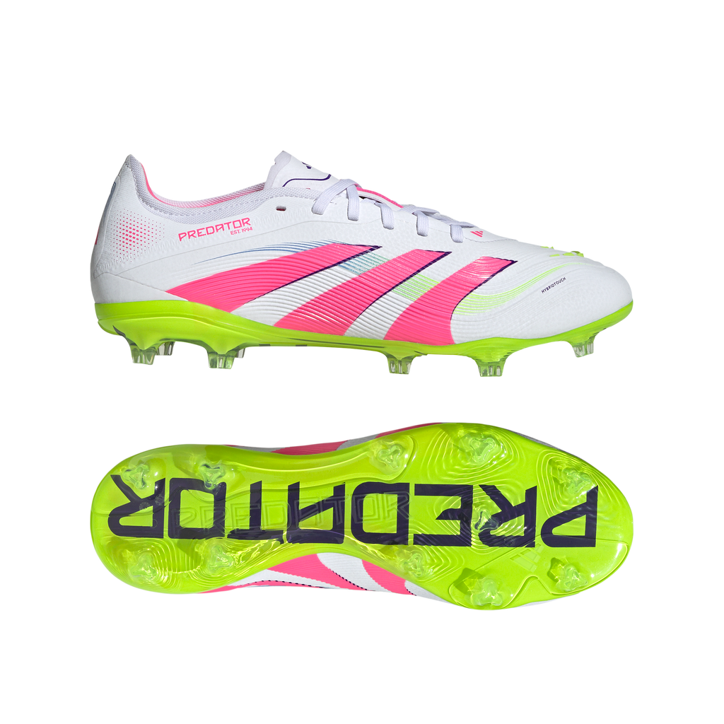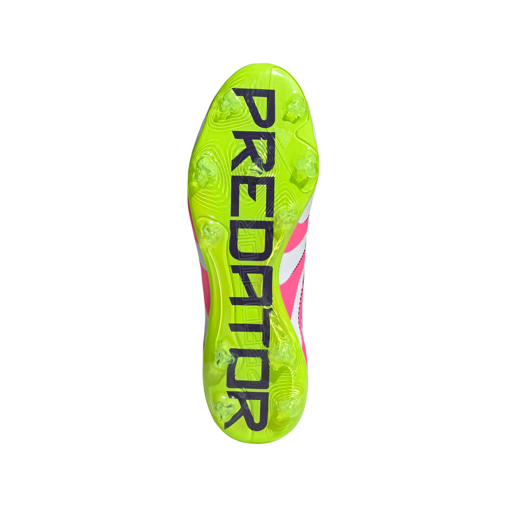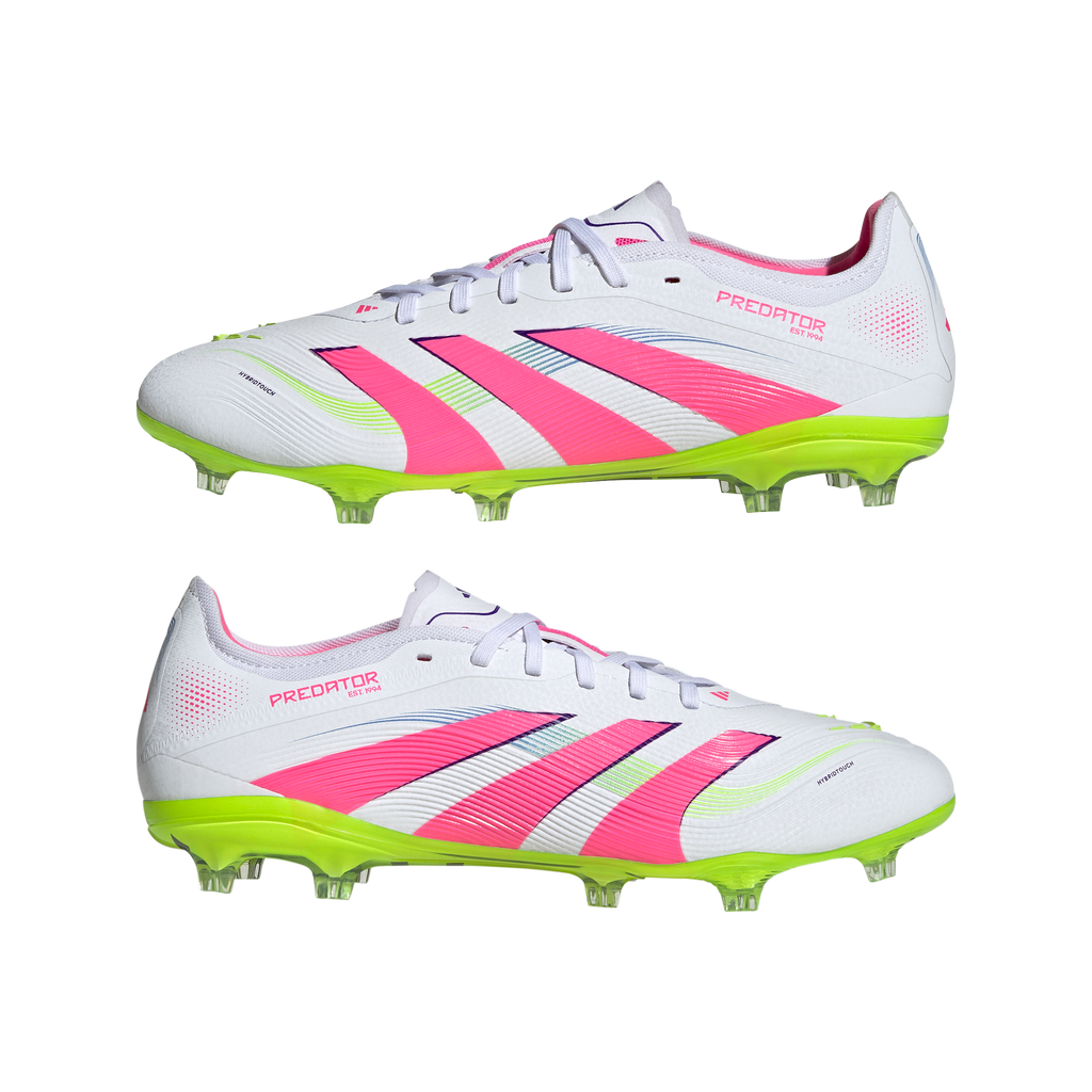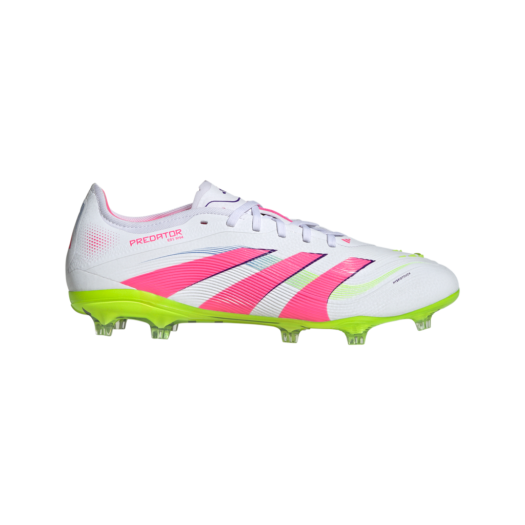 Go into every game knowing you'll score in adidas Predator Pro boots crafted for goals. Grippy rubber Strikeskin fins on the soft, flexible HybridTouch upper assist with every strike of the football. Underneath, a full-length Controlplate outsole offers all the stability you need to set your sights on firm ground pitches.