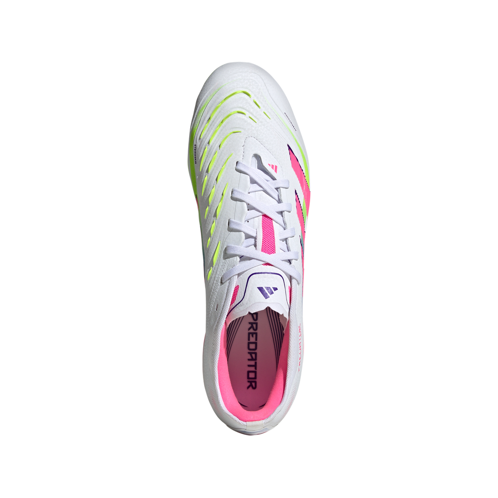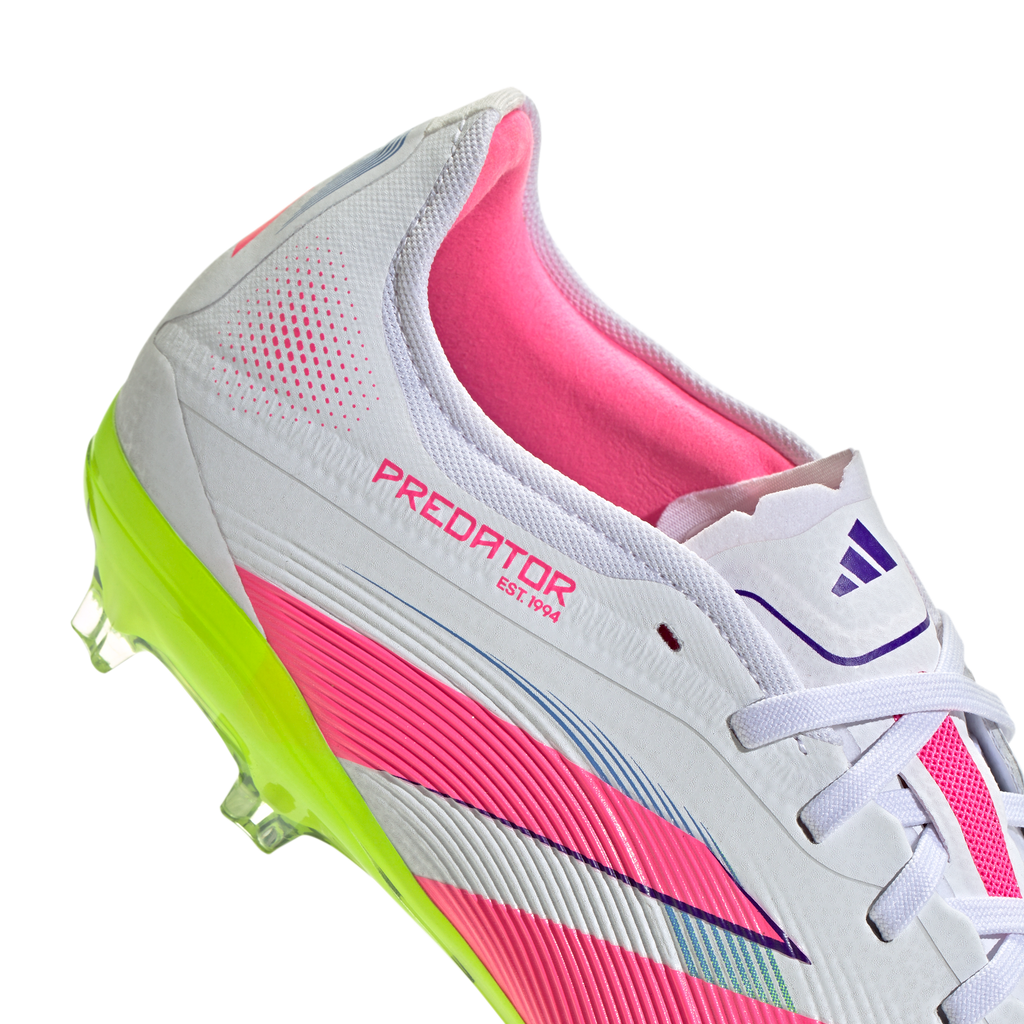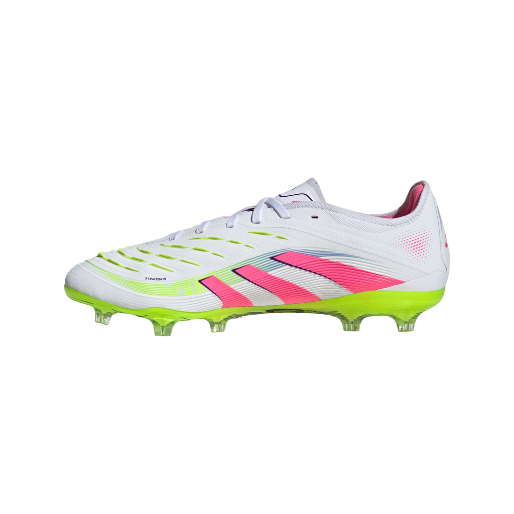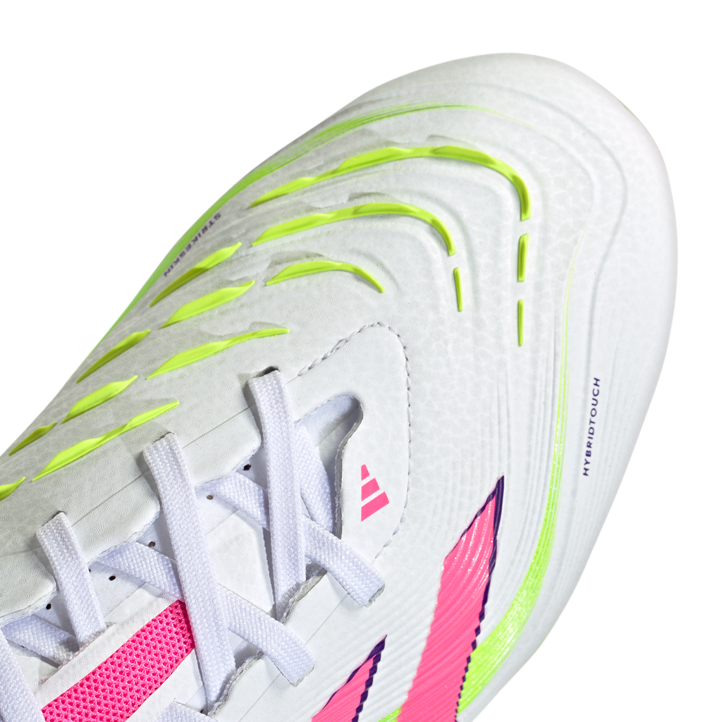 Go into every game knowing you'll score in adidas Predator Pro boots crafted for goals. Grippy rubber Strikeskin fins on the soft, flexible HybridTouch upper assist with every strike of the football. Underneath, a full-length Controlplate outsole offers all the stability you need to set your sights on firm ground pitches.