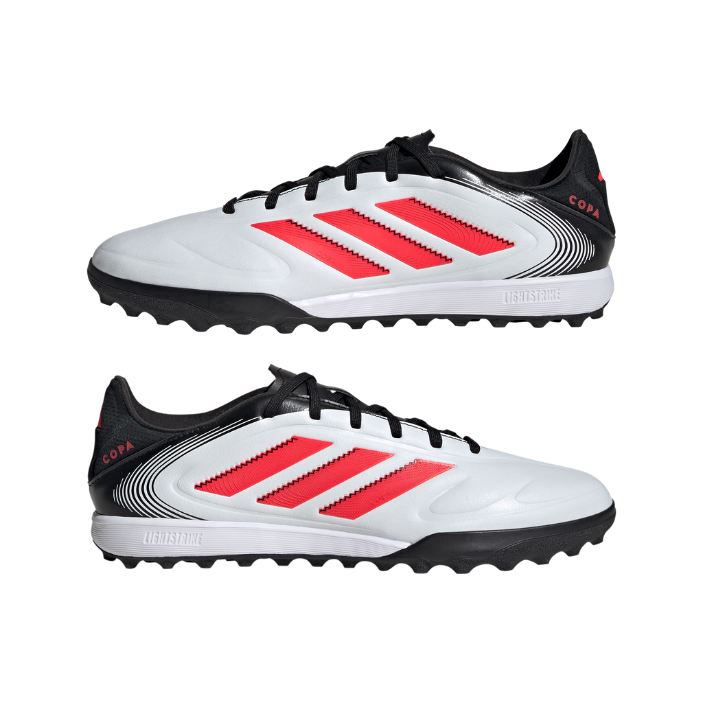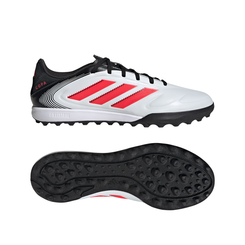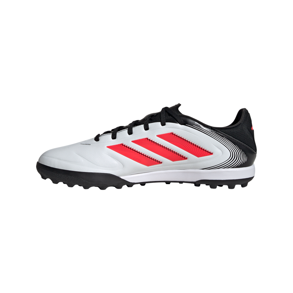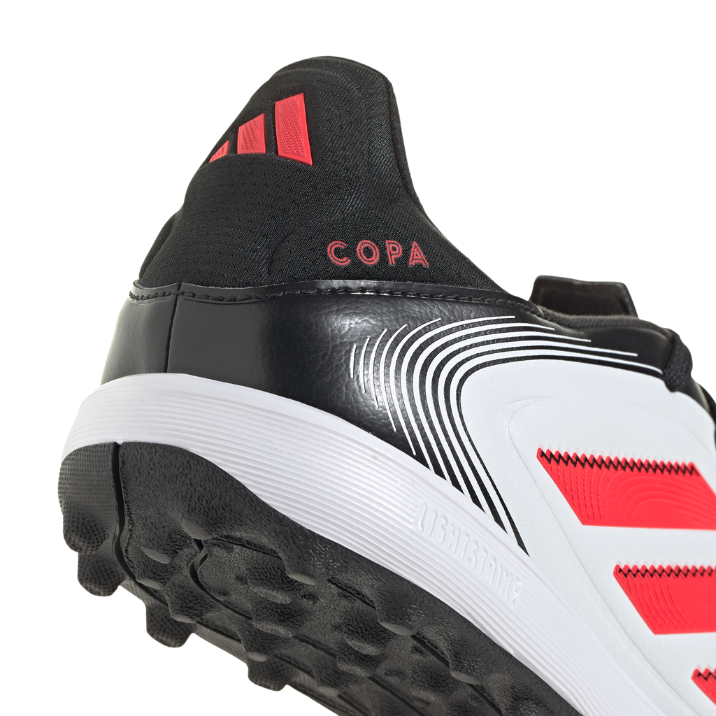Play the beautiful game your way in adidas Copa Pure 3 League boots designed for comfort and connection. Sporting the look and feel of leather, the synthetic Fusionfeel upper deploys a 3D print on the forefoot for assured touches. It sits on a soft EVA midsole that smooths out every sprint. Beneath that, a Comfortplate outsole lets you teach football lessons on artificial turf surfaces.