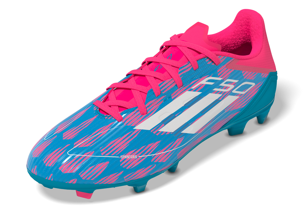 Free the fast with the adidas F50. Created to unlock the full potential of your acceleration, movement and speed. Locking you in with a stretchy tongue, the Fiberskin upper on these lightweight adidas League football boots shows off a Sprintgrid print on the forefoot. Down below, the Sprintplate 360 outsole is built for propulsion on multiple surfaces.