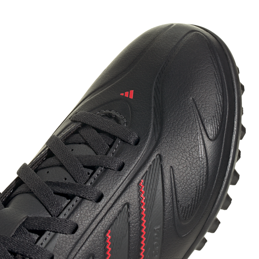 Play the beautiful game your way in juniors' adidas Copa Pure 3 Club boots designed for comfort and connection. The soft synthetic upper comes with a leather-effect grain texture for a classy look and a 3D print on the forefoot for a confident touch. That lug rubber outsole, meanwhile, makes for cultured football on artificial turf courts.