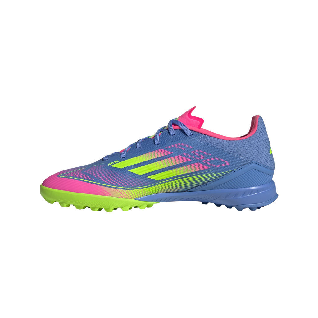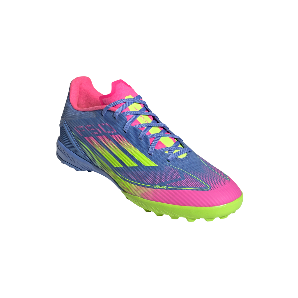 Push your pace to the limit in lightweight adidas F50 footwear engineered for speed. Standing out with an eye-catching Sprintgrid print, the Fiberskin upper on these League football boots employs an adaptive Tunnel Tongue that locks you in for the ride. Sitting on a lug rubber outsole made for artificial turf, soft EVA cushions every step.