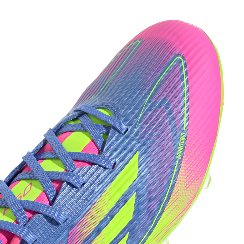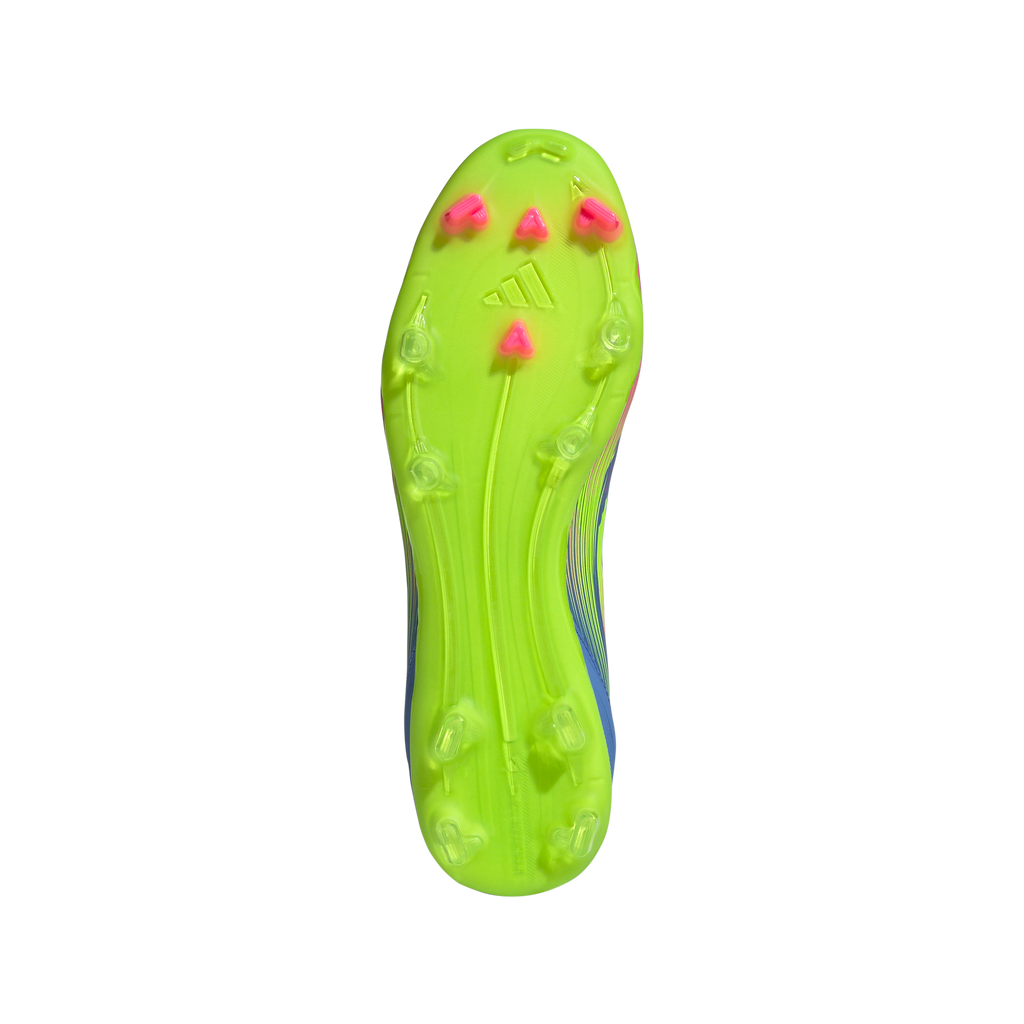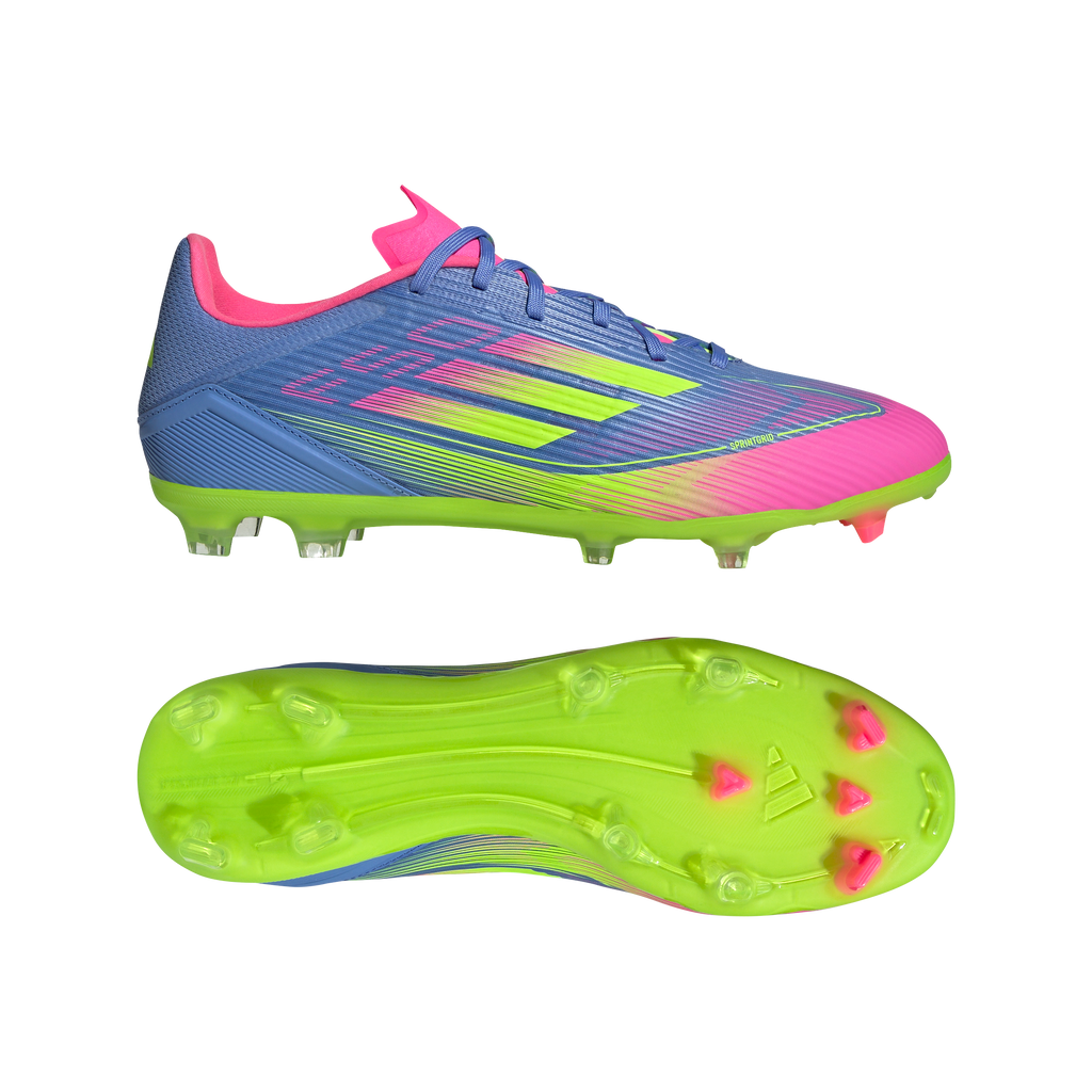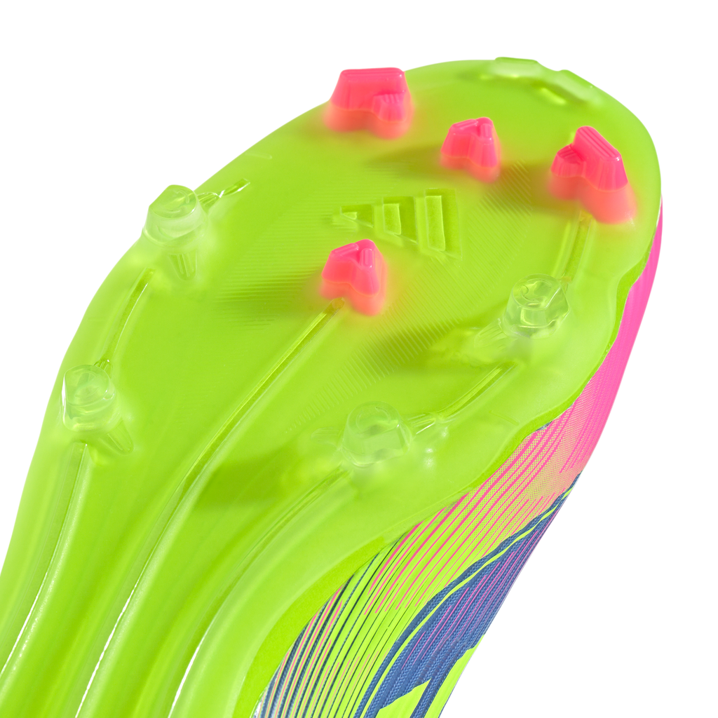 Push your pace to the limit in lightweight adidas F50 footwear engineered for speed. Standing out with an eye-catching Sprintgrid print, the Fiberskin upper on these League football boots employs an adaptive Tunnel Tongue that locks you in for the ride. Turn them over and you'll find a Sprintplate 360 outsole that delivers extra zip on firm ground and artificial grass surfaces. This product features at least 20% recycled materials. By reusing materials that have already been created, we help to reduce waste and our reliance on finite resources and reduce the footprint of the products we make.