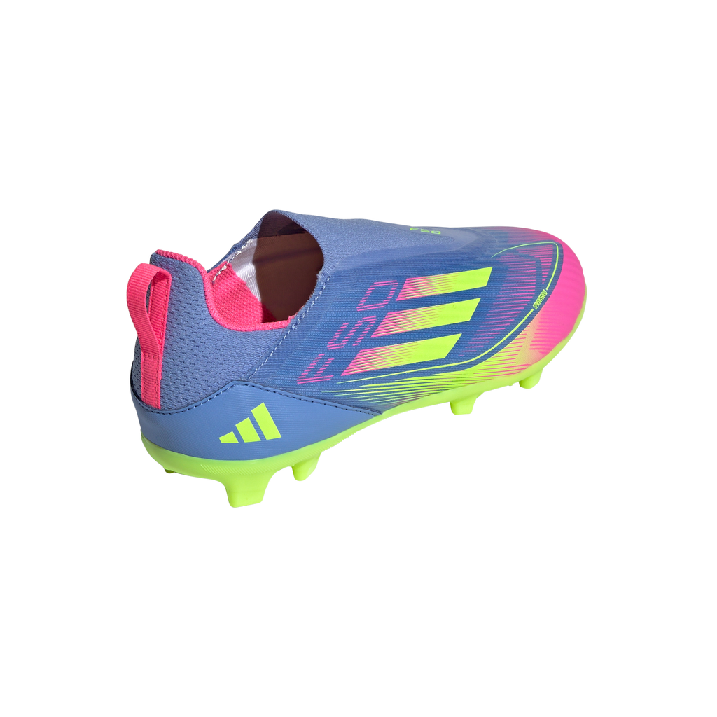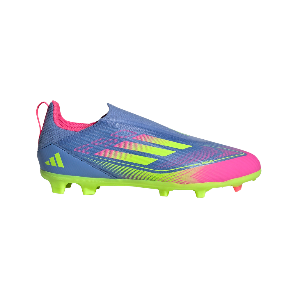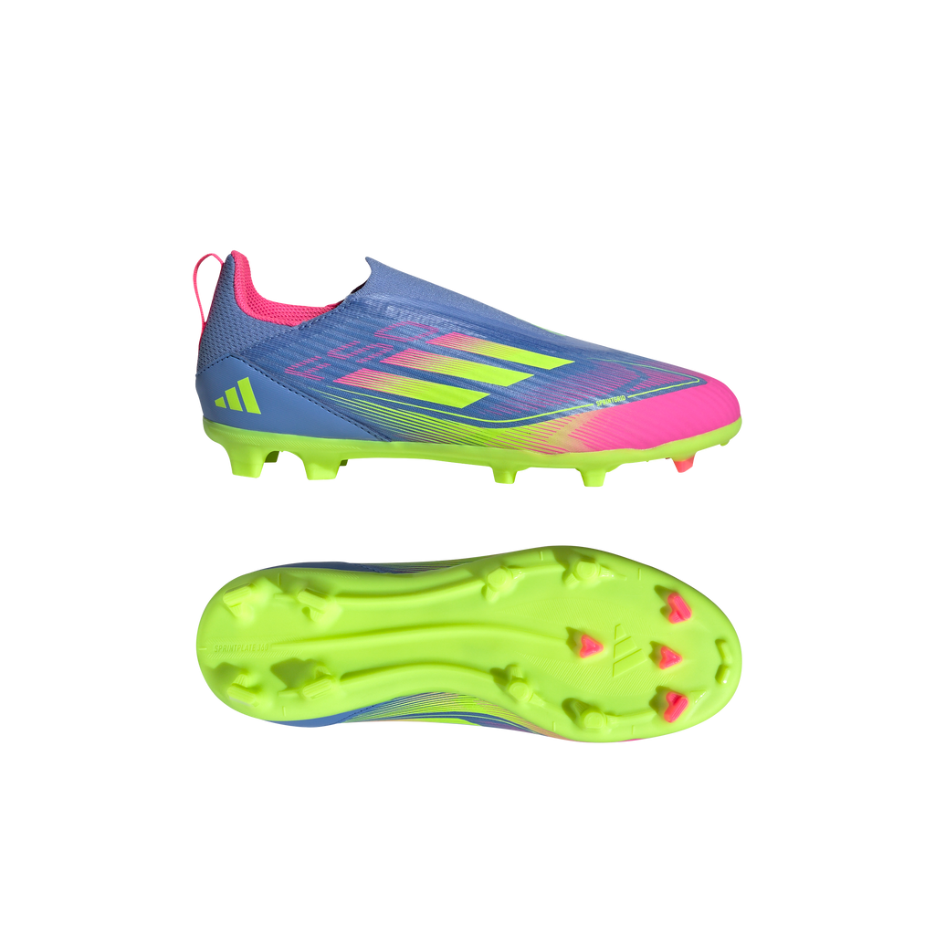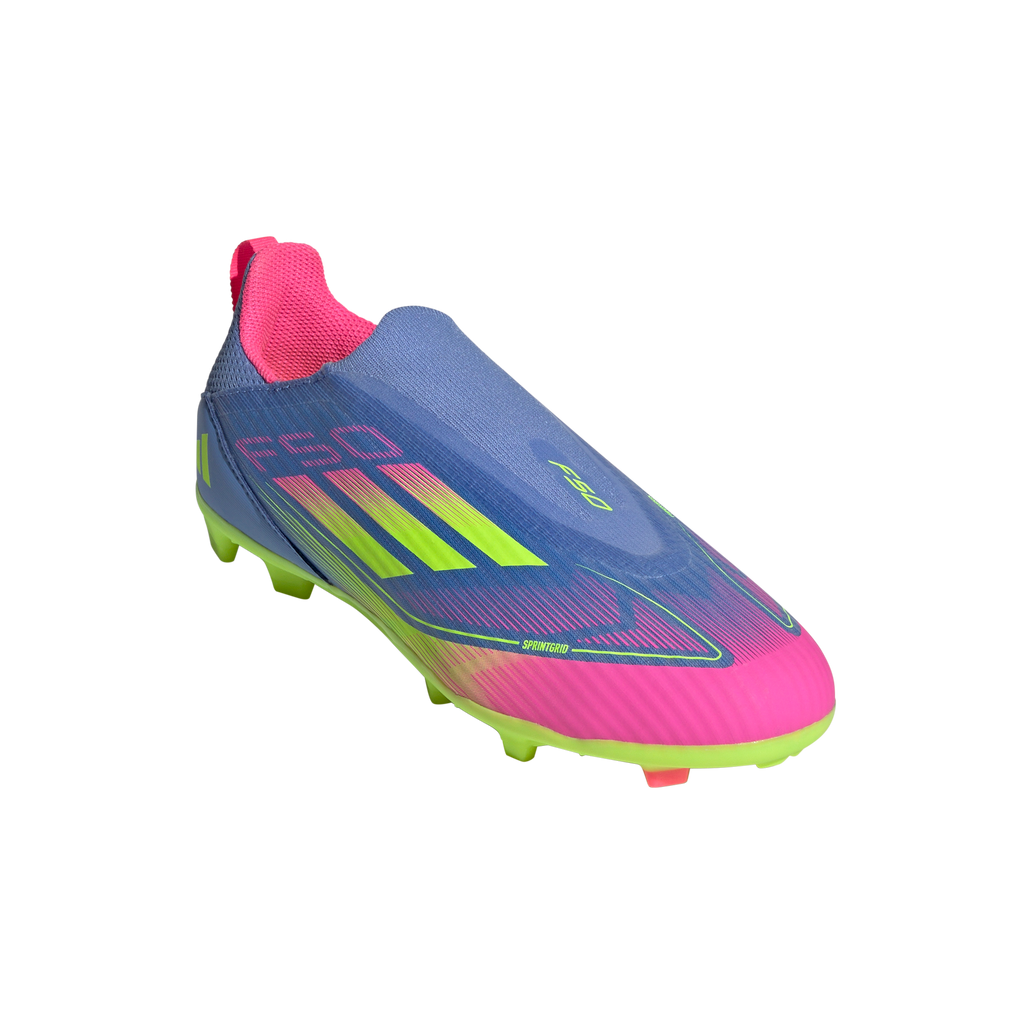 Push your pace to the limit in lightweight adidas F50 footwear engineered for speed. Standing out with an eye-catching Sprintgrid print, the Fiberskin upper on these juniors' League football boots employs an adaptive laceless collar for solid lockdown and clean striking. Turn them over and you'll find a Sprintplate 360 outsole that delivers extra zip on firm ground and artificial grass surfaces.