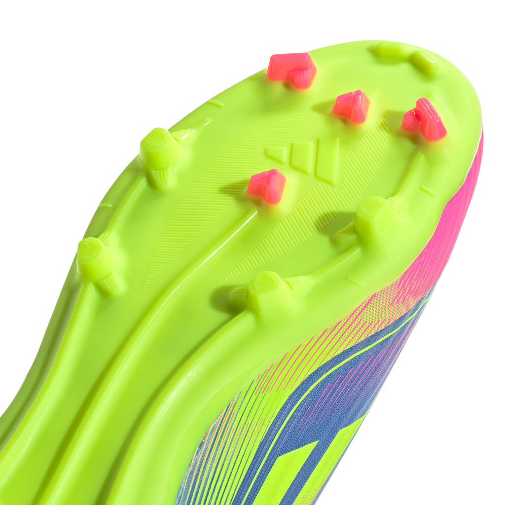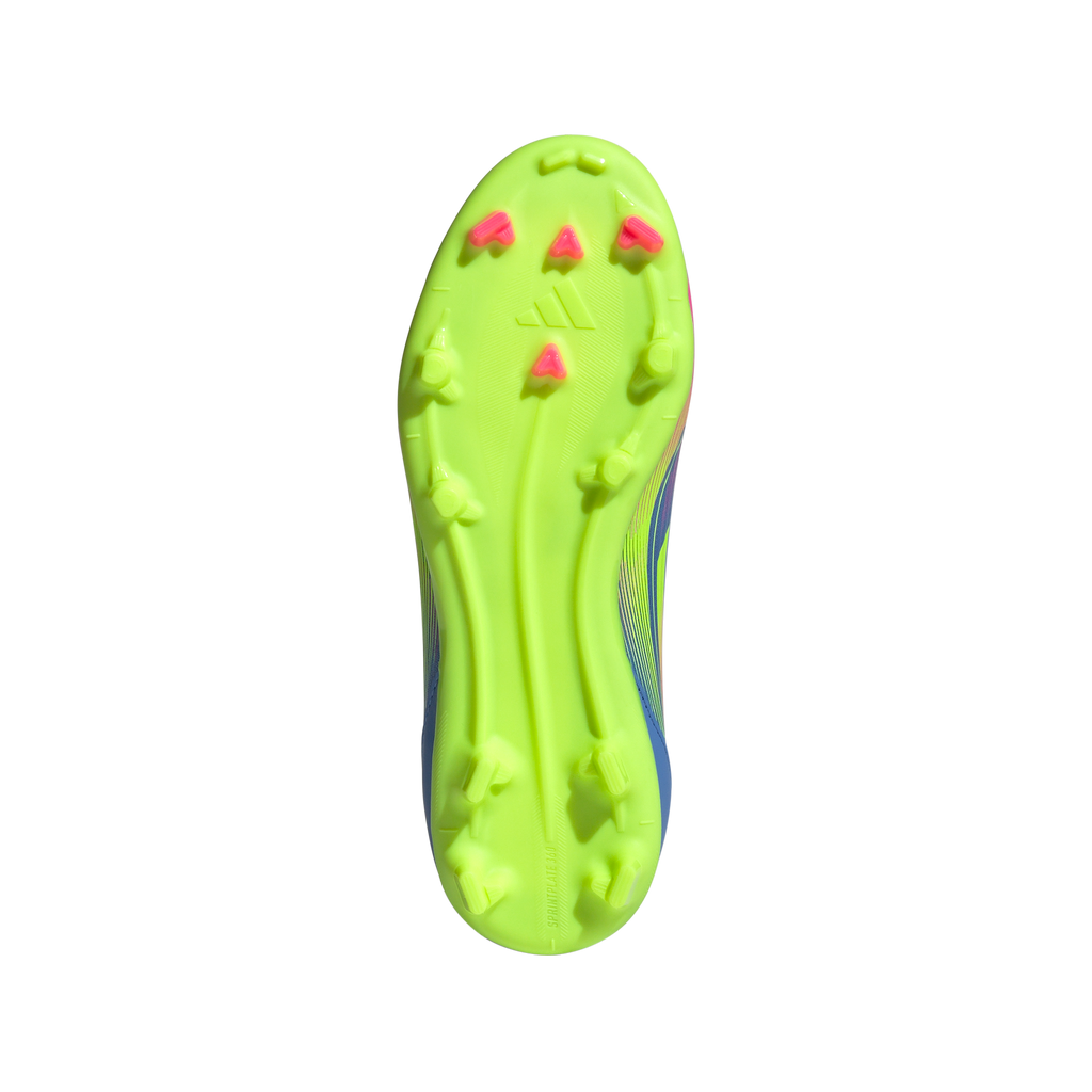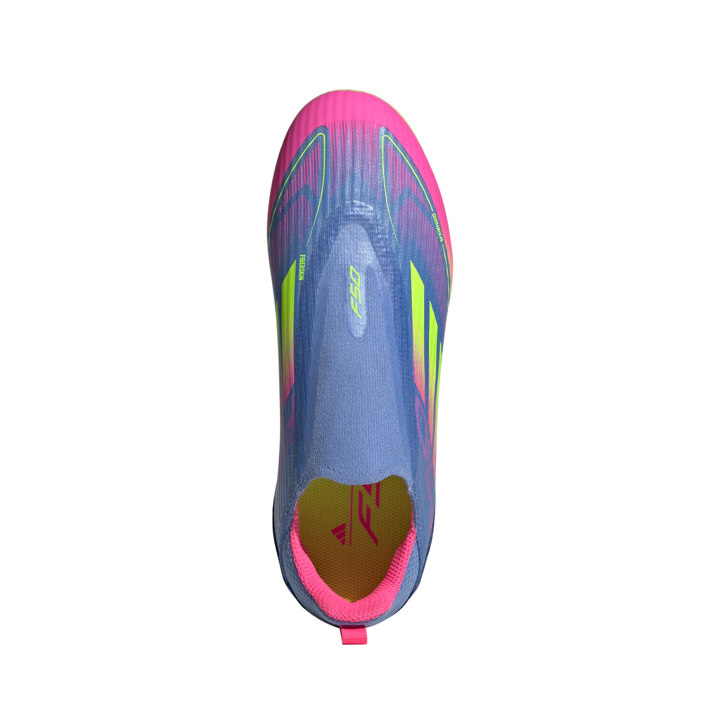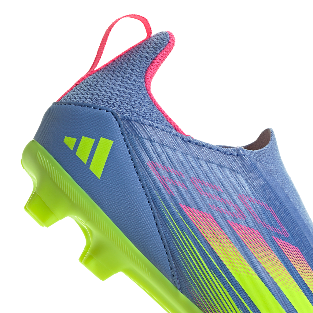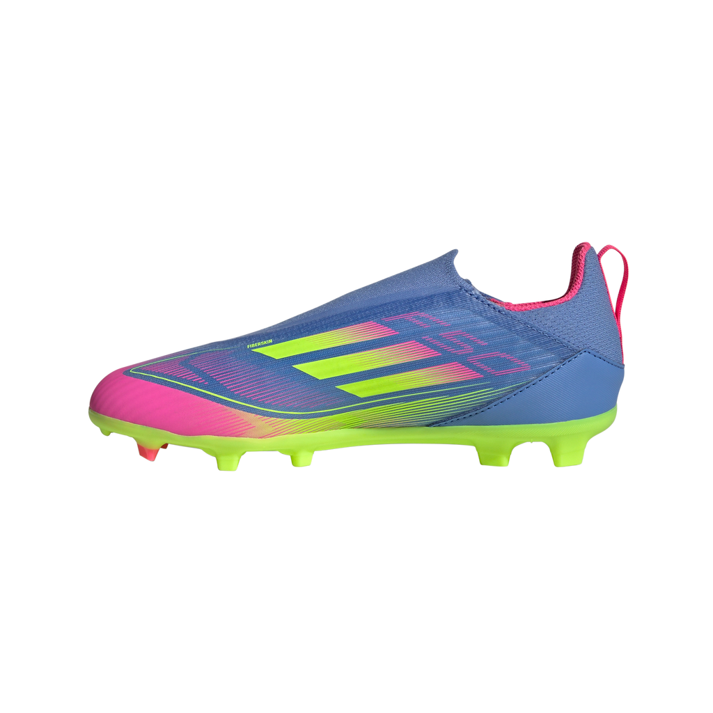 Push your pace to the limit in lightweight adidas F50 footwear engineered for speed. Standing out with an eye-catching Sprintgrid print, the Fiberskin upper on these juniors' League football boots employs an adaptive laceless collar for solid lockdown and clean striking. Turn them over and you'll find a Sprintplate 360 outsole that delivers extra zip on firm ground and artificial grass surfaces.