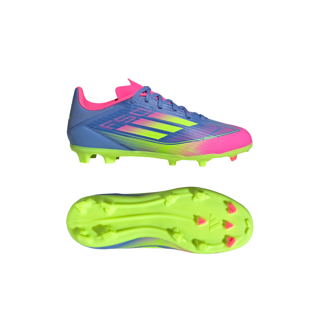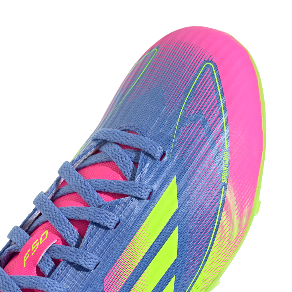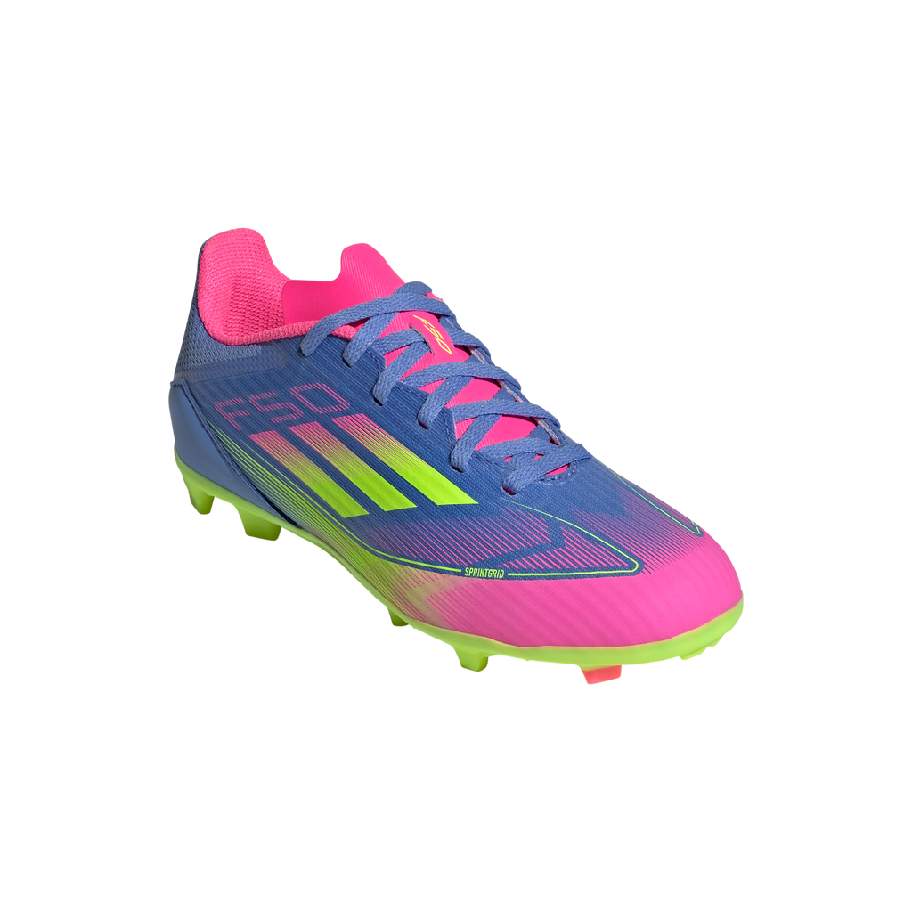 Push your pace to the limit in lightweight adidas F50 footwear engineered for speed. Standing out with an eye-catching Sprintgrid print, the Fiberskin upper on these juniors' League football boots employs a perforated tongue that keeps your feet cool. Turn them over and you'll find a Sprintplate 360 outsole that delivers extra zip on firm ground and artificial grass surfaces.