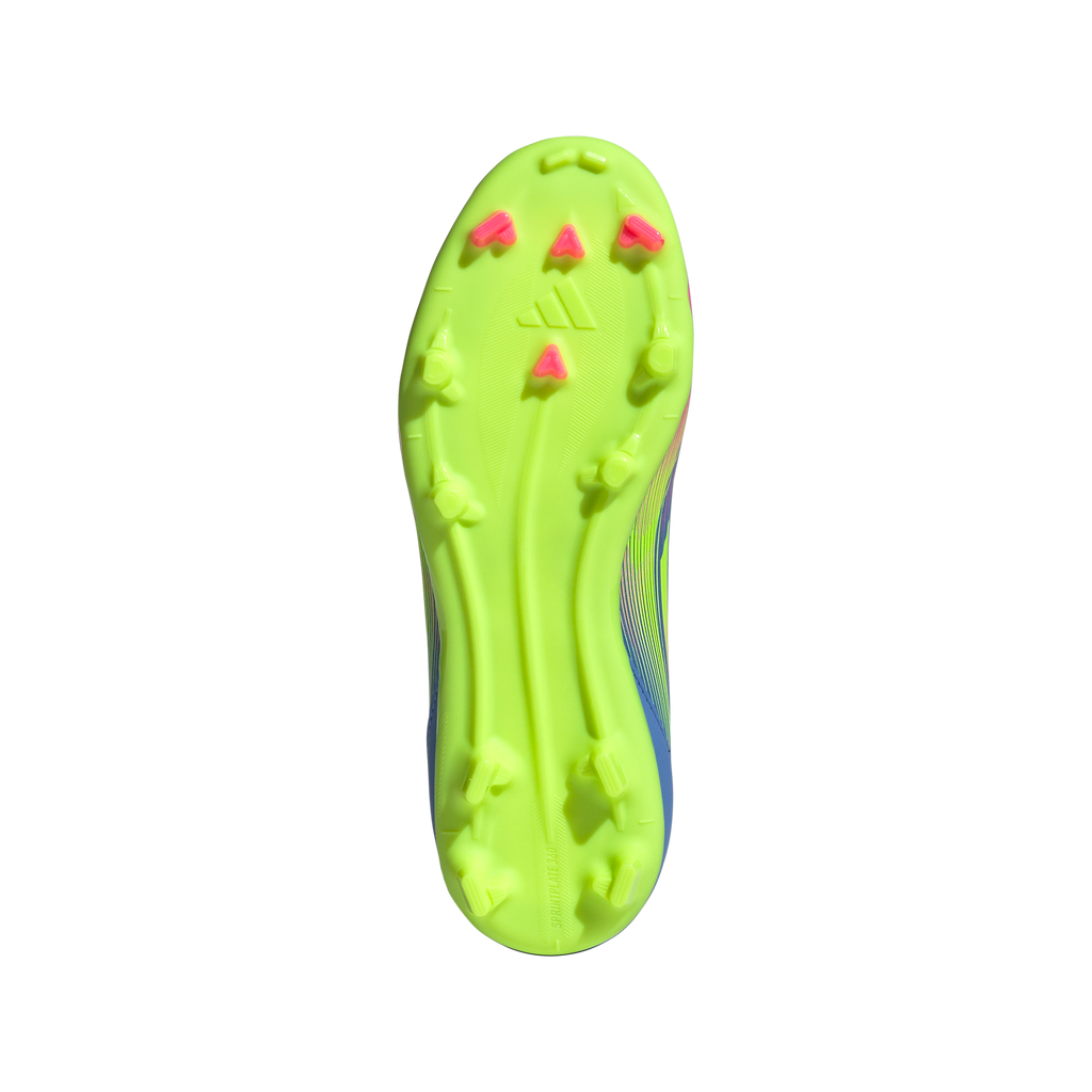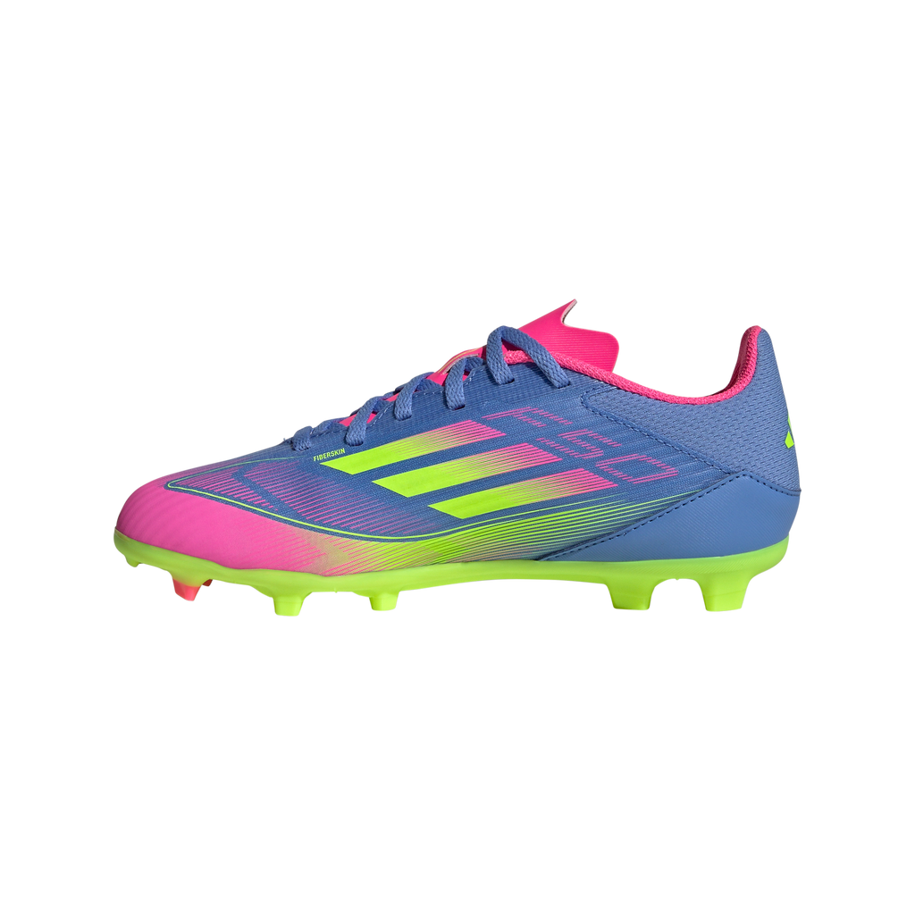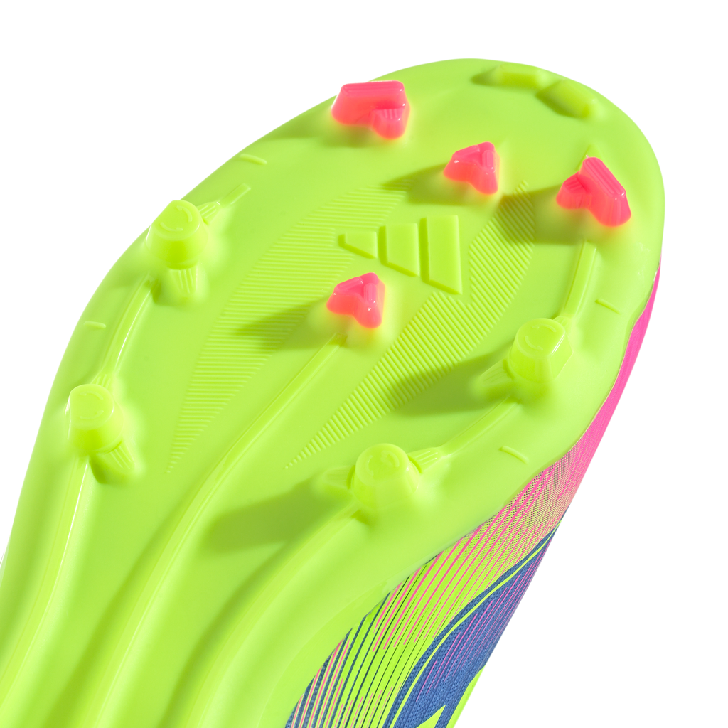 Push your pace to the limit in lightweight adidas F50 footwear engineered for speed. Standing out with an eye-catching Sprintgrid print, the Fiberskin upper on these juniors' League football boots employs a perforated tongue that keeps your feet cool. Turn them over and you'll find a Sprintplate 360 outsole that delivers extra zip on firm ground and artificial grass surfaces.