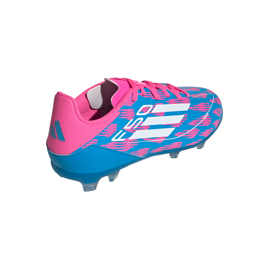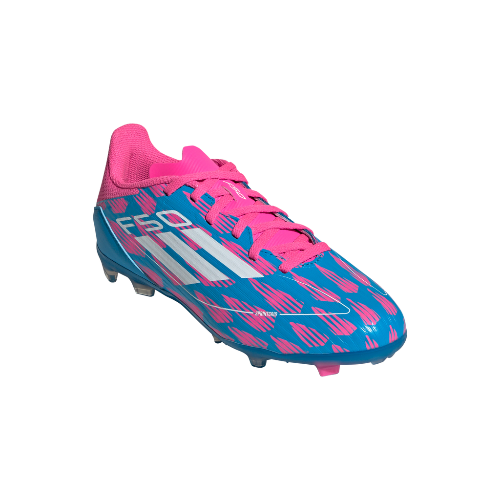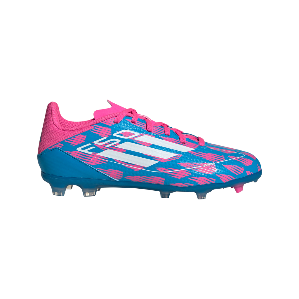 Free the fast with the adidas F50. Created to unlock the full potential of your acceleration, movement and speed. Keeping you cool with a perforated tongue, the Fiberskin upper on these juniors' adidas League soccer cleats shows off a Sprintgrid print on the forefoot. Down below, the Sprintplate 360 outsole is built for propulsion on multiple surfaces