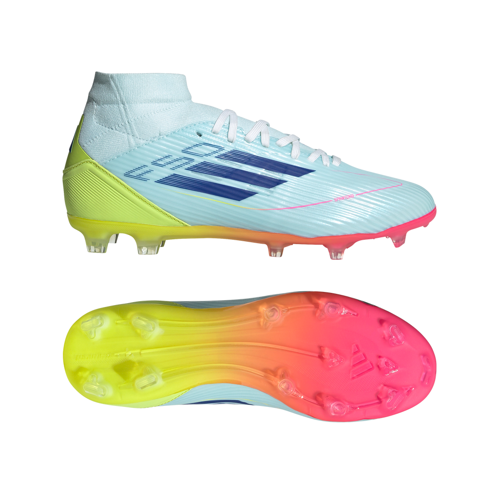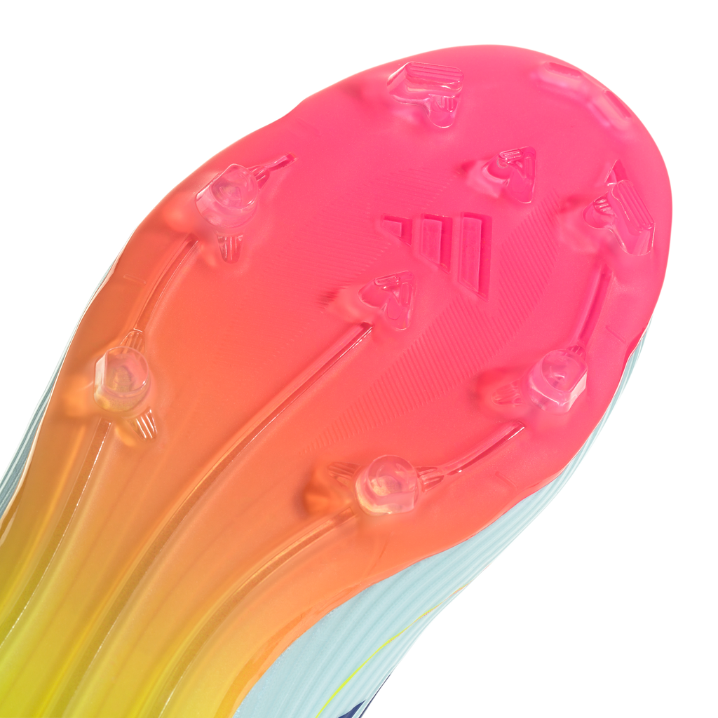 Inspired by a 3-Stripes first. The design on these F50 League boots borrows from the colourful graphics of the Icon football — the first ball adidas designed for the most prestigious tournament in the women's game. Part of a limited collection, these multi-ground boots are designed specifically for female athletes, with a mid-cut collar and thick sockliner adding extra support and comfort.