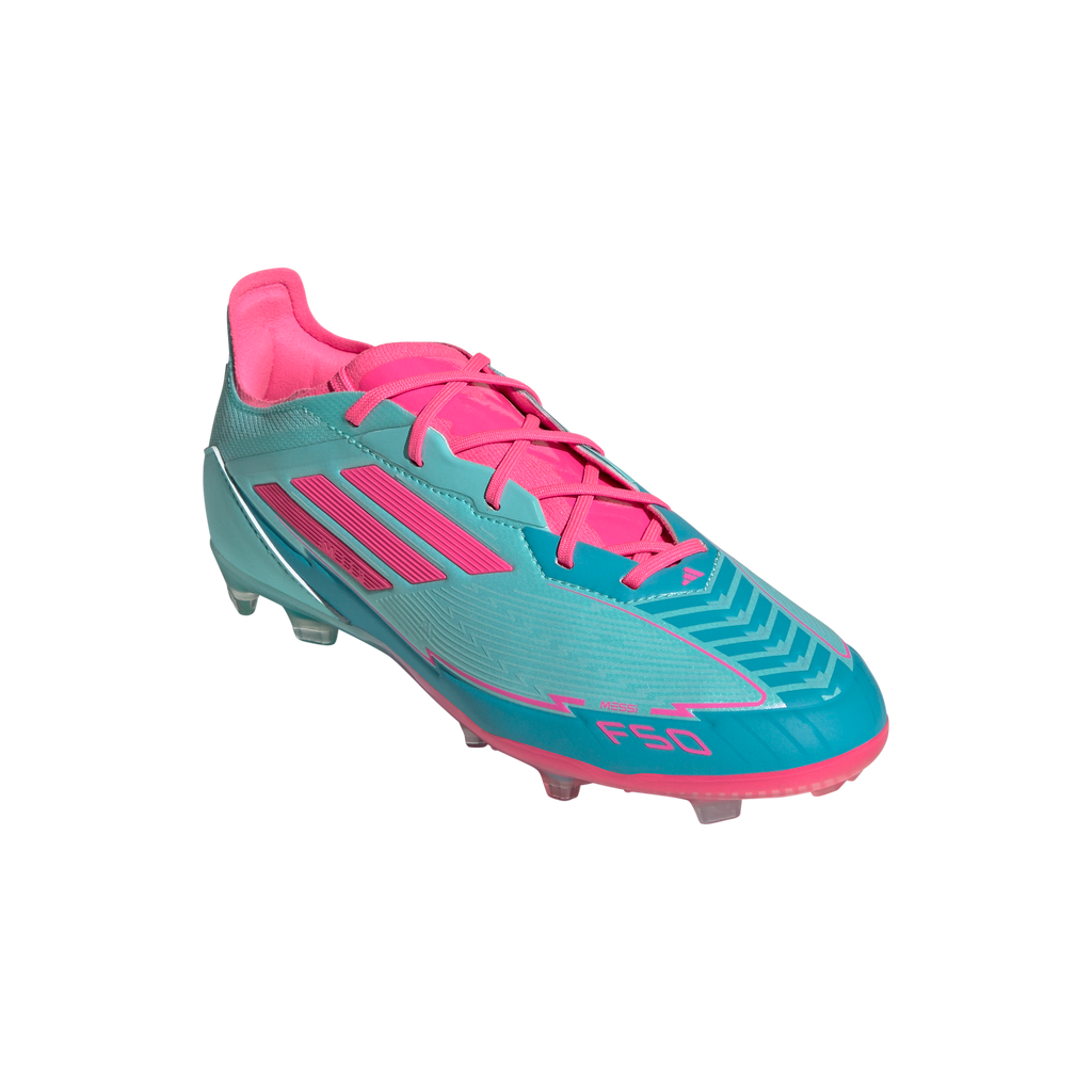 Legendary F50 pace. Mesmerising Messi skills. Built to match the GOAT's on-field preferences, the flexible HybridTouch upper on these juniors' adidas Elite football boots has a knit "burrito" tongue for a wider opening and comfortable fit. The Speedframe 360 outsole keeps you agile on firm ground.