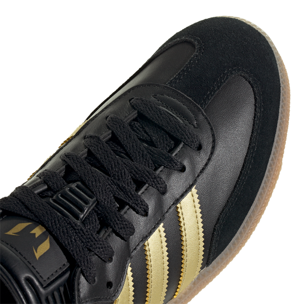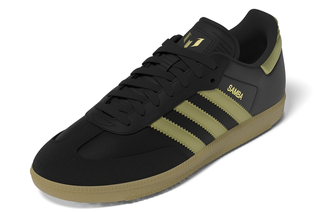 Show some Messi style. These limited-edition adidas Samba football boots flash the GOAT's iconic logo on the tongue. A soft leather upper keeps your feet comfortable during intense action and that suede toe takes scuffs and scrapes in its stride. Underneath, a rubber outsole adds stability on or off the futsal court.