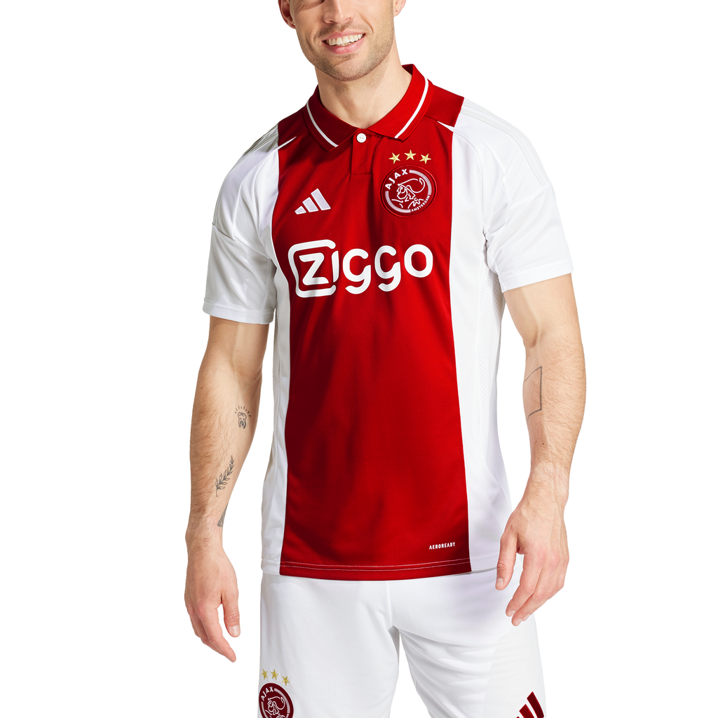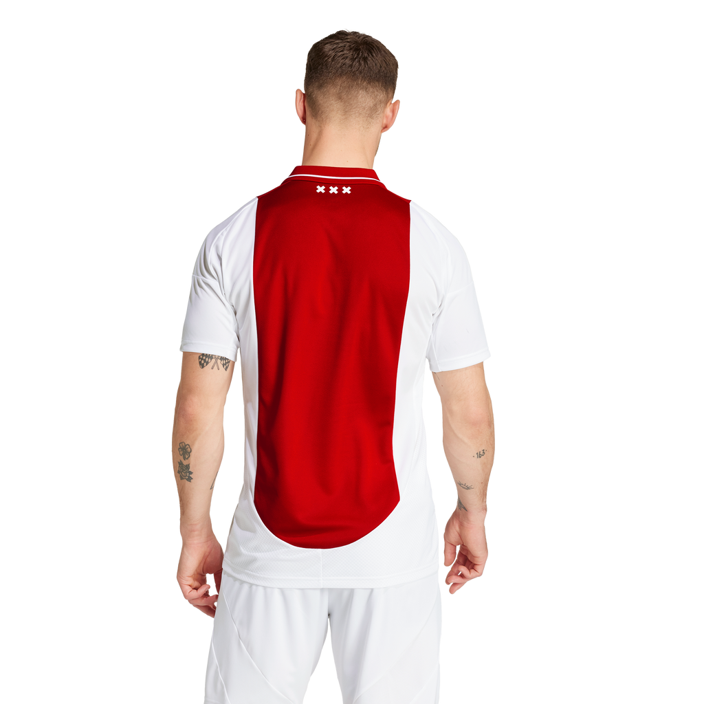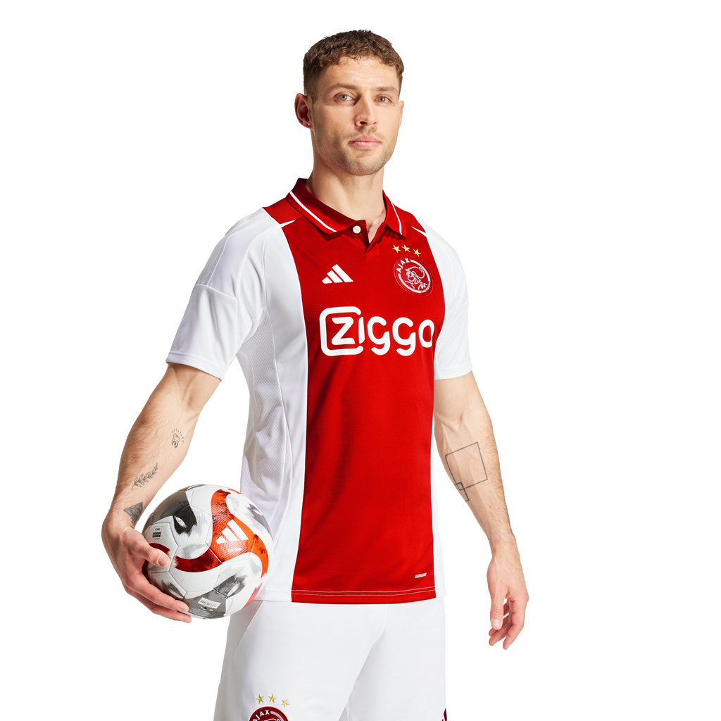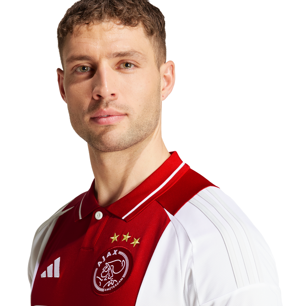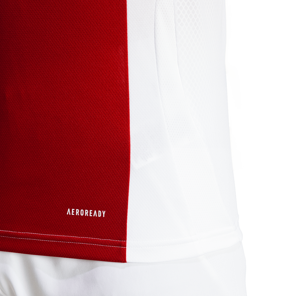 A  tribute to one of the club's most dominant eras. This adidas Ajax Amsterdam home jersey takes inspiration for its clean, classic look from an invincible '90s season. Tonal 3-Stripes on the shoulders shift all the focus onto that red polo collar, iconic central stripe and woven club badge. Moisture-managing AEROREADY ensures players and fans enjoy their football in comfort.