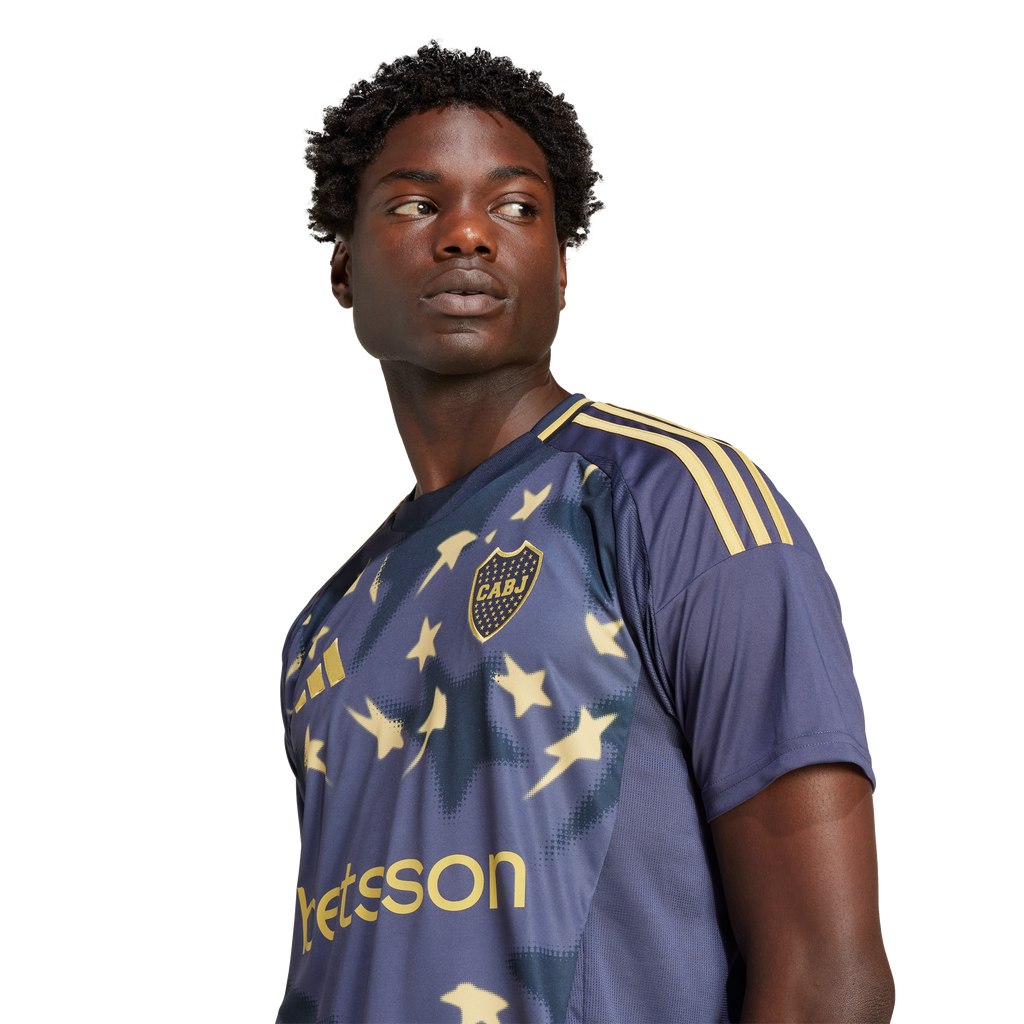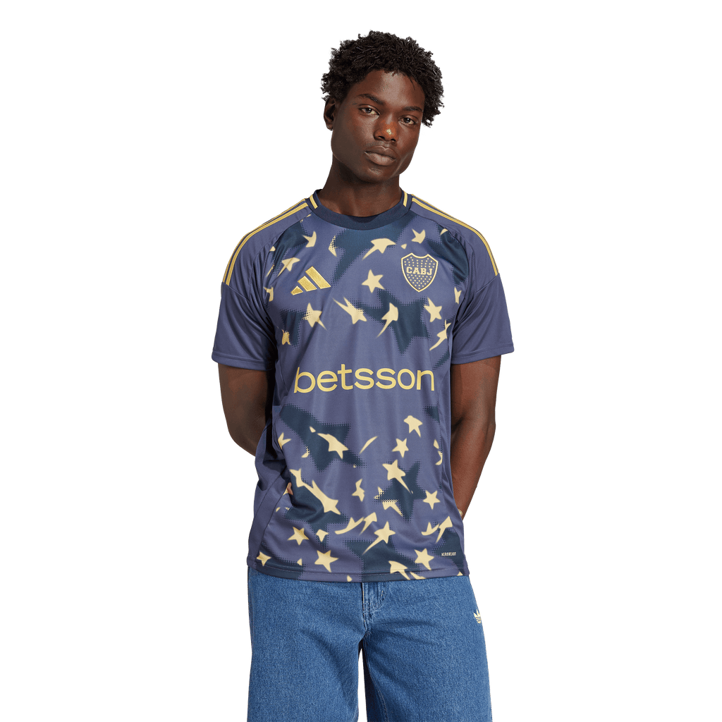 The home fans at La Bombonera salute their football team with a sea of waving hands and flags. The graphic on this Boca Juniors third jersey from adidas takes inspiration from that swaying motion and the stars on the club crest. Created to keep those loyal supporters comfortable, it combines soft fabric and moisture-managing AEROREADY. A team badge and special anniversary sign-off complete the look.