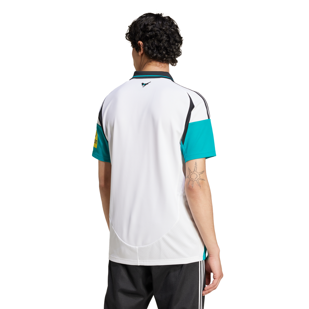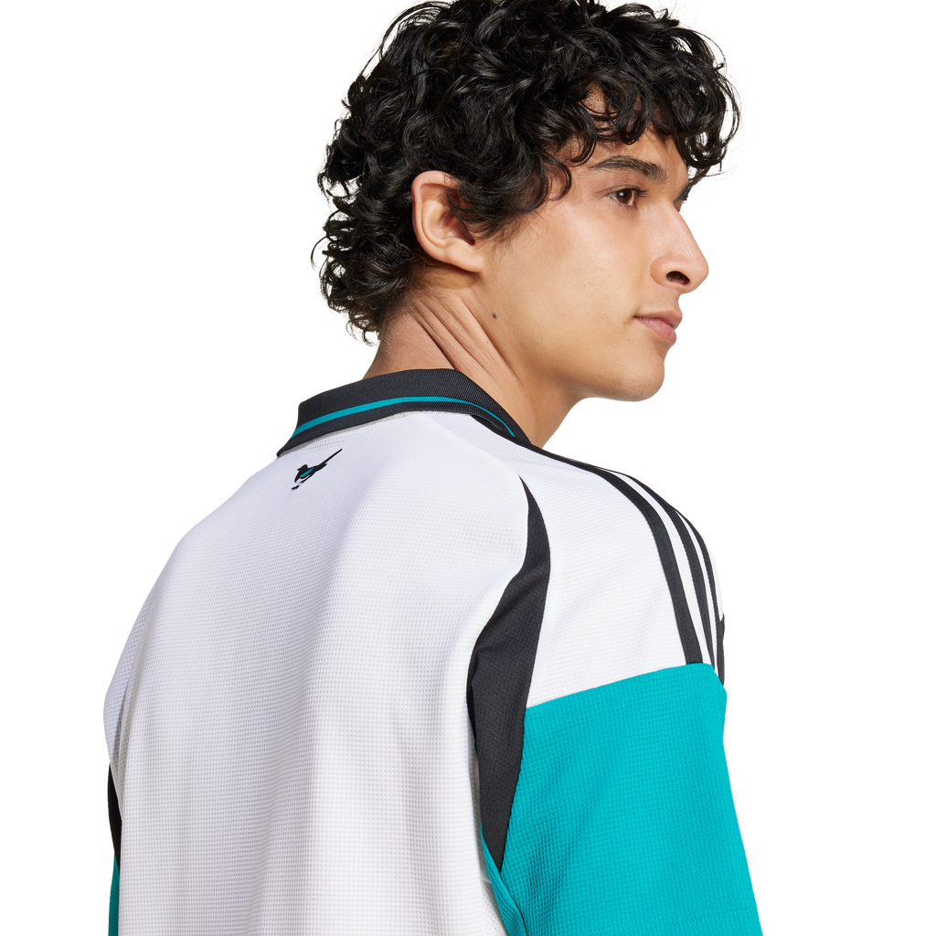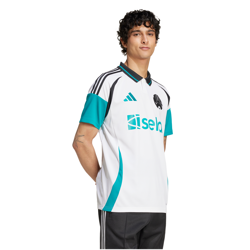 Magpies heritage meets adidas style. Standing out over a clean design inspired by the club's 99/00 away shirt, this Newcastle United FC jersey mixes things up with a modern 3 Bar Logo and mid-'80s club badge starring on the chest. Built to keep football fans comfortable, it fields moisture-managing AEROREADY and smooth doubleknit fabric. A magpie sign-off on the back neck completes the statement-making look.
