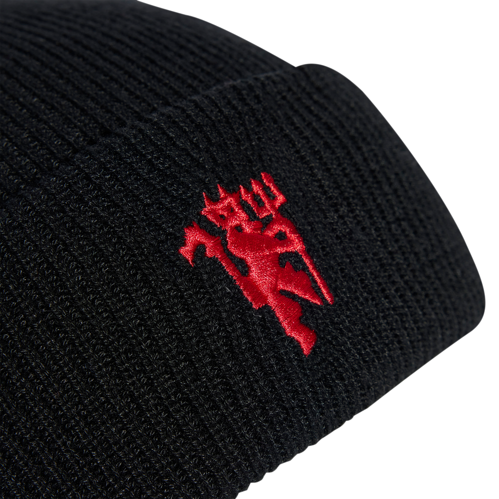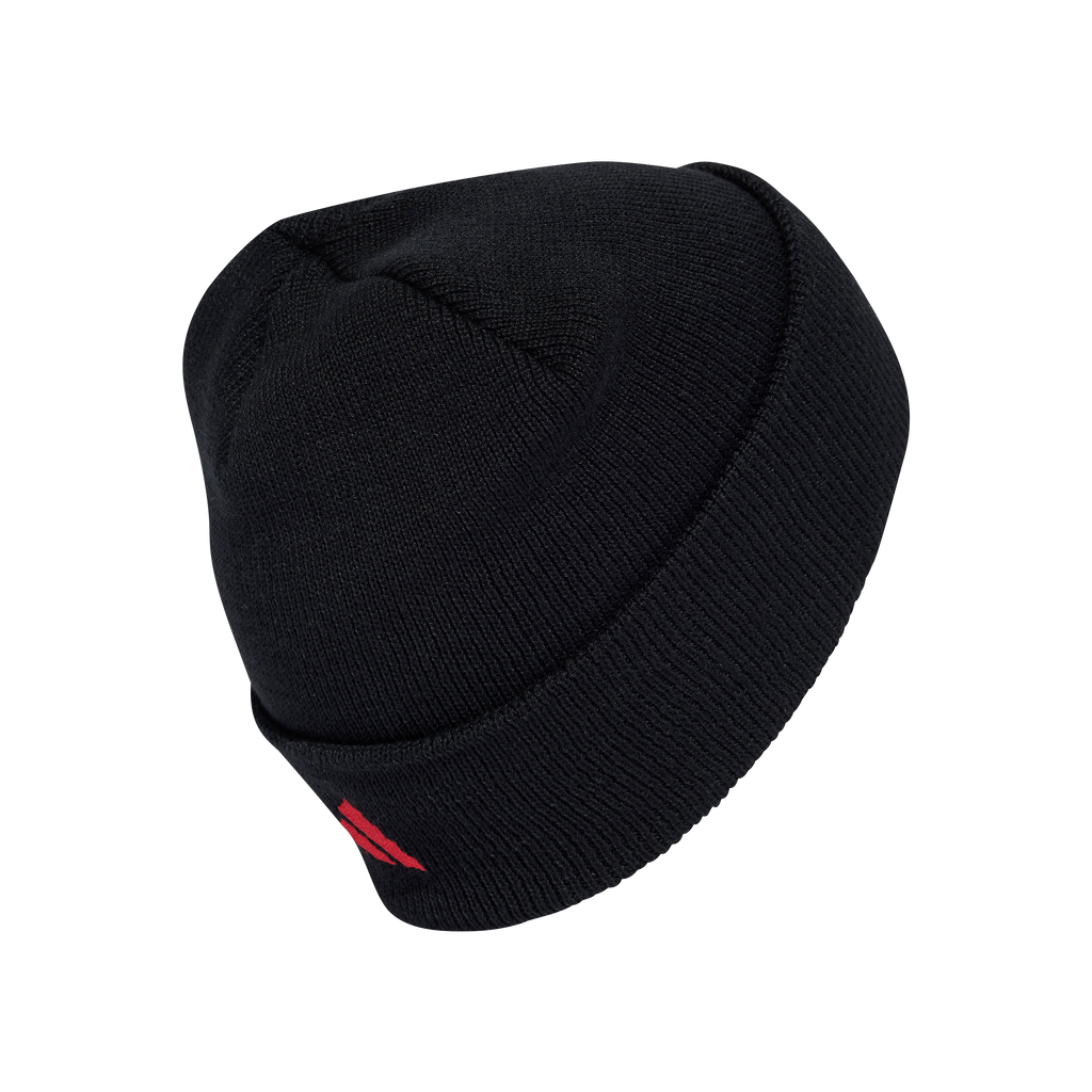 Display your passion for Manchester United on the coldest days. This adidas beanie keeps you warm while proudly displaying a woven red devil badge. Its soft knit fabric feels cosy against your skin and that fold-up cuff adds extra warmth for your ears, so you can devote all your attention to the football.