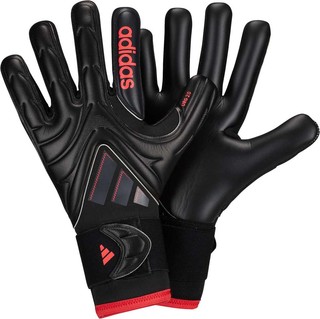 Show your class between the sticks in Copa Pro goalkeeper gloves from adidas. Balancing classic style with innovative performance, they combine a ventilating mesh and latex backhand with a super-grippy URG 2.0 palm. An elastic wrist strap keeps you locked in through every claim and throw, and a negative cut in the fingers makes for a snug fit and natural feel.