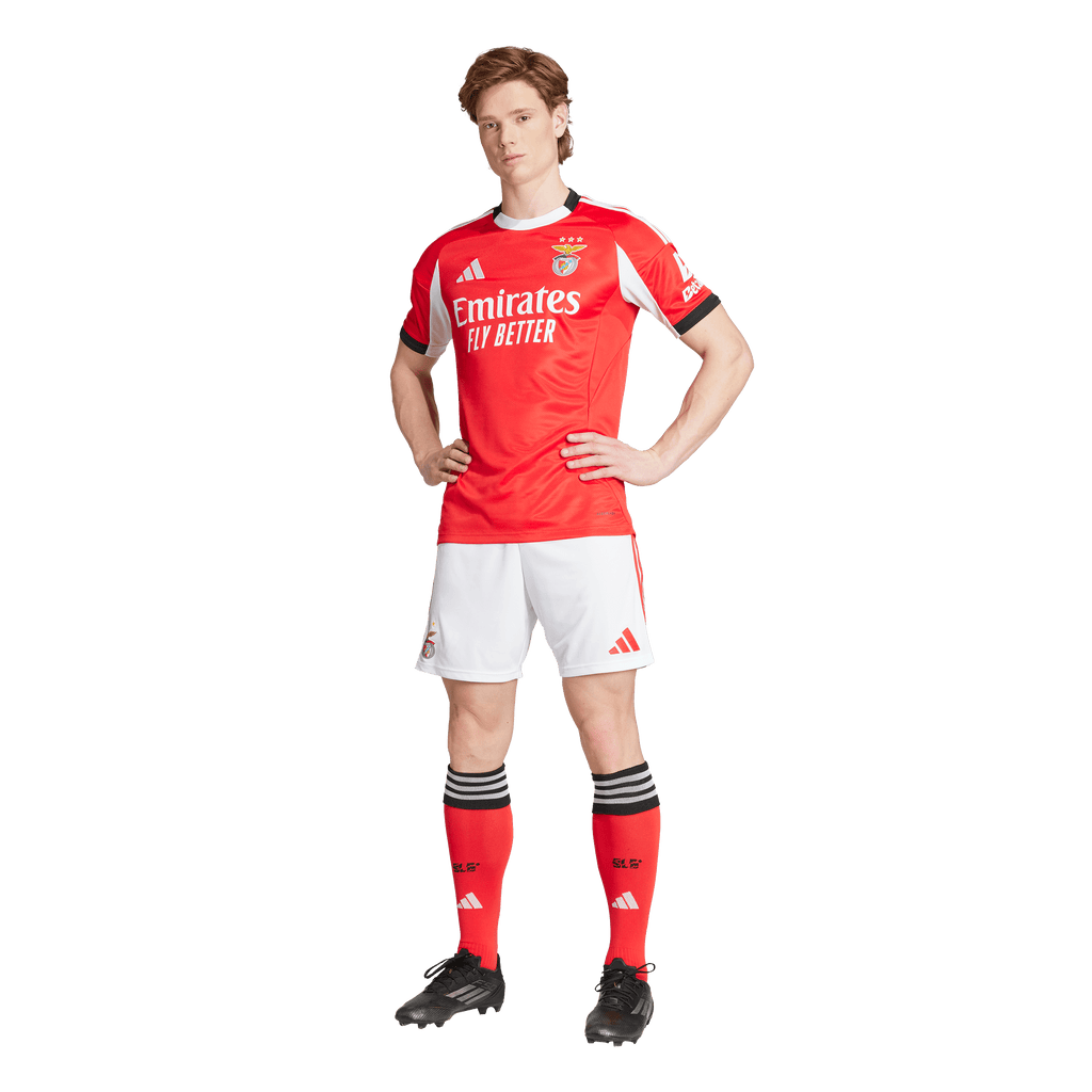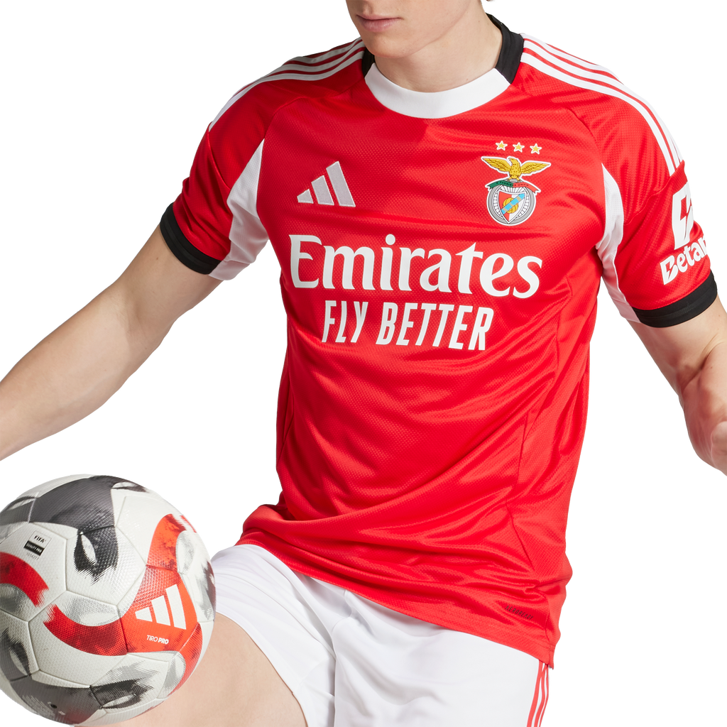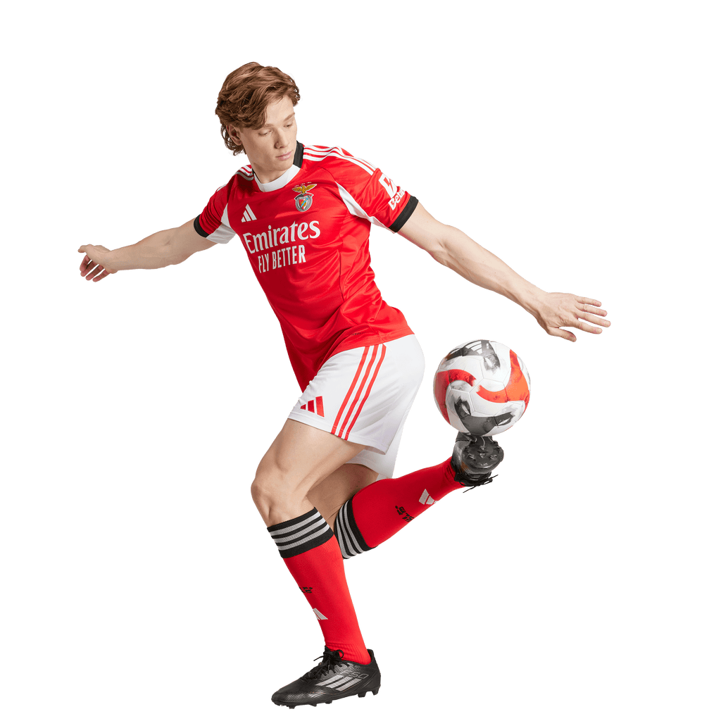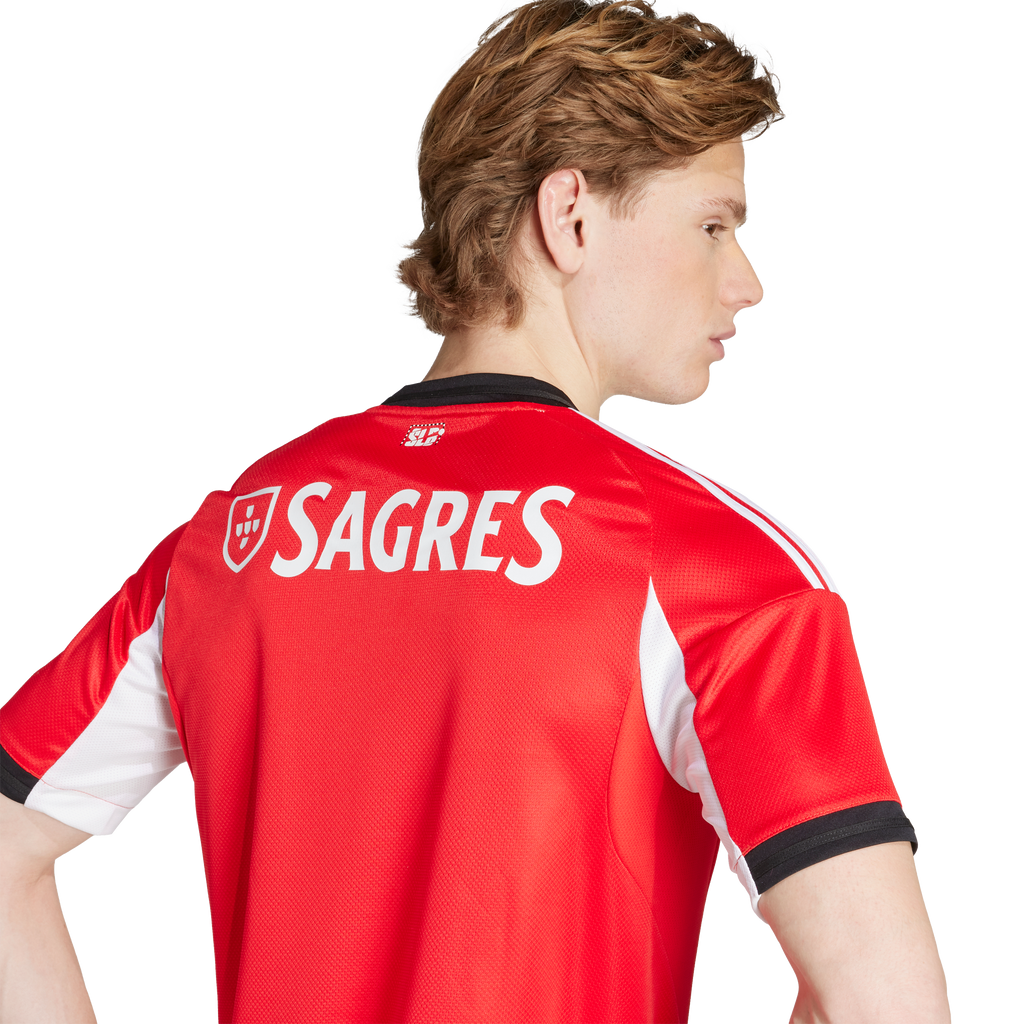 Share your street-honed skills in this adidas Benfica home jersey. Displaying a street football-inspired "SLB" sign-off on the back neck and an silicone club crest on the chest, this shirt will help you enjoy your beautiful game, whether you're playing or watching from the sidelines. Moisture-managing AEROREADY and soft doubleknit fabric combine to keep you dry and comfortable.