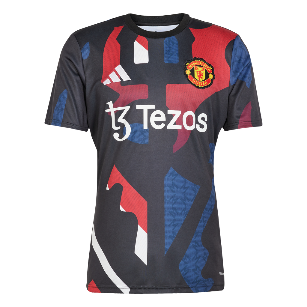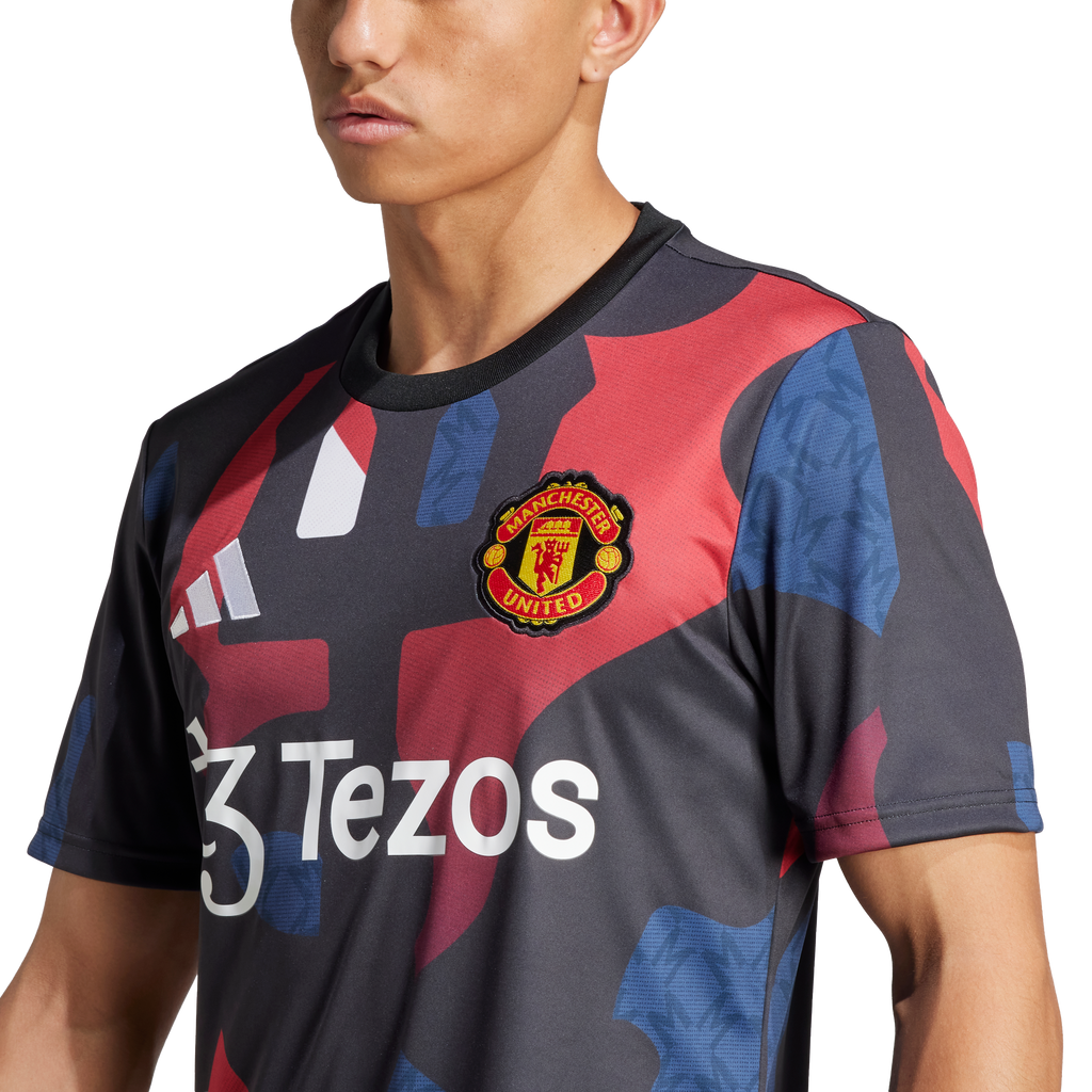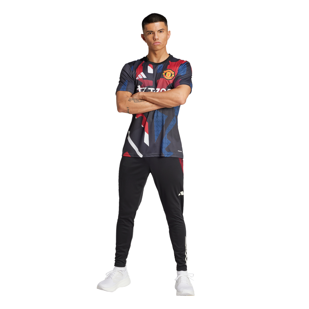 Pull on the top Manchester United players wear as they stretch and sprint before games. This adidas jersey features vibrant graphics borrowed from the club's home, away and third shirts in the 24/25 football season. Behind that mashed-up design, moisture-managing AEROREADY ensures you feel as good as you look.