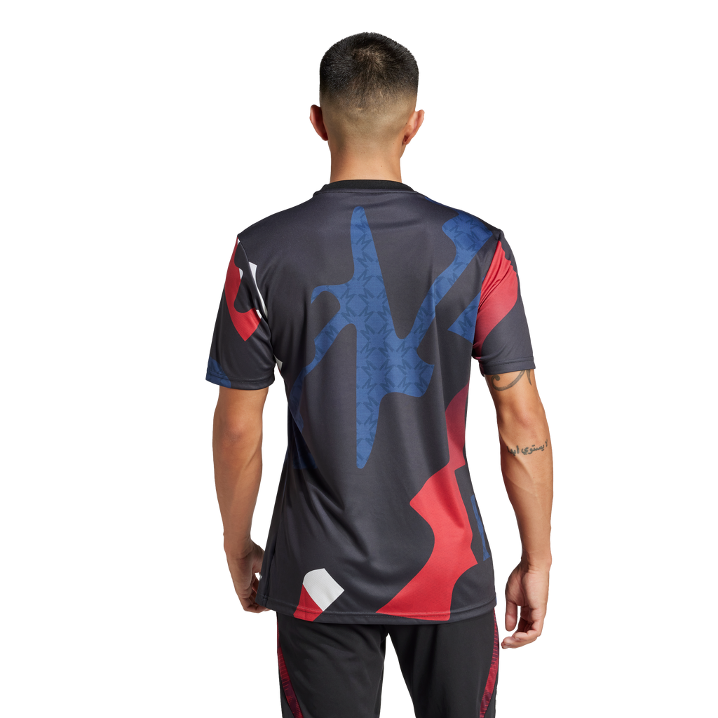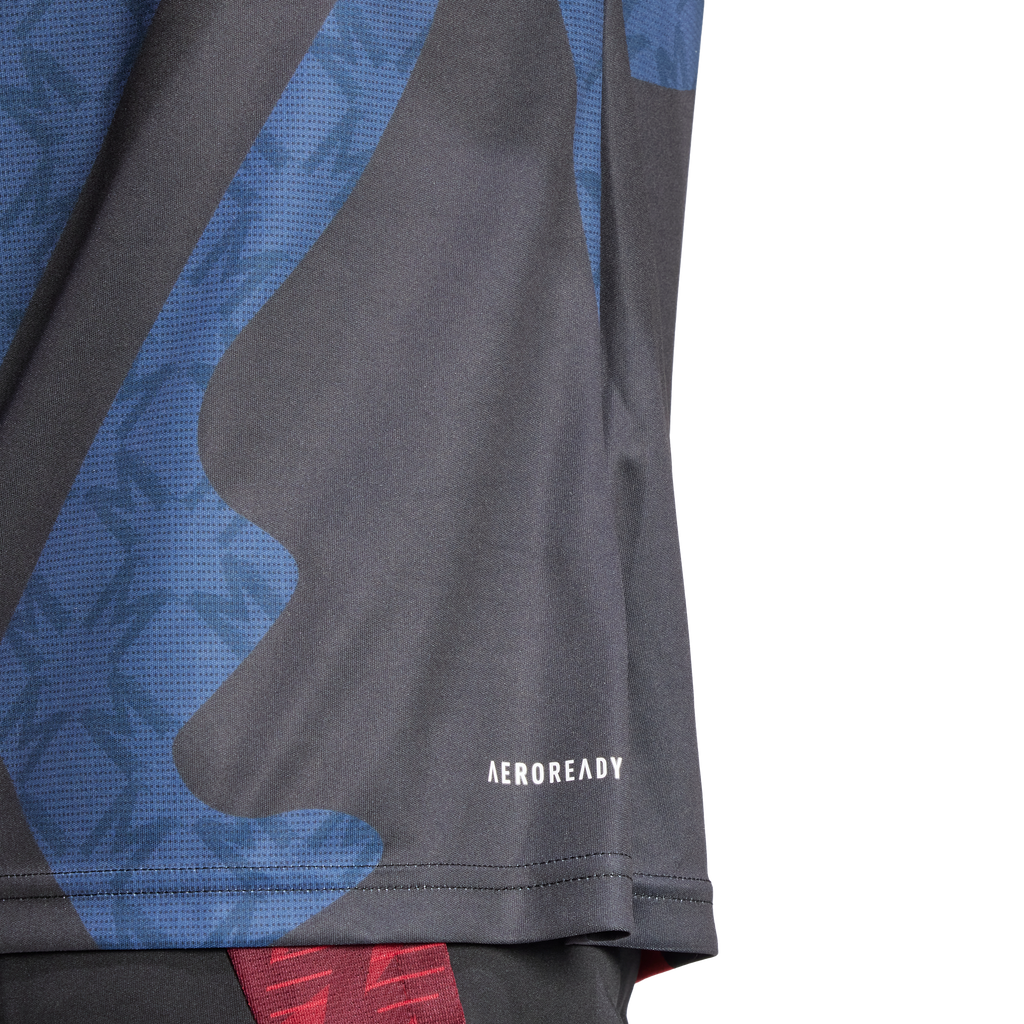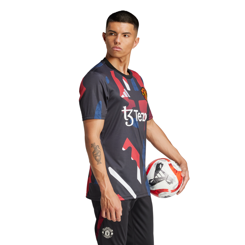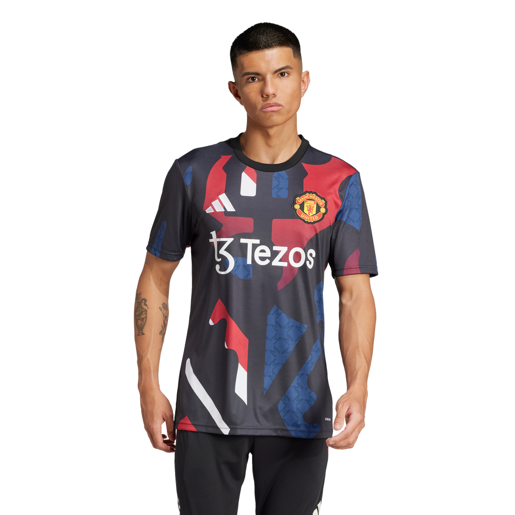 Pull on the top Manchester United players wear as they stretch and sprint before games. This adidas jersey features vibrant graphics borrowed from the club's home, away and third shirts in the 24/25 football season. Behind that mashed-up design, moisture-managing AEROREADY ensures you feel as good as you look.