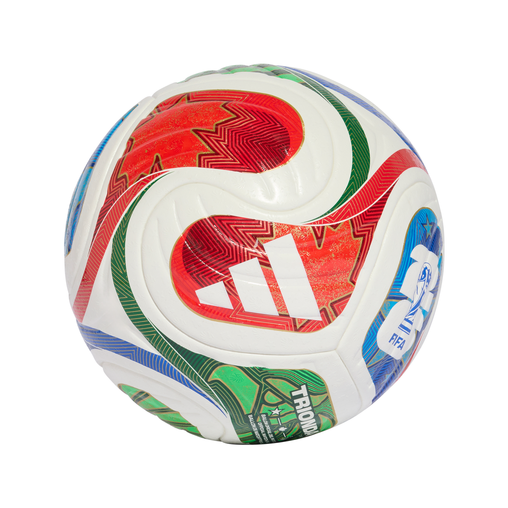 A spectacular sight first seen at sporting venues across the Americas, the iconic "la ola" wave inspires the flowing, four-panel design of this adidas Trionda Pro ball. The official football of the FIFA World Cup 26™, it has a seamless surface with an eye-catching texture and strategically placed debossing for optimal precision and in-flight stability. Vibrant colours and bold national symbols represent the tournament's three host countries.