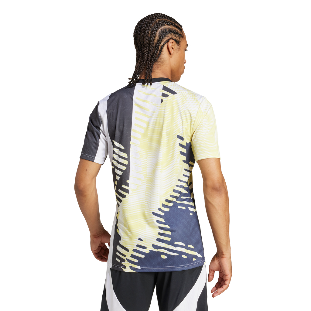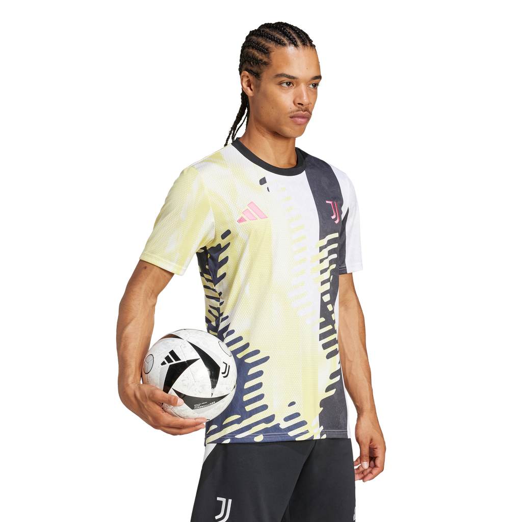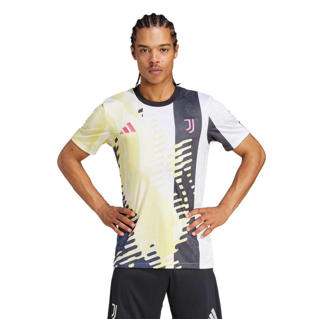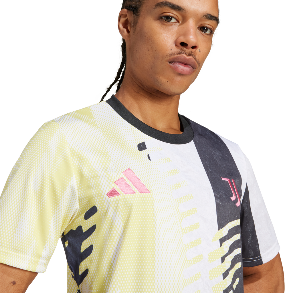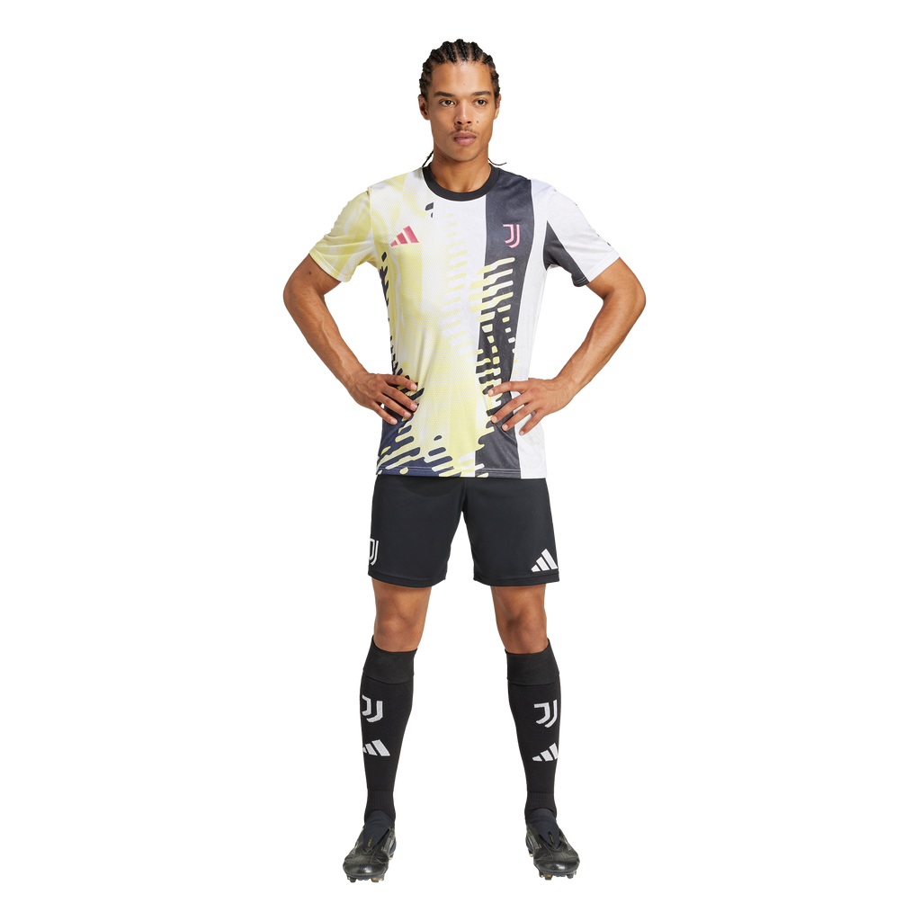 Polish your football skills in Juventus style. This adidas pre-match jersey mashes up design elements from all three Juventus 24/25 match kits for a bold look that's bound to turn heads. The shirt players wear before kick-off, it will keep you comfortable with moisture-managing AEROREADY and soft fabric.