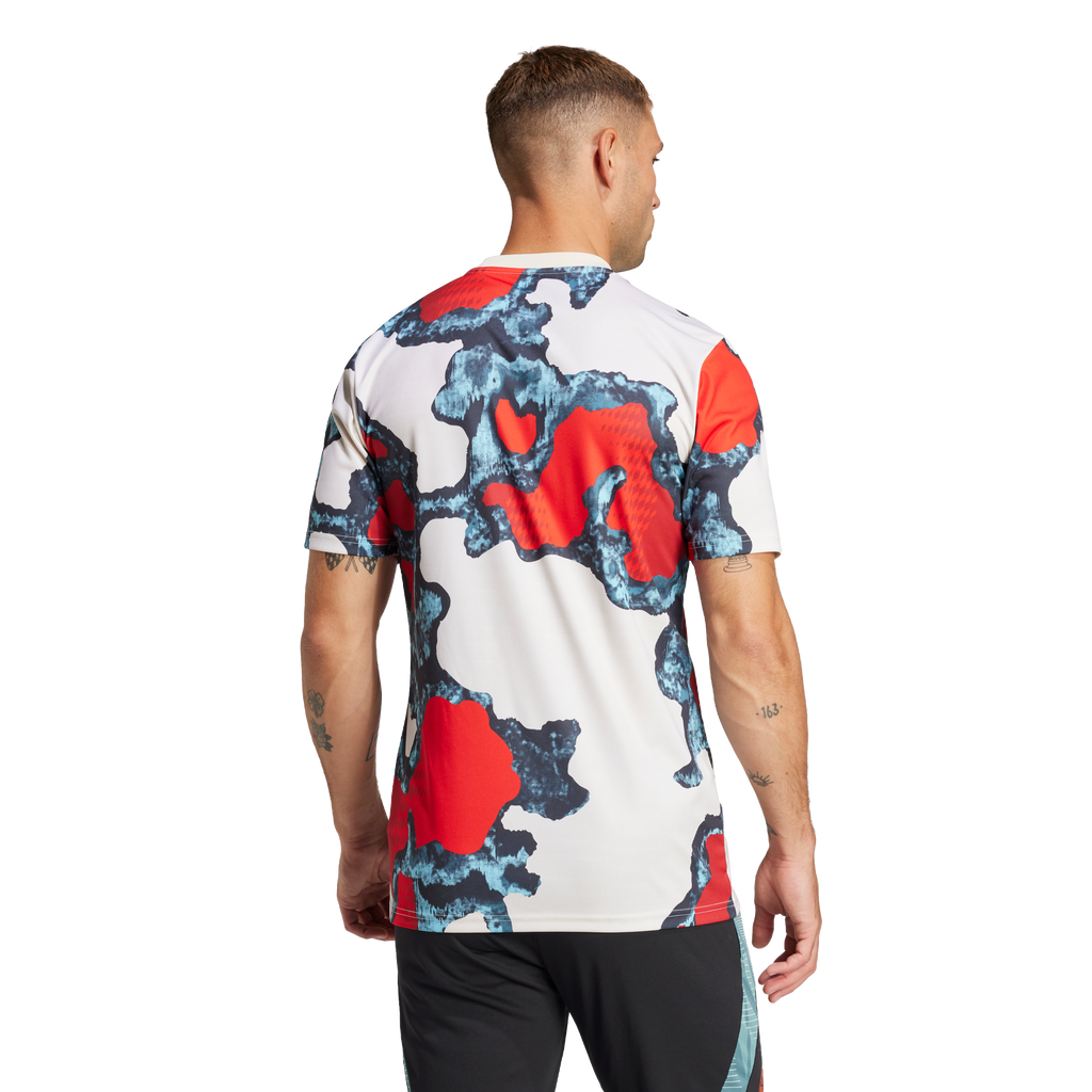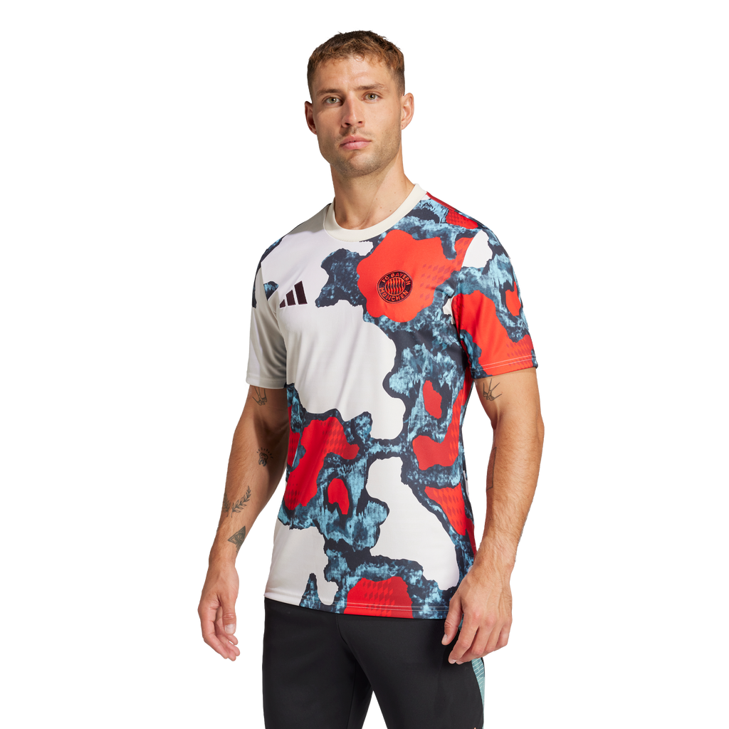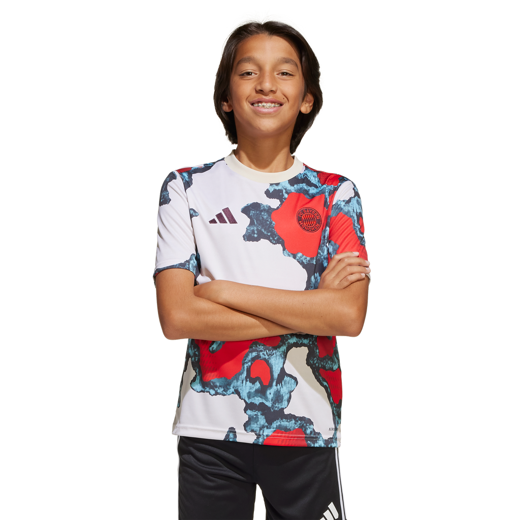Share your FC Bayern fandom in this eye-catching adidas warm-up shirt. Showing off a design inspired by all three of the club's 24/25 match jerseys, it makes a real statement as players prepare on the field. With soft fabric and moisture-managing AEROREADY, it's built to keep football players and fans comfortable in all their colors.