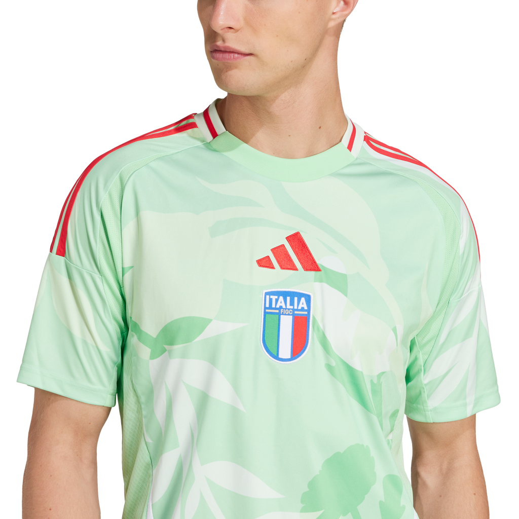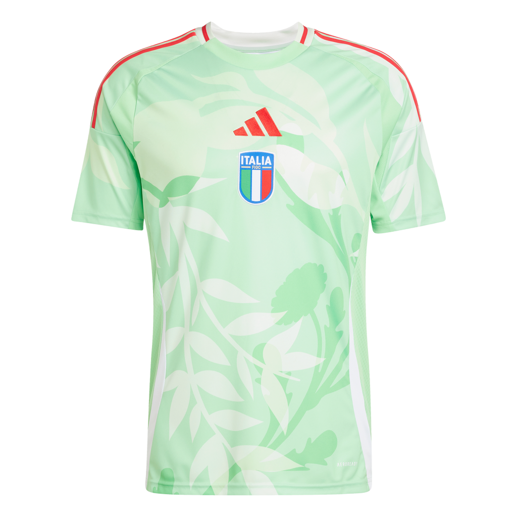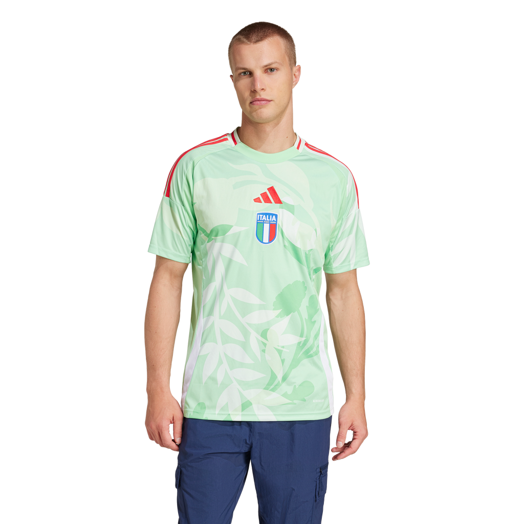 With its bold colours and floral graphics, this eye-catching adidas away jersey was inspired by 15th-century Italian Renaissance art. Crafted to let Italy women's team fans express themselves on the sidelines, it combines moisture-managing AEROREADY and soft fabric. A special "Italia" sign-off and an embroidered team badge give your football pride new perspective.