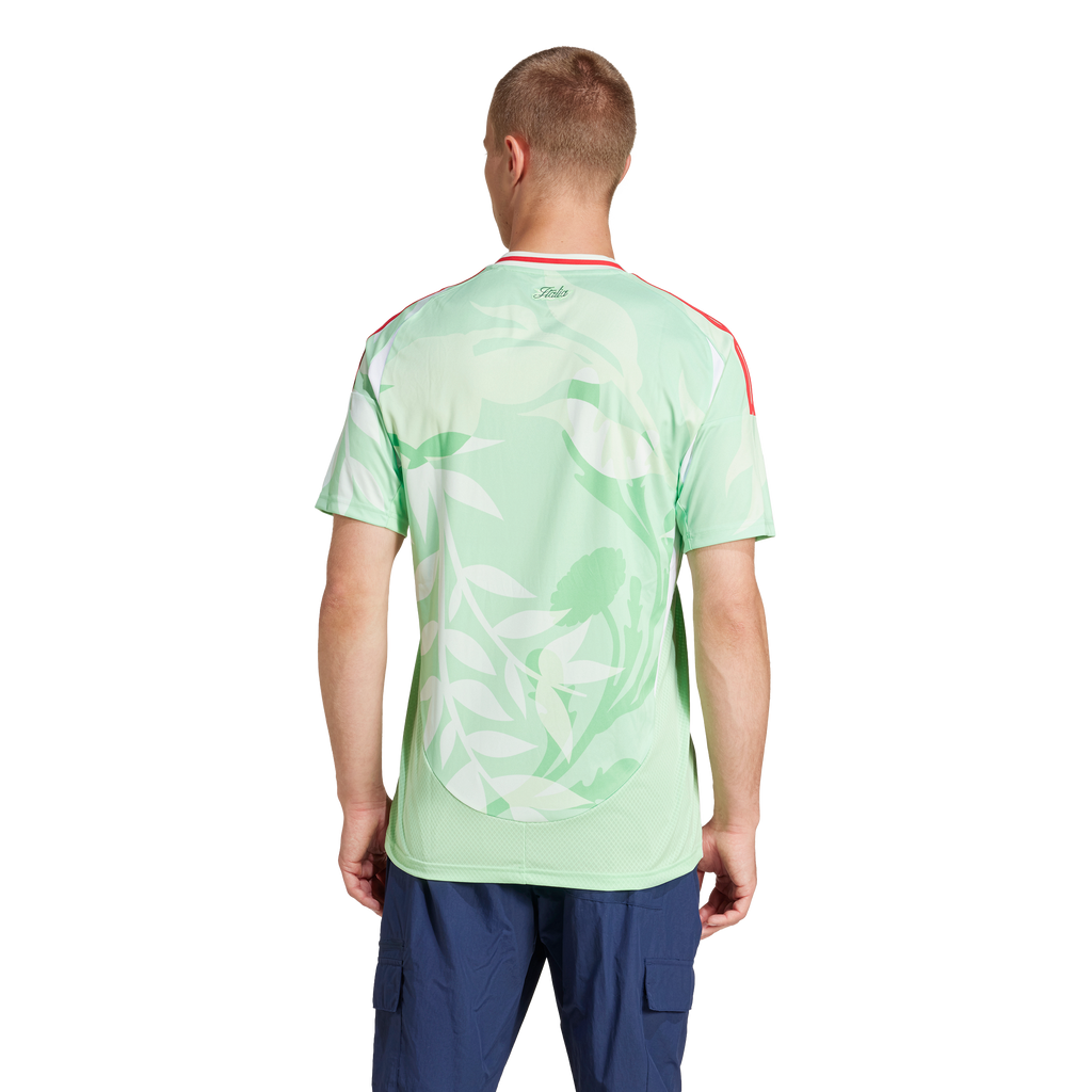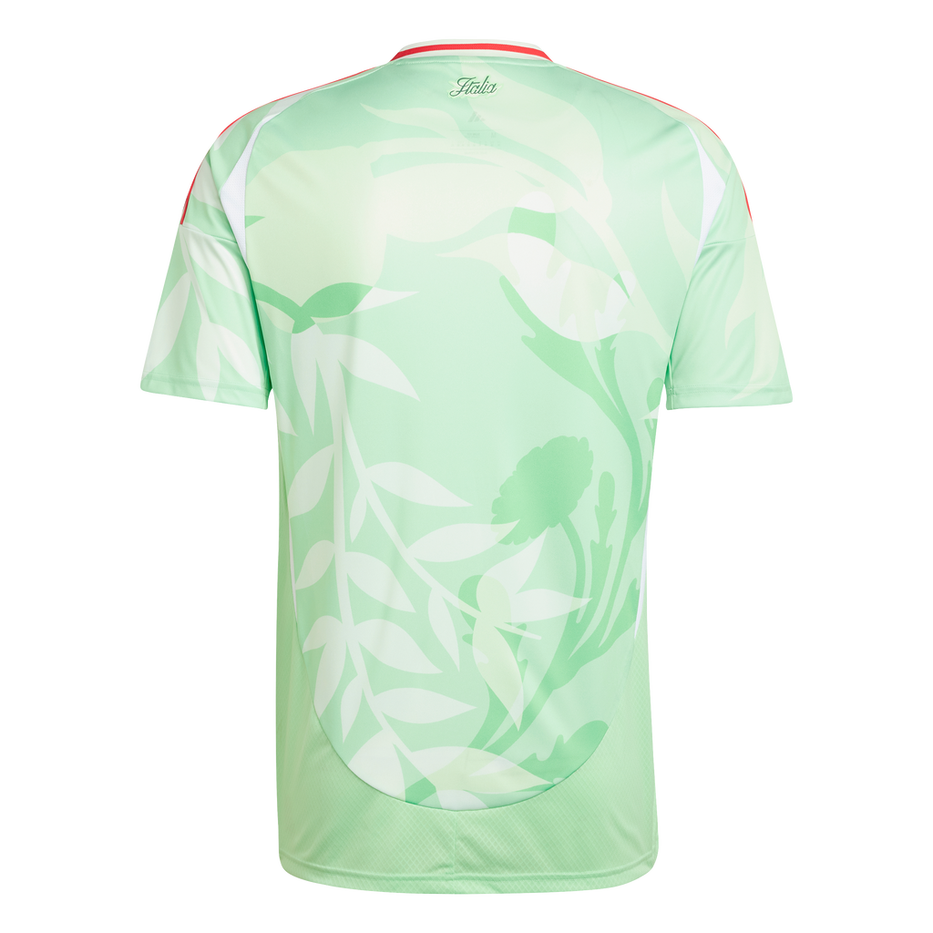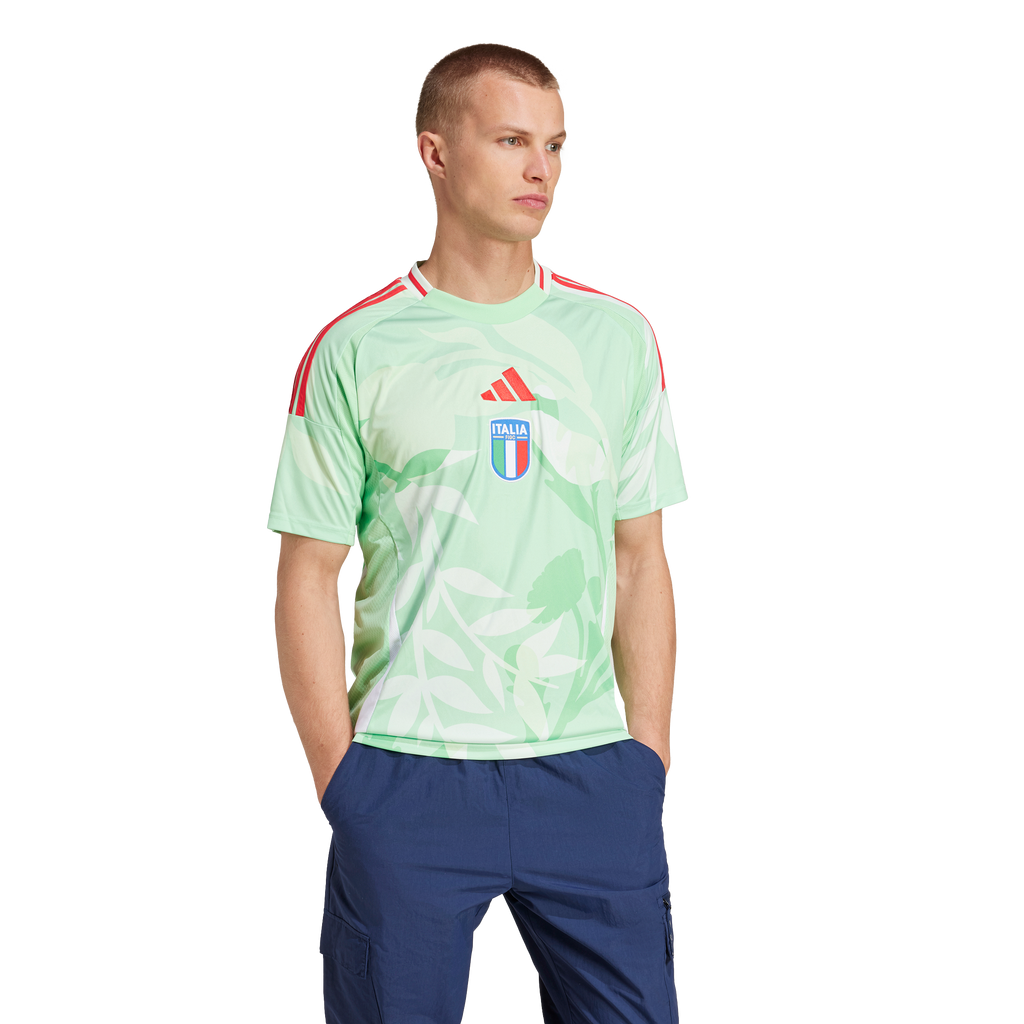 With its bold colours and floral graphics, this eye-catching adidas away jersey was inspired by 15th-century Italian Renaissance art. Crafted to let Italy women's team fans express themselves on the sidelines, it combines moisture-managing AEROREADY and soft fabric. A special "Italia" sign-off and an embroidered team badge give your football pride new perspective.