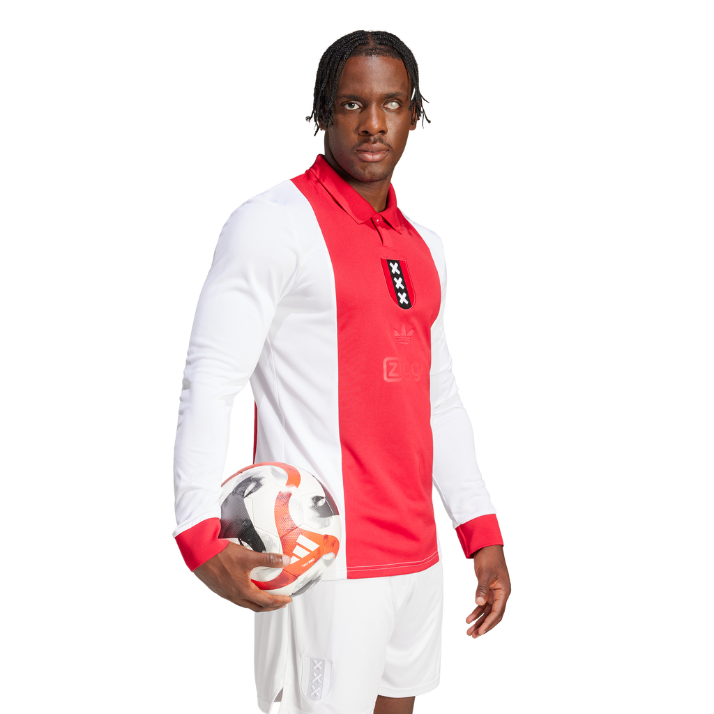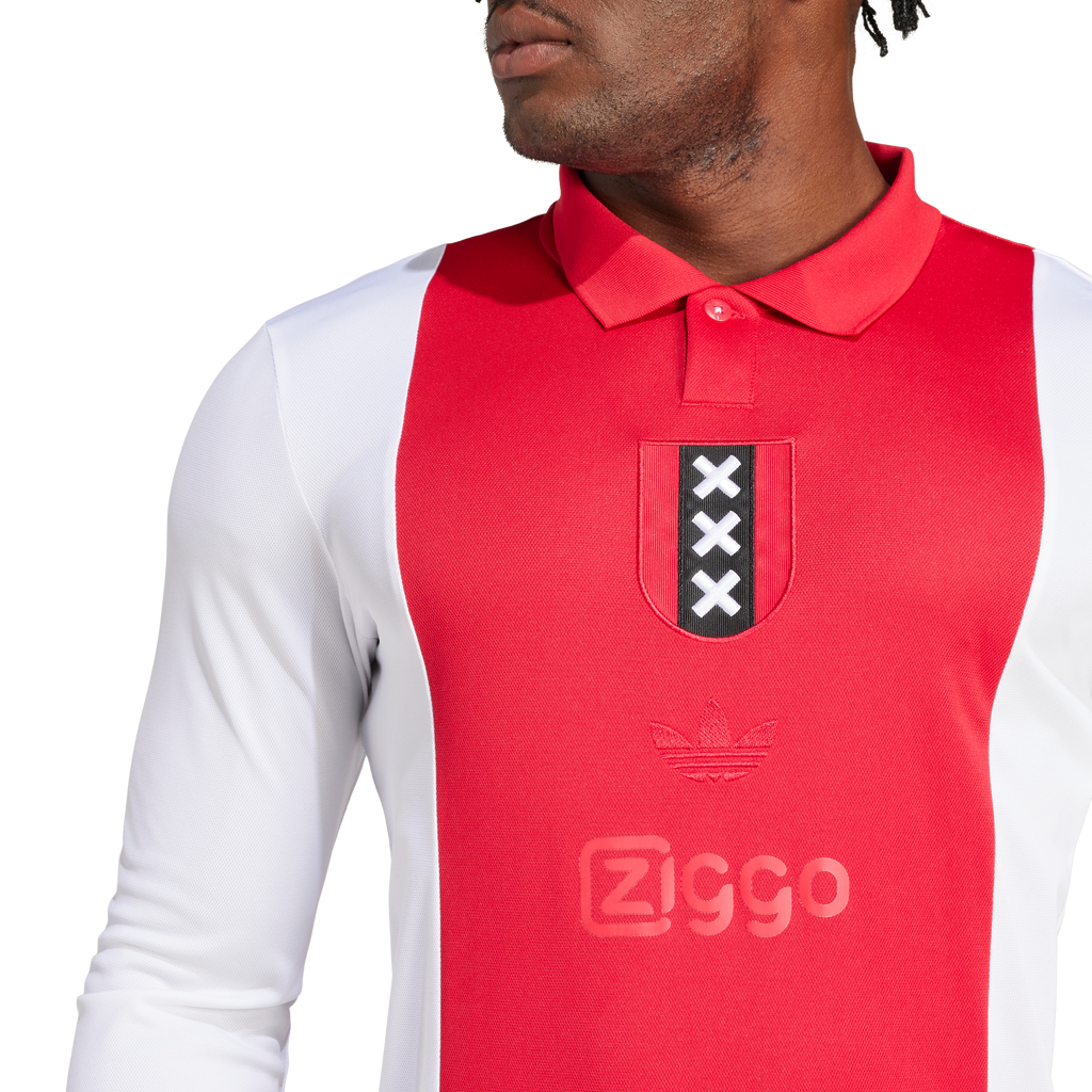 Celebrate 125 years of Ajax Amsterdam excellence in this heritage-inspired adidas football jersey. Its clean design nods to the club's very first "rode baan" kit, worn in 1911. Cut for a slim fit and featuring moisture-managing AEROREADY, it's built to keep up with the modern game. On the chest, that special commemorative badge incorporates Amsterdam's famous XXX symbol.