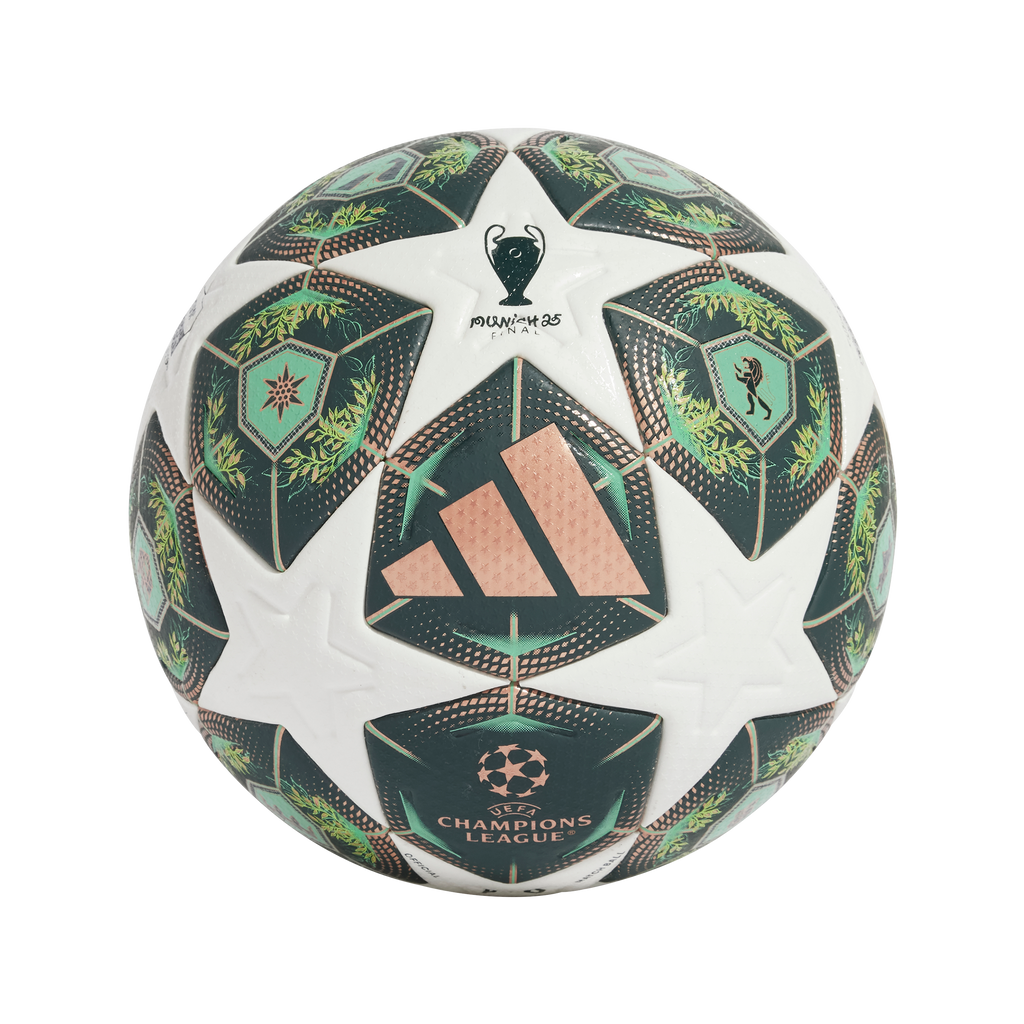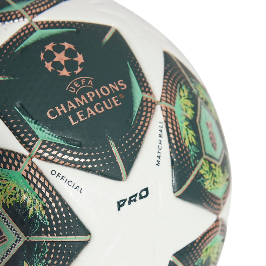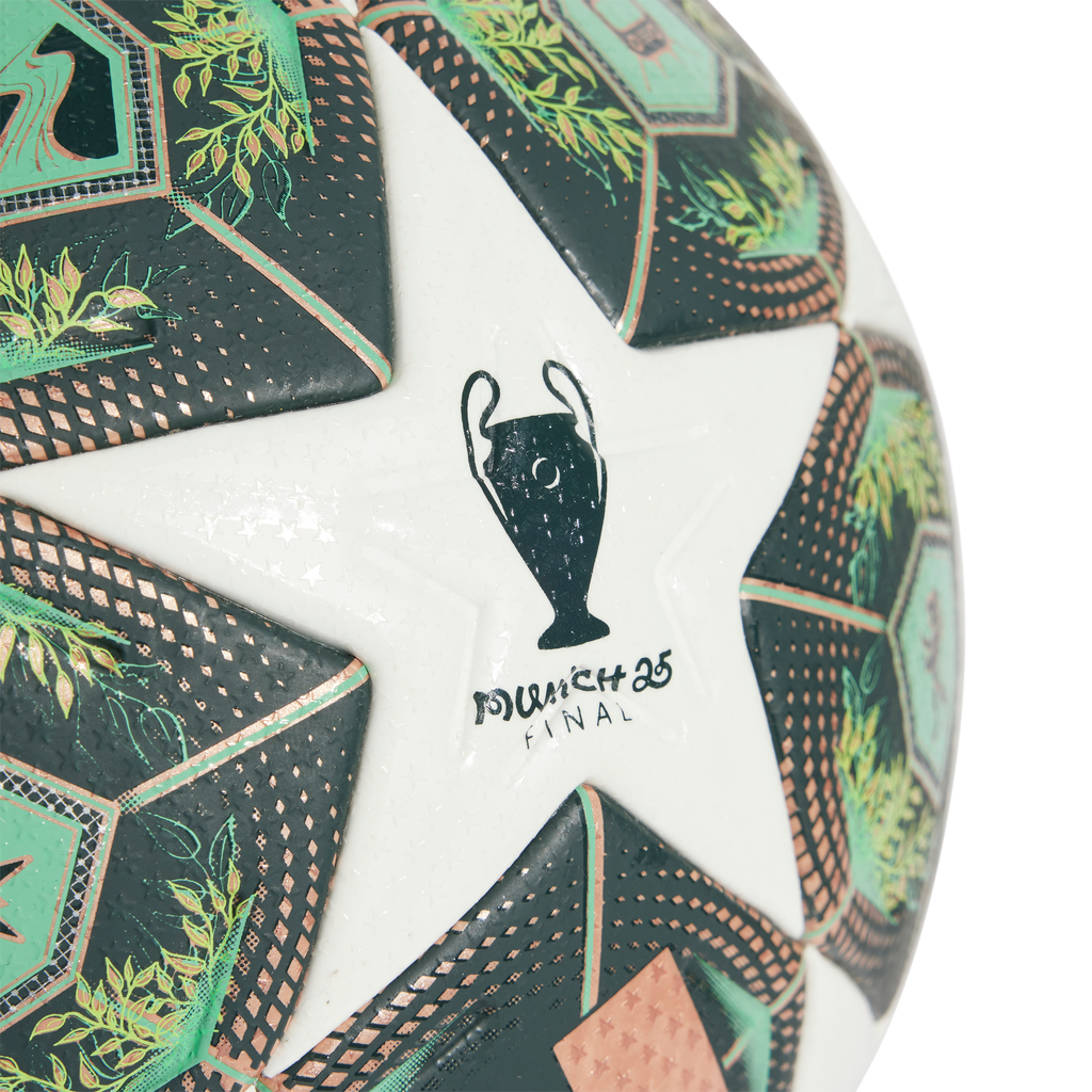 Clad in the greens of Munich's patinaed copper domes and picture-postcard backdrop, this adidas Pro ball is an elegant tribute to the 24/25 UEFA Champions League final host. Used during the knockout stages of Europe's most prestigious club competition, it's built with a high-grade butyl bladder and seamless cover for high-performance football.