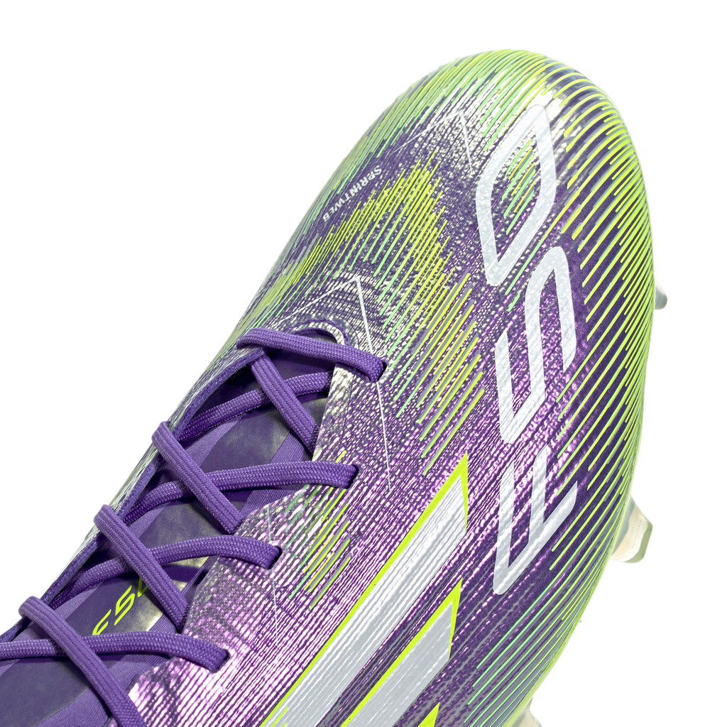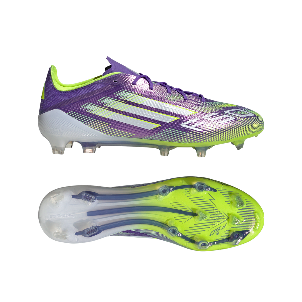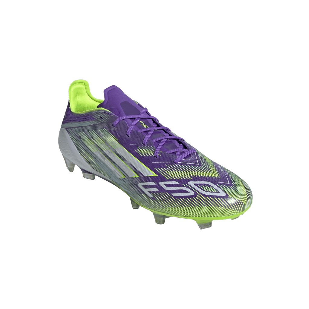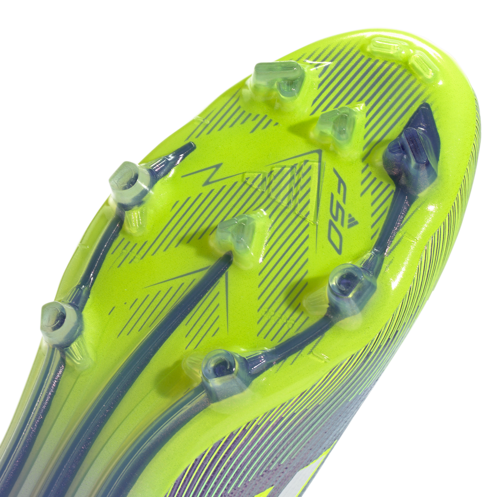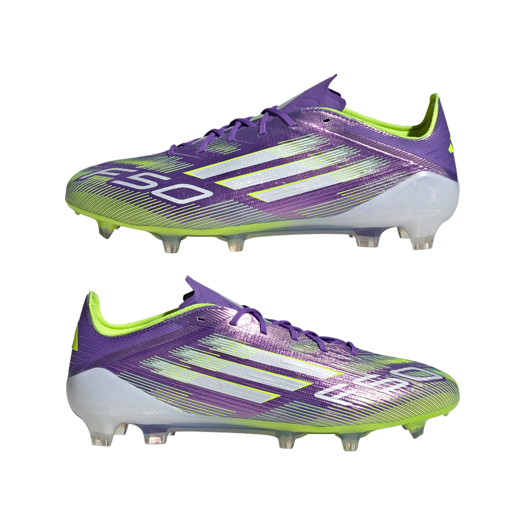 Find your fast to truly express yourself on the field. Feel the rush in adidas F50 cleats engineered for speed. These Elite soccer cleats have a thin Fibertouch upper with a Compression Fit Tunnel Tongue for lockdown and a Sprintweb 3D texture to help keep the ball close when you're flying. Designed for dry grass pitches, the springy Sprintframe 360 outsole supports relentless pace.
