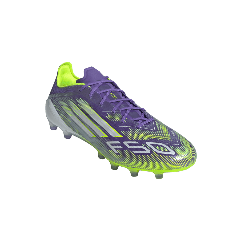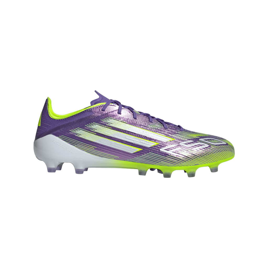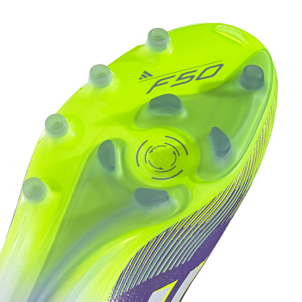 Find your fast to truly express yourself on the field. Feel the rush in adidas F50 boots engineered for speed. These Elite football boots have a thin Fibertouch upper with a Compression Fit Tunnel Tongue for lockdown and a Sprintweb 3D texture to help keep the ball close when you're flying. Designed for artificial grass surfaces, the Traxionframe outsole supports relentless pace.