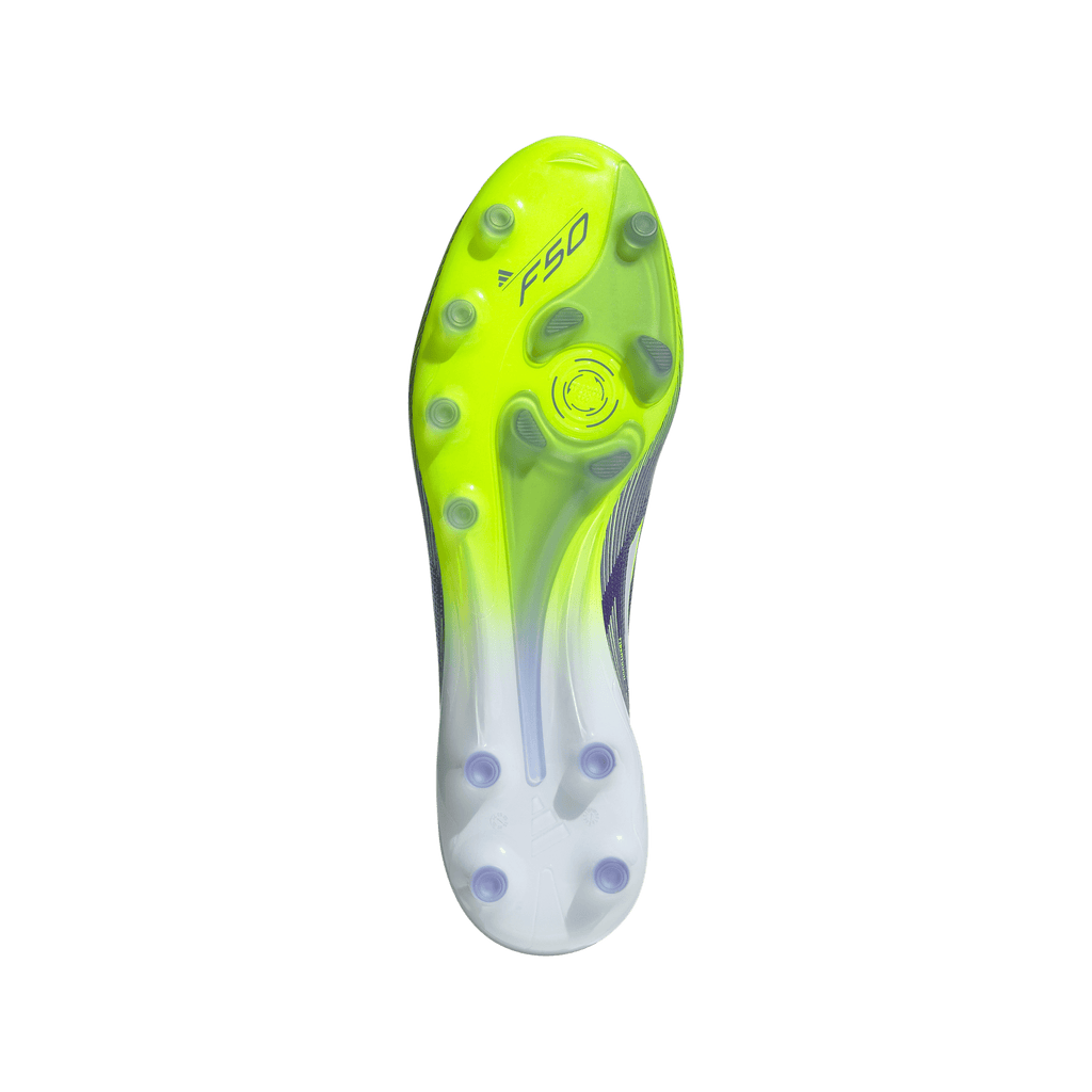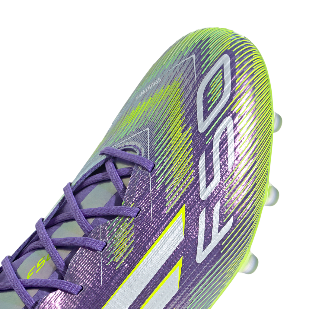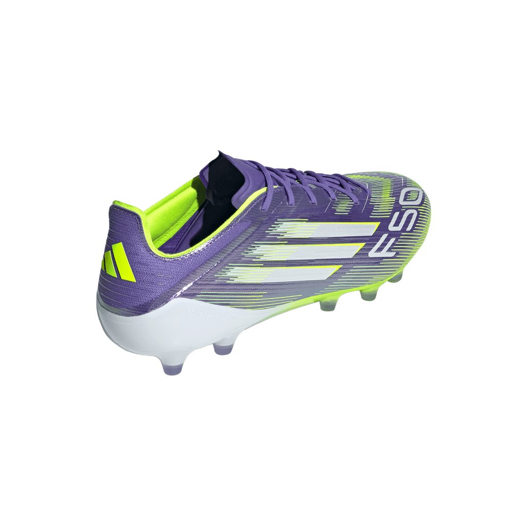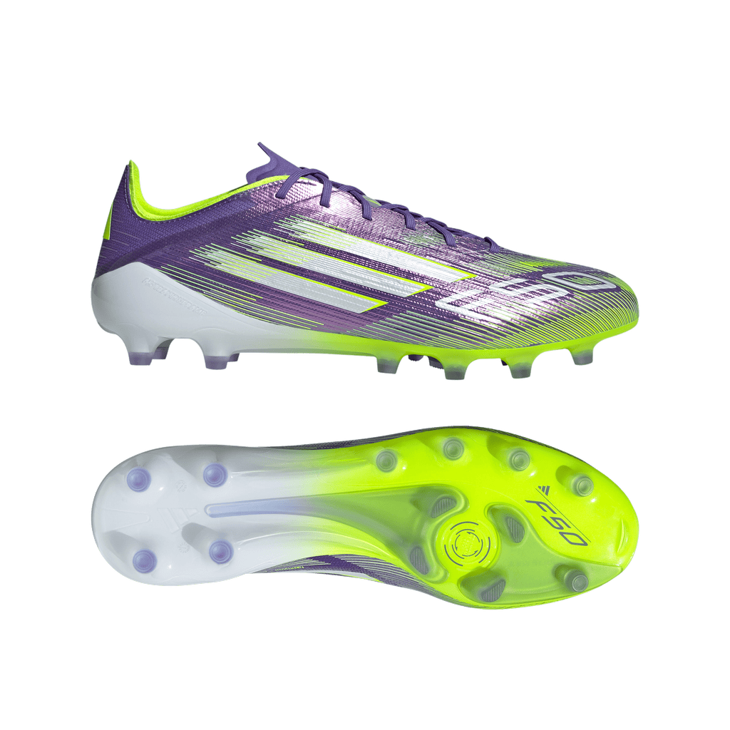 Find your fast to truly express yourself on the field. Feel the rush in adidas F50 boots engineered for speed. These Elite football boots have a thin Fibertouch upper with a Compression Fit Tunnel Tongue for lockdown and a Sprintweb 3D texture to help keep the ball close when you're flying. Designed for artificial grass surfaces, the Traxionframe outsole supports relentless pace.