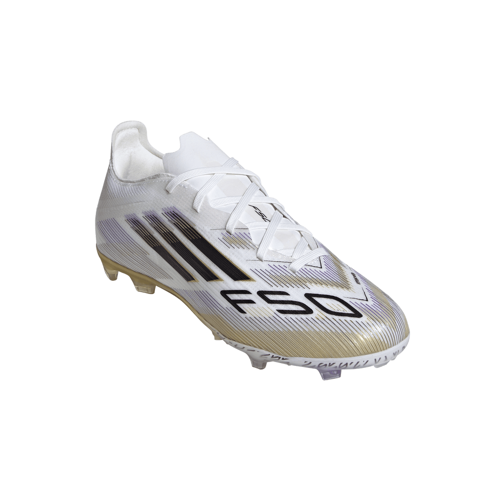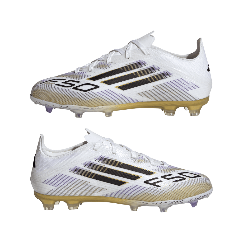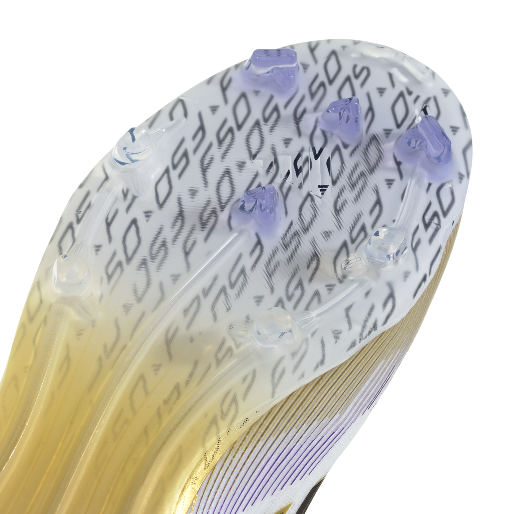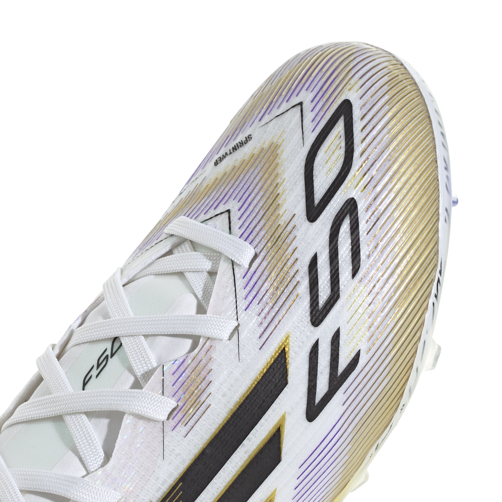 Find your fast to truly express yourself on the field. Feel the rush in adidas F50 boots engineered for speed. These juniors' Elite football boots have a thin Fibertouch upper with a Compression Fit Tunnel Tongue for lockdown and a Sprintweb 3D texture to help keep the ball close when you're flying. Designed for dry grass pitches, the Sprintplate 360 outsole delivers serious pace.