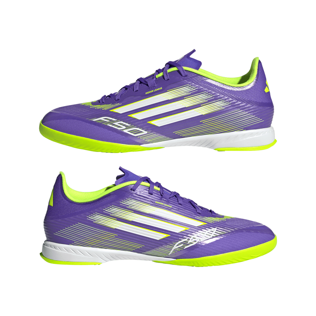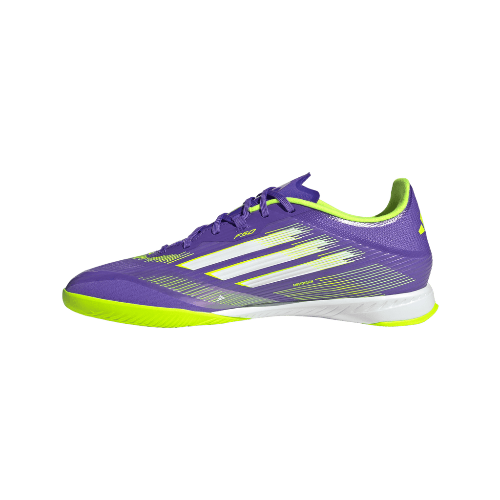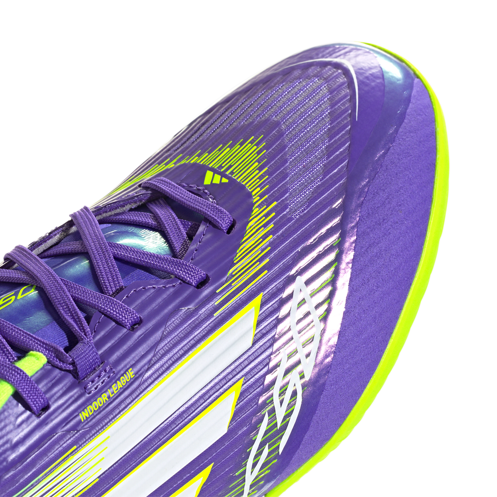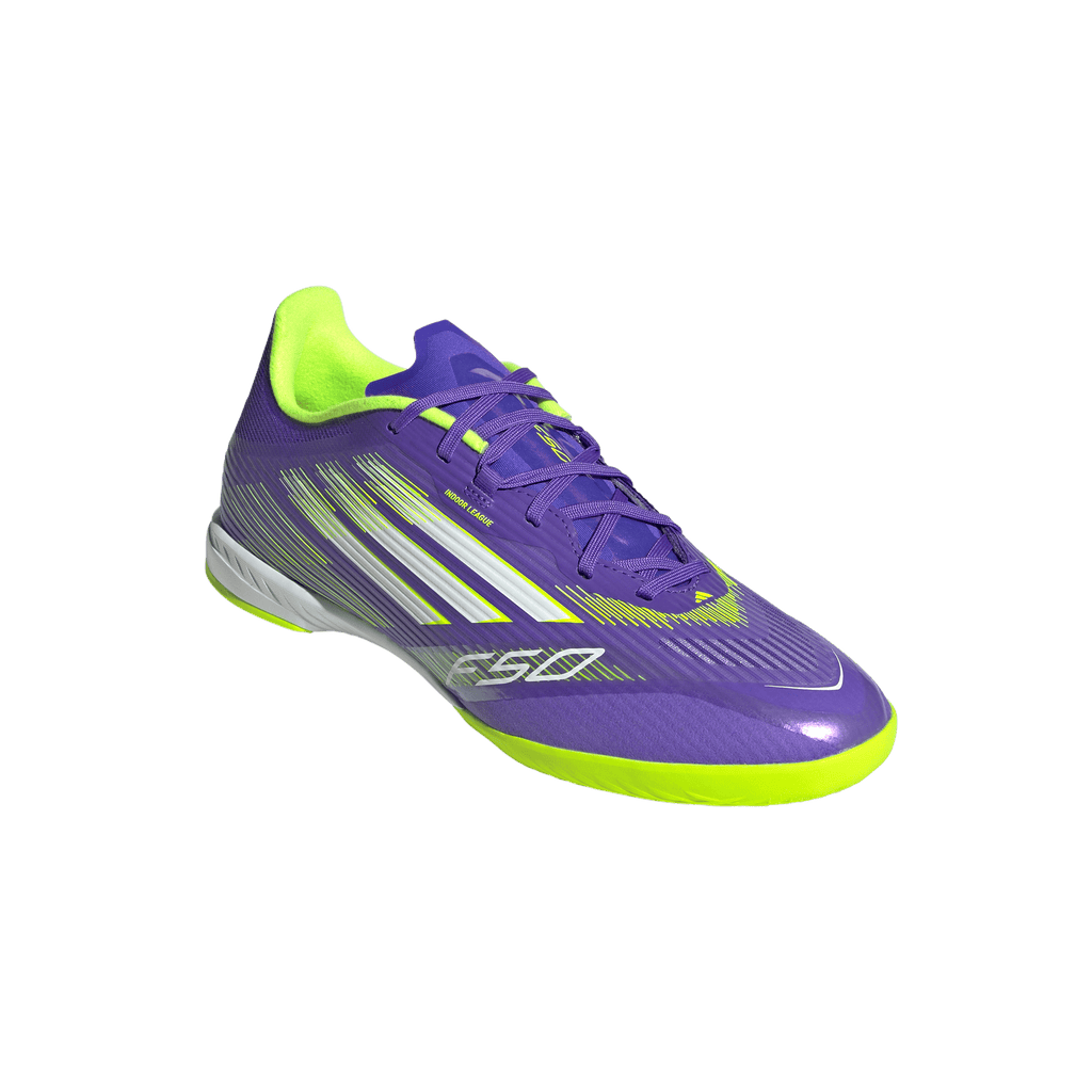 Find your fast to truly express yourself on the court. Feel the rush in adidas F50 boots engineered for speed. Finished with a suede toe bumper for enhanced ball contact, the Fiberskin upper on these League football boots employs an adaptive Tunnel Tongue for rock-solid lockdown. That non-marking rubber outsole lays down serious pace on indoor surfaces.
