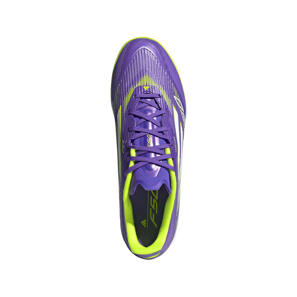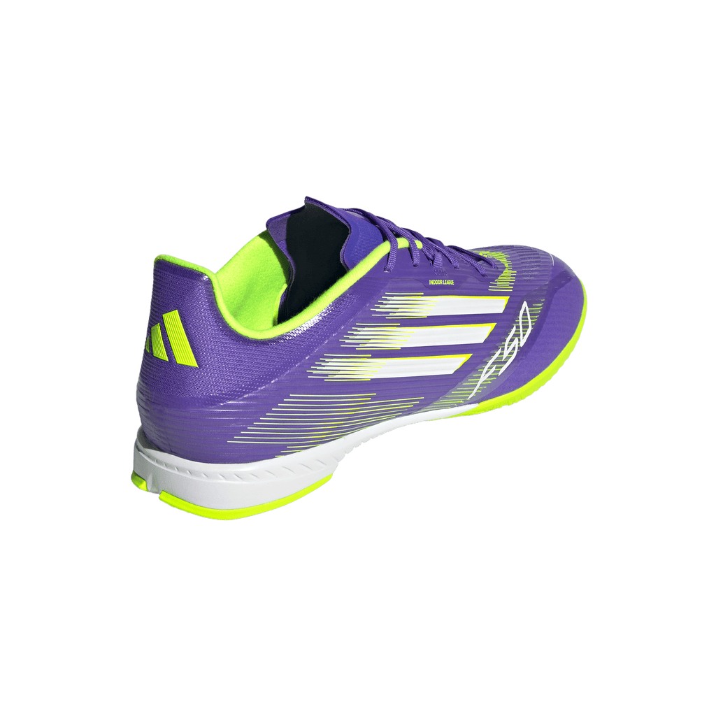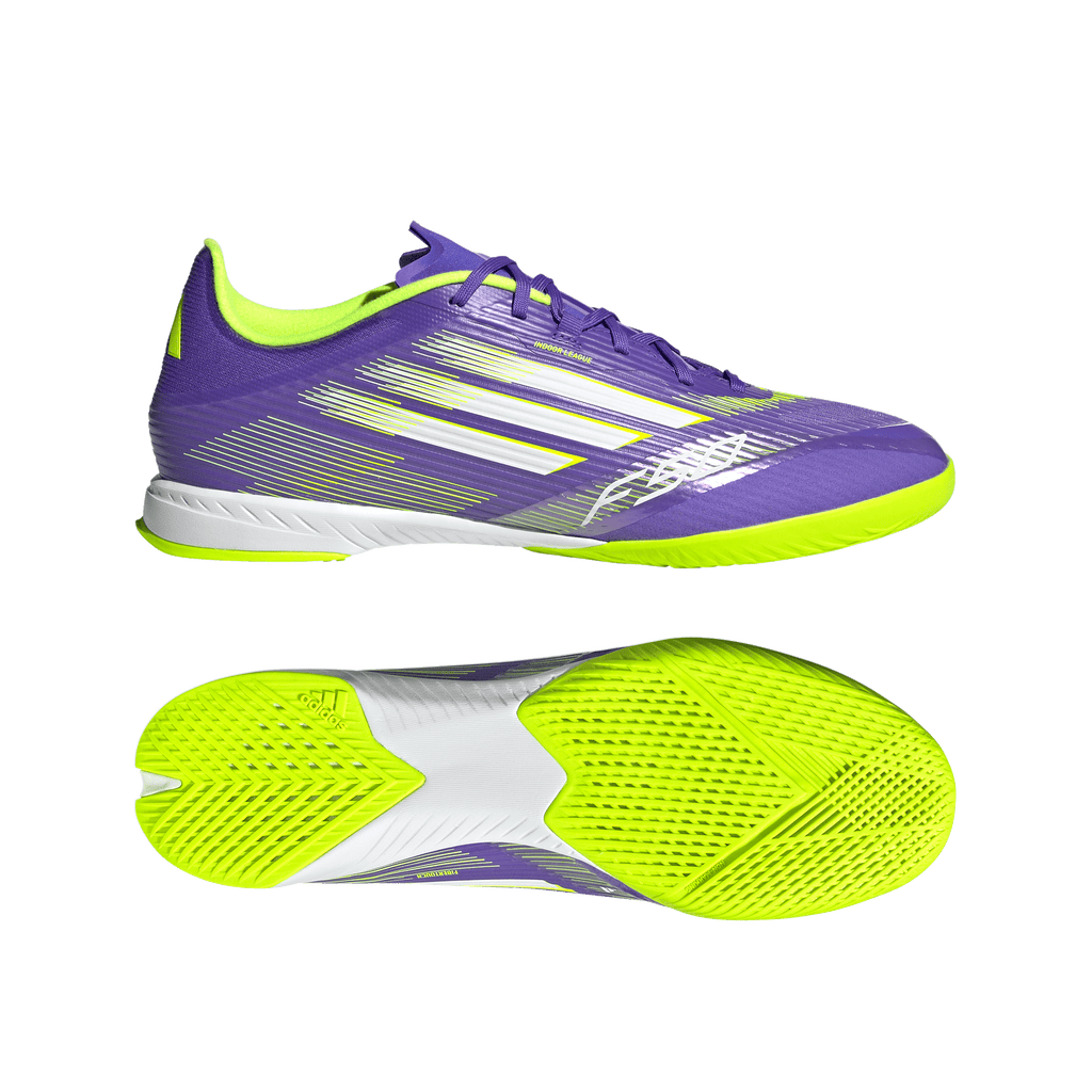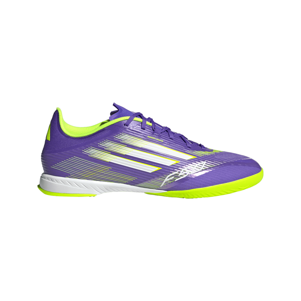 Find your fast to truly express yourself on the court. Feel the rush in adidas F50 boots engineered for speed. Finished with a suede toe bumper for enhanced ball contact, the Fiberskin upper on these League football boots employs an adaptive Tunnel Tongue for rock-solid lockdown. That non-marking rubber outsole lays down serious pace on indoor surfaces.