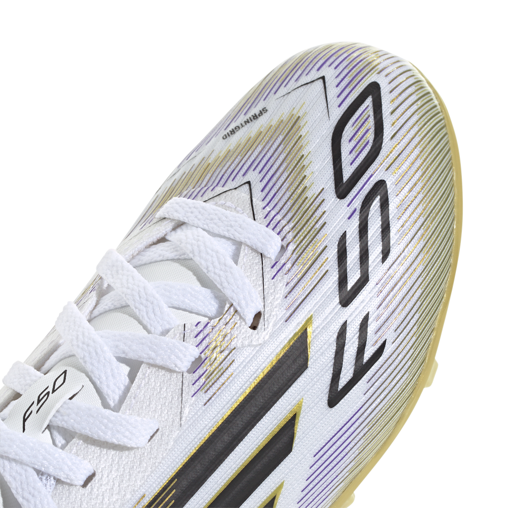 Find your fast to truly express yourself on the field. Feel the rush in adidas F50 boots engineered for speed. Standing out with an eye-catching Sprintgrid print, the Fiberskin upper on these juniors' League football boots employs a perforated tongue for cool play. A lightweight Sprintplate outsole delivers serious pace on multiple surfaces.