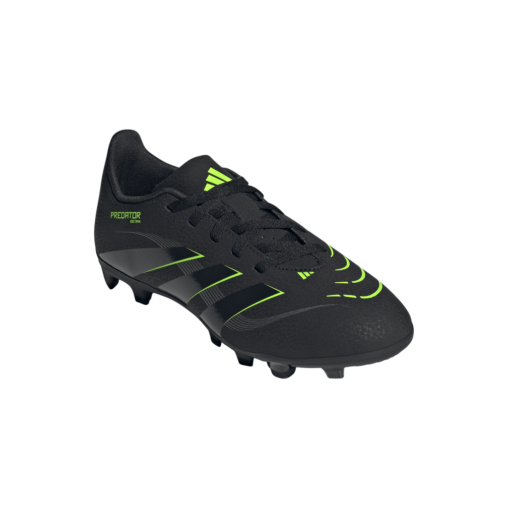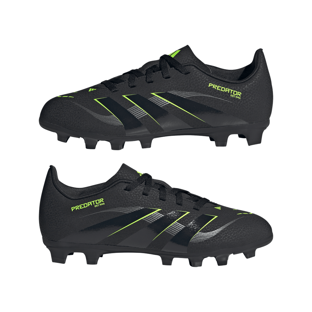 Discover the difference between aiming to score and knowing you will with adidas Predator boots that are crafted for goals. These juniors' Club football boots have a synthetic upper coated with a grippy Strikeprint texture for better ball control. Their versatile outsole is designed to get you into prime shooting positions on dry natural grass, artificial grass and dirt pitches.