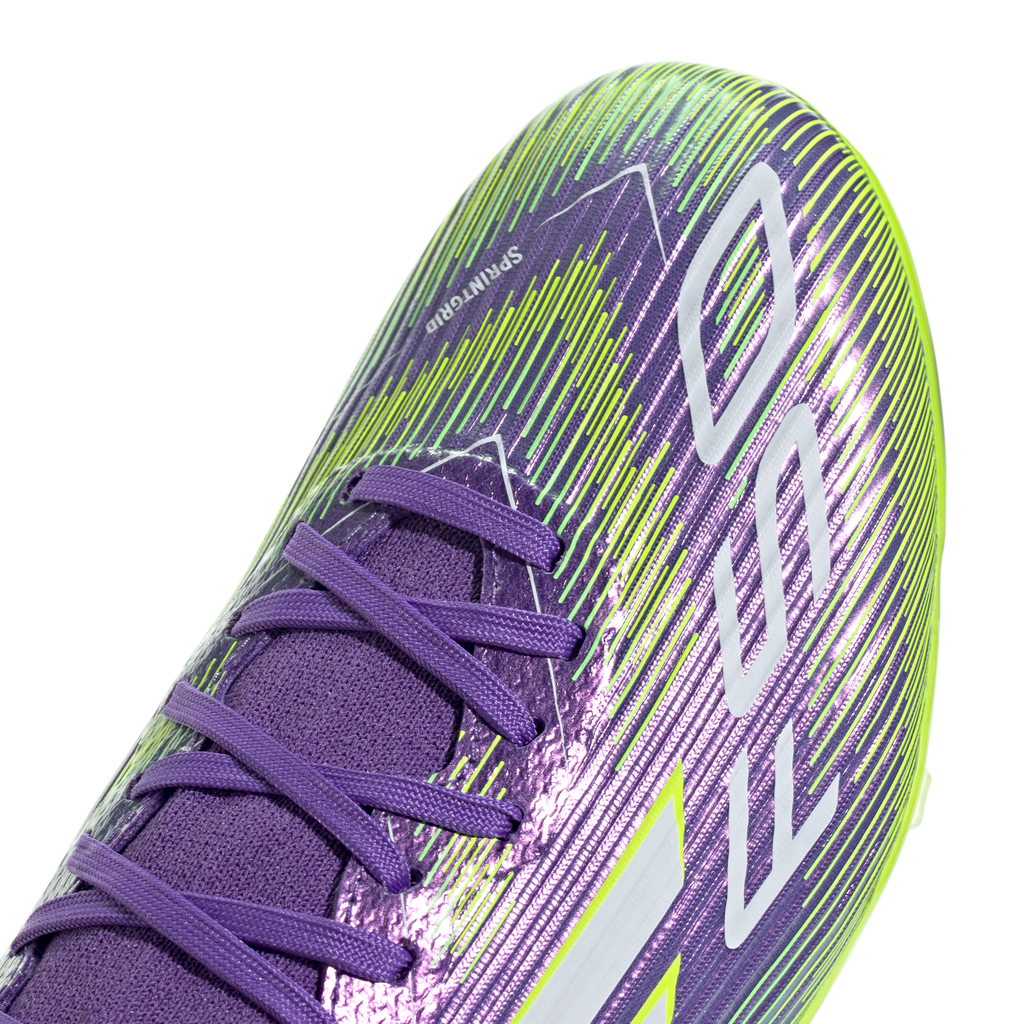 Find your fast to truly express yourself on the field. Feel the rush in adidas F50 boots engineered for speed. Standing out with an eye-catching Sprintgrid print, the Fiberskin upper on these League football boots employs a mid-cut collar for solid lockdown. A lightweight Sprintplate outsole delivers serious pace on multiple surfaces.
