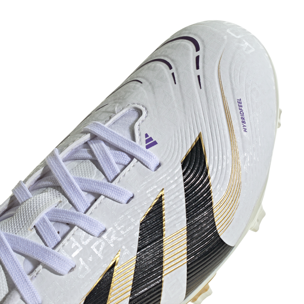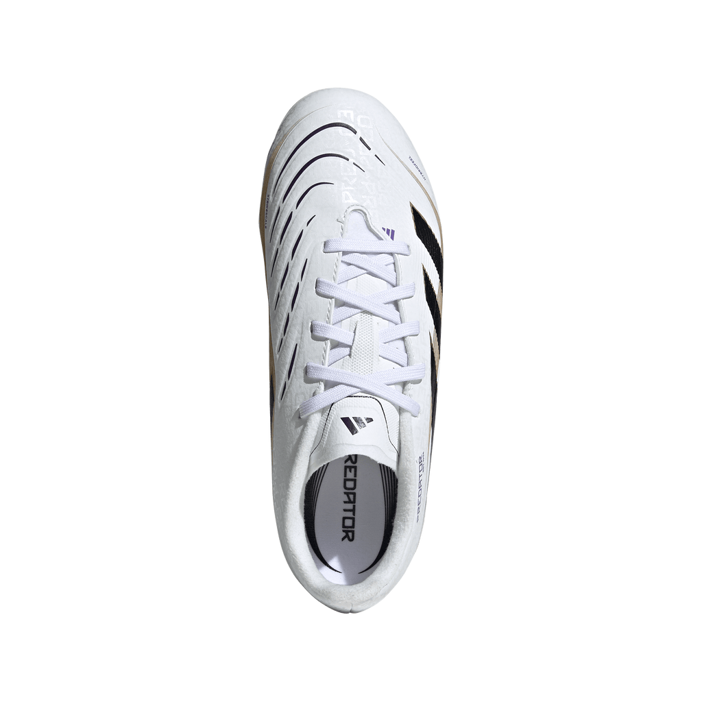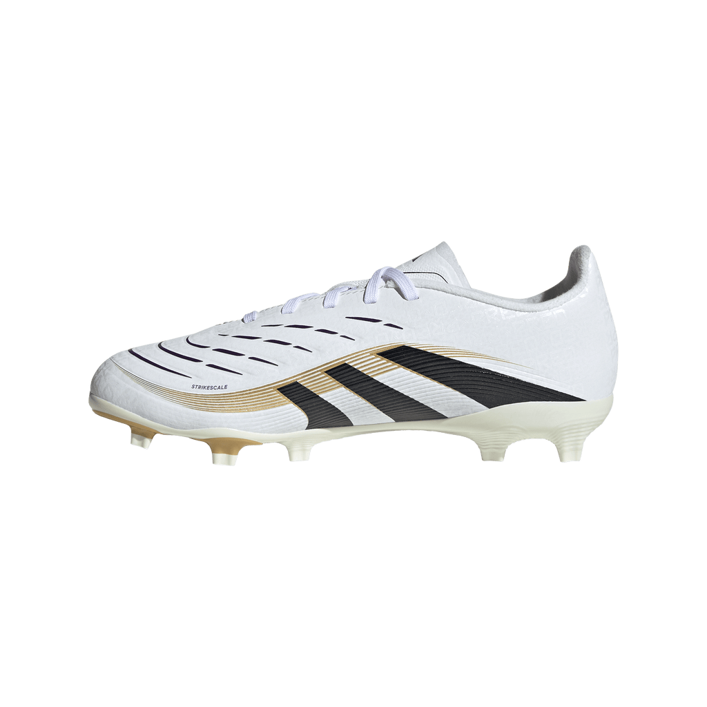 Discover the difference between aiming to score and knowing you will with adidas Predator boots that are crafted for goals. These juniors' League boots have a Hybridfeel upper that incorporates an all-over 3D texture and grippy Strikescale fins to help you manipulate the football during strikes. A Controlplate outsole keeps you stable on firm ground and artificial grass.