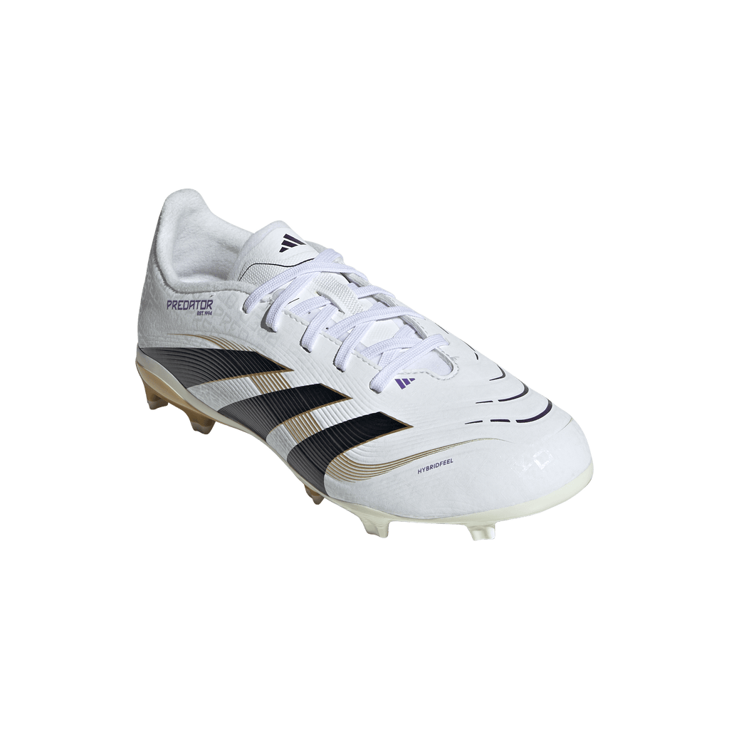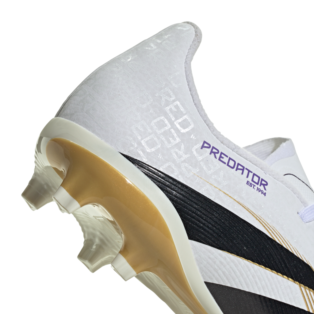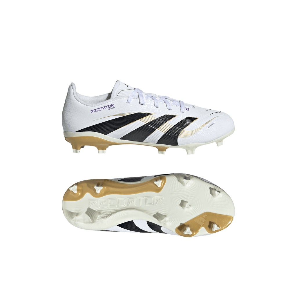 Discover the difference between aiming to score and knowing you will with adidas Predator boots that are crafted for goals. These juniors' League boots have a Hybridfeel upper that incorporates an all-over 3D texture and grippy Strikescale fins to help you manipulate the football during strikes. A Controlplate outsole keeps you stable on firm ground and artificial grass.