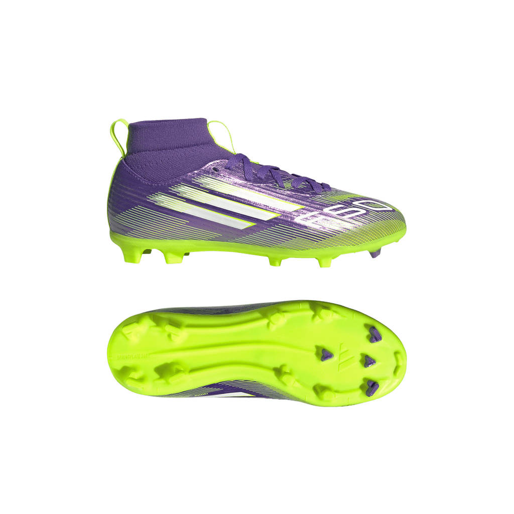 Find your fast to truly express yourself on the field. Feel the rush in adidas F50 boots engineered for speed. Standing out with an eye-catching Sprintgrid print, the Fiberskin upper on these juniors' League football boots employs a mid-cut collar for solid lockdown. A lightweight Sprintplate outsole delivers serious pace on multiple surfaces.