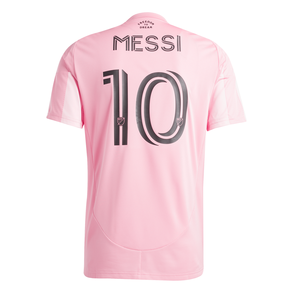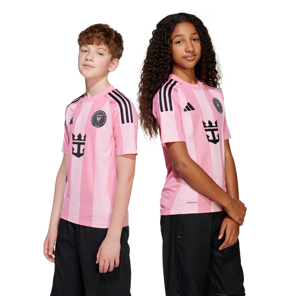 Classic football stripes finished in instantly recognisable Inter Miami CF colours. Standing out in two shades of pink, this adidas jersey leaves no doubts about your favourite club. Created for supporters, it has moisture-managing AEROREADY for all-day comfort and a premium woven badge for full-on team pride. That name and number celebrate the club's greatest player.