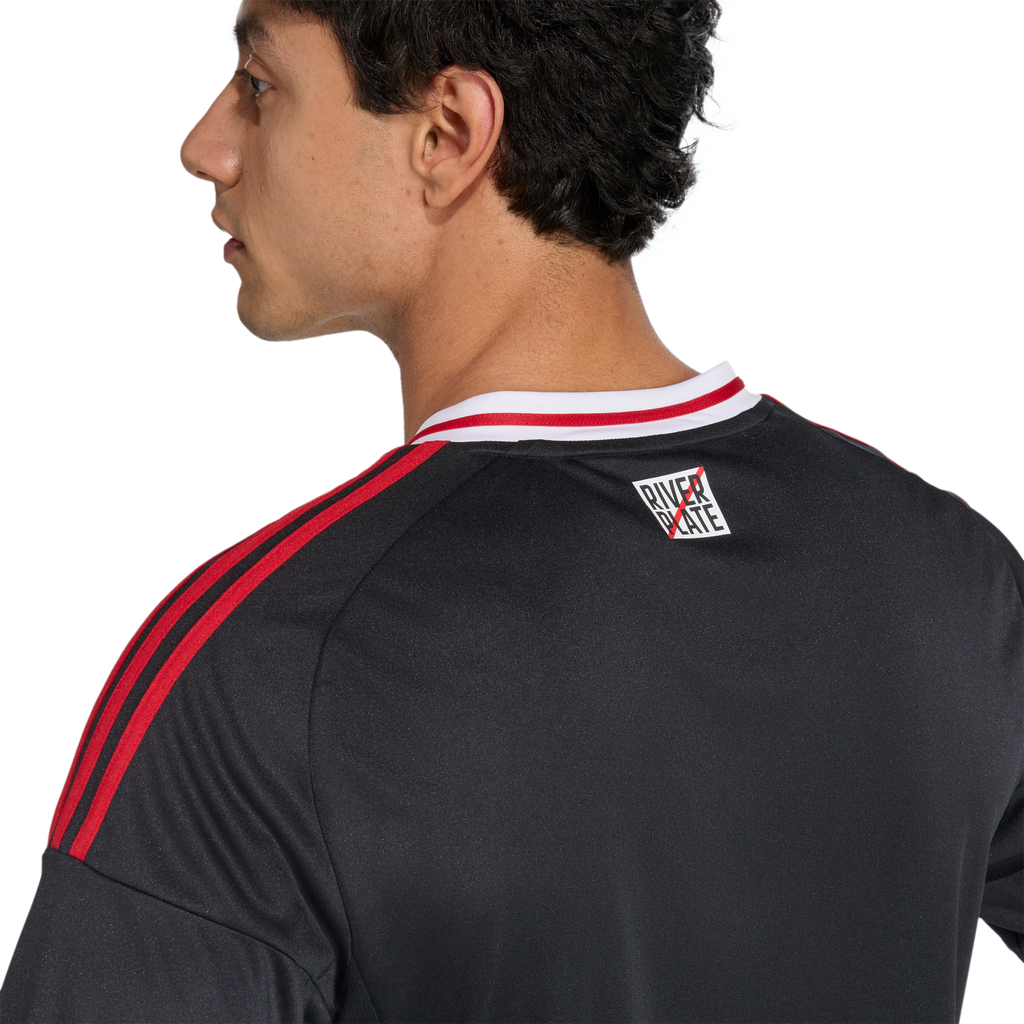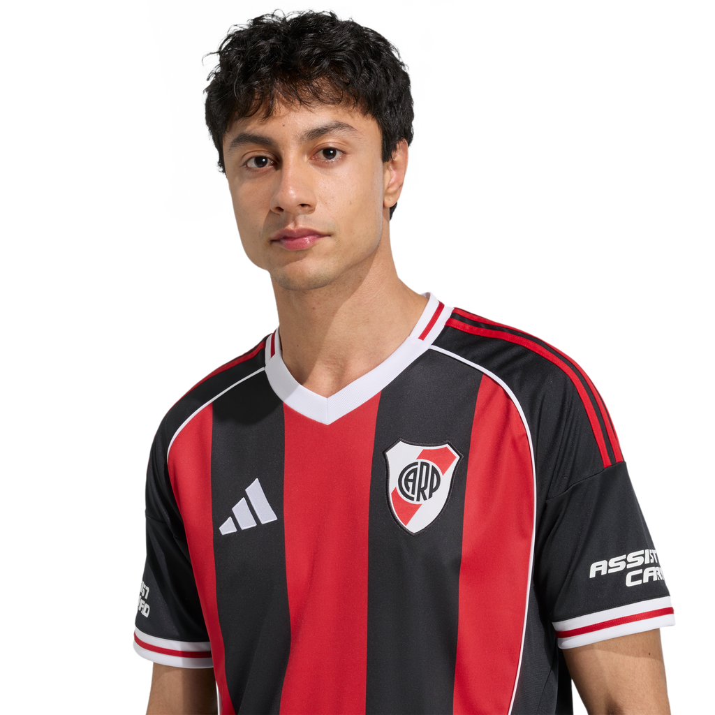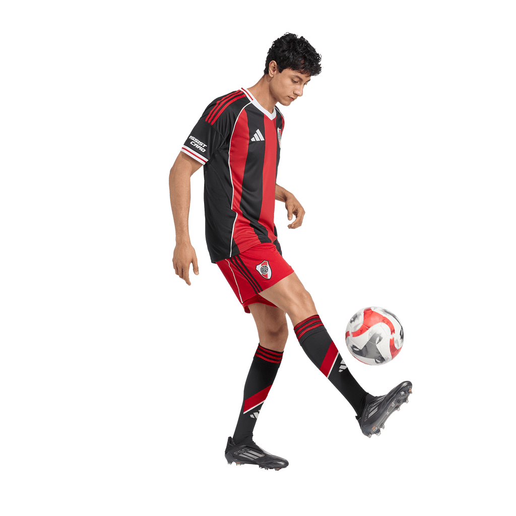 Celebrate an iconic moment in River Plate's rich history by pulling on this adidas away jersey. Borrowing its black and red stripes from the hot air balloon that famously landed on the pitch during the club's 1975 title-winning celebrations, it's sure to spark nostalgia for a glorious past. Moisture-managing AEROREADY keeps you comfortable and a woven badge pumps up your football pride.
