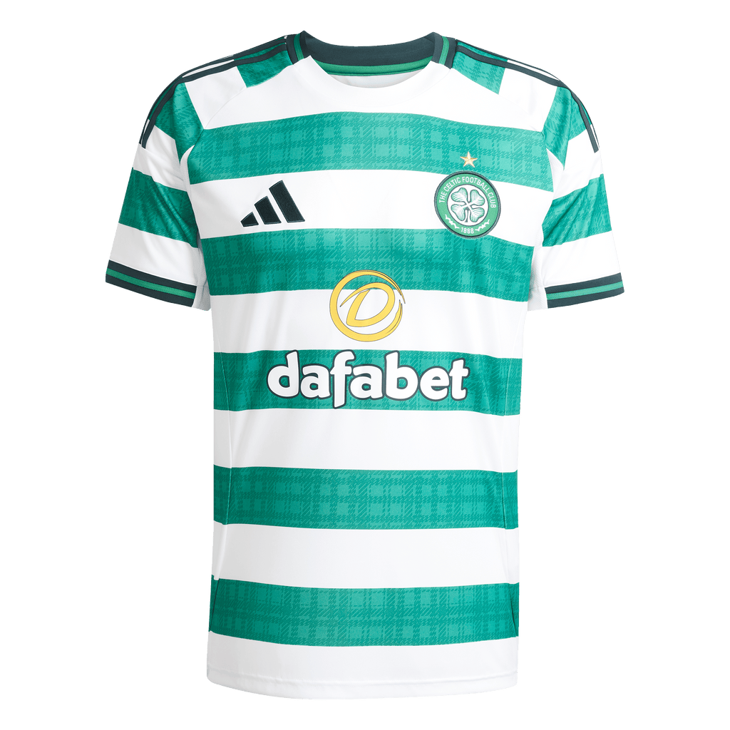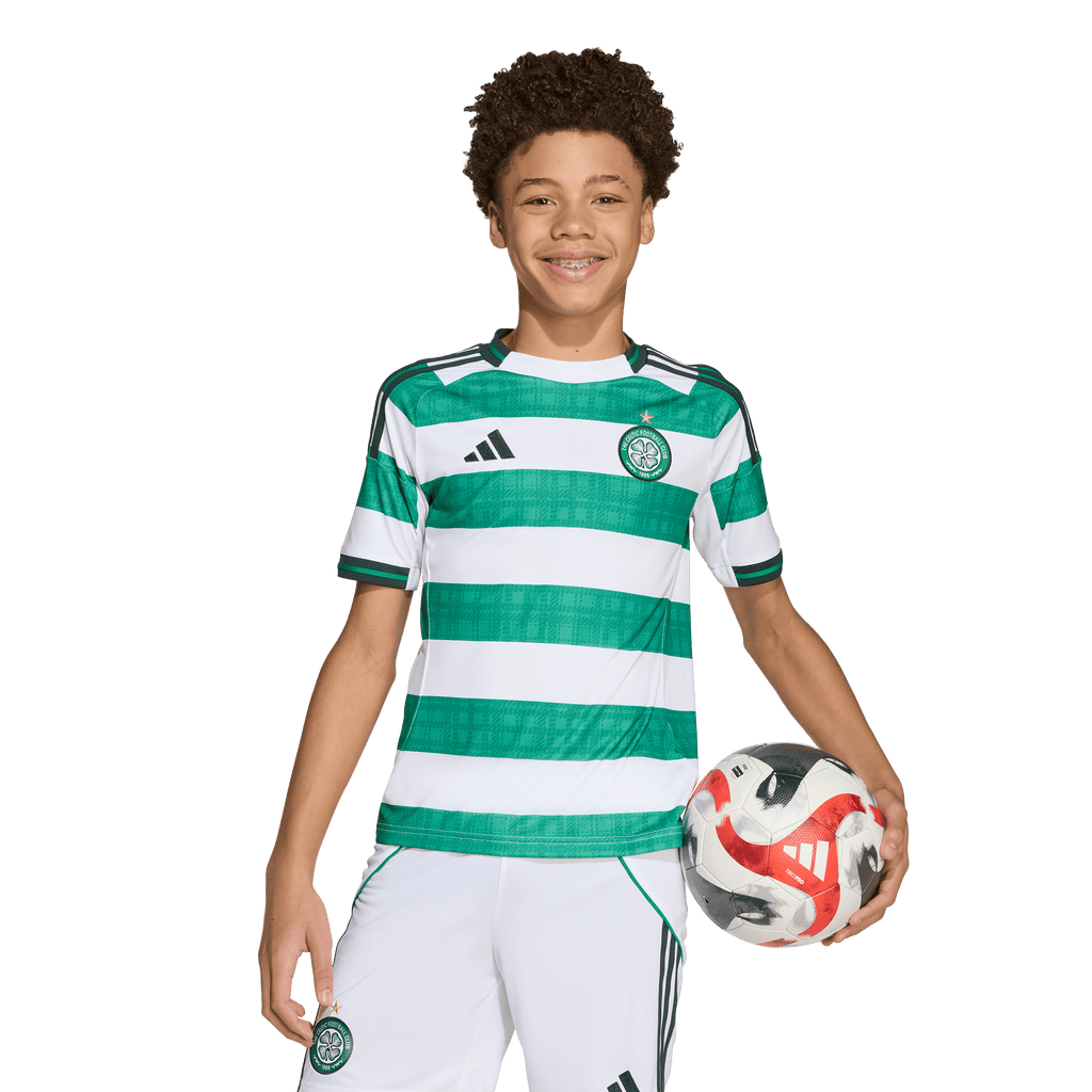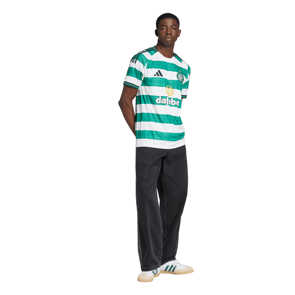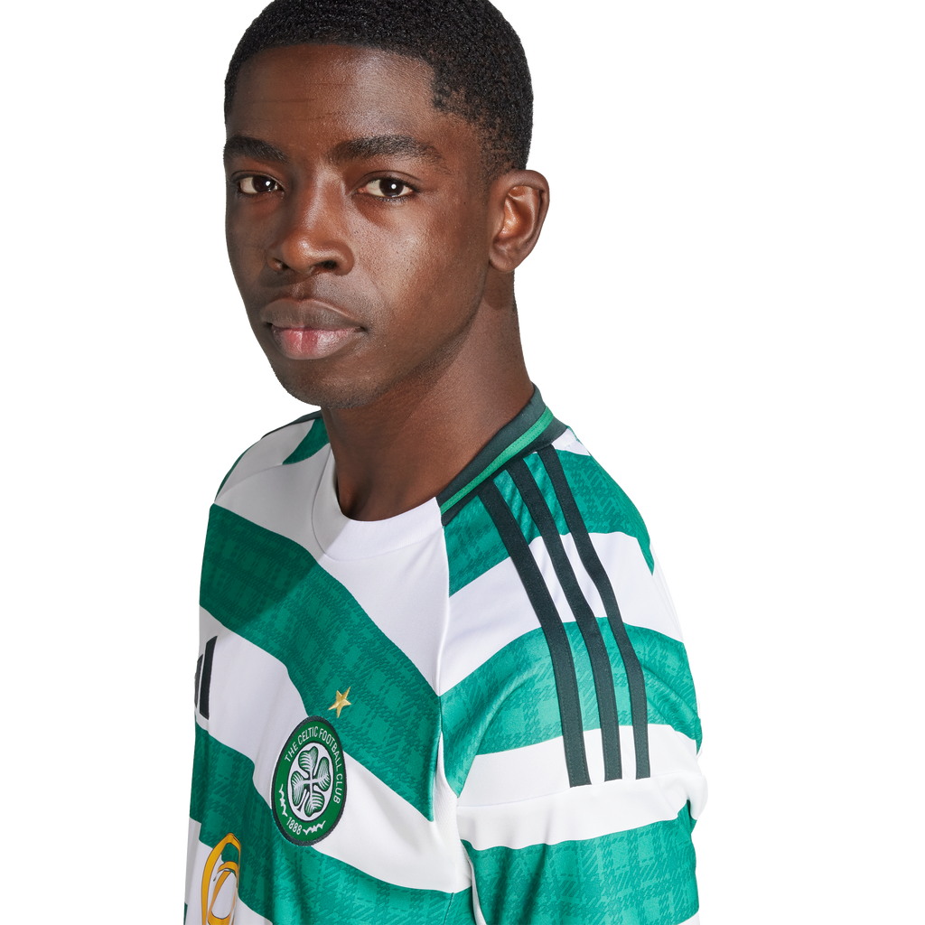 Steeped in tradition, this adidas Celtic FC home jersey shows off the club's iconic hoops. Look more closely at the green ones, though, and you'll see an extra detail inspired by Celtic tartan. Behind this football shirt's standout look, moisture-managing AEROREADY helps keep you dry and comfortable whether you're on the pitch, in the stands or watching the big game from home.