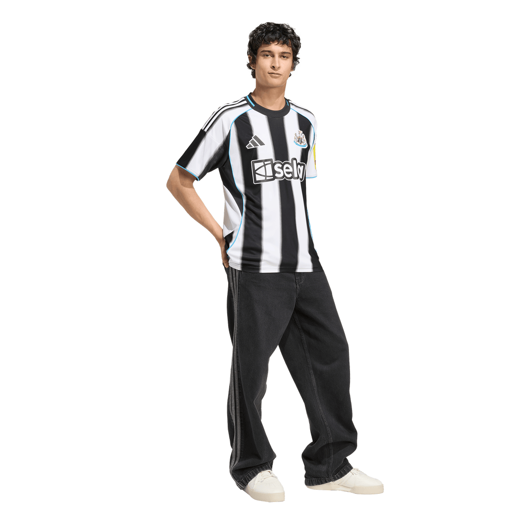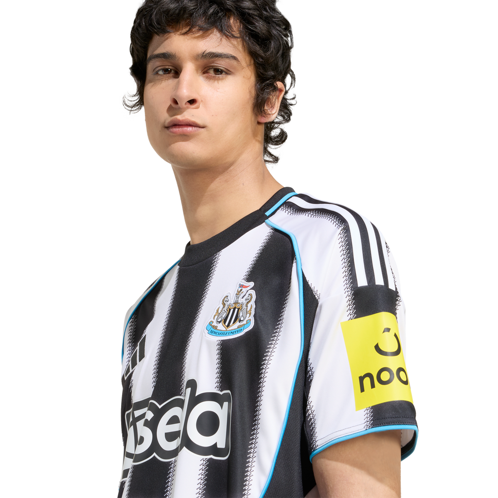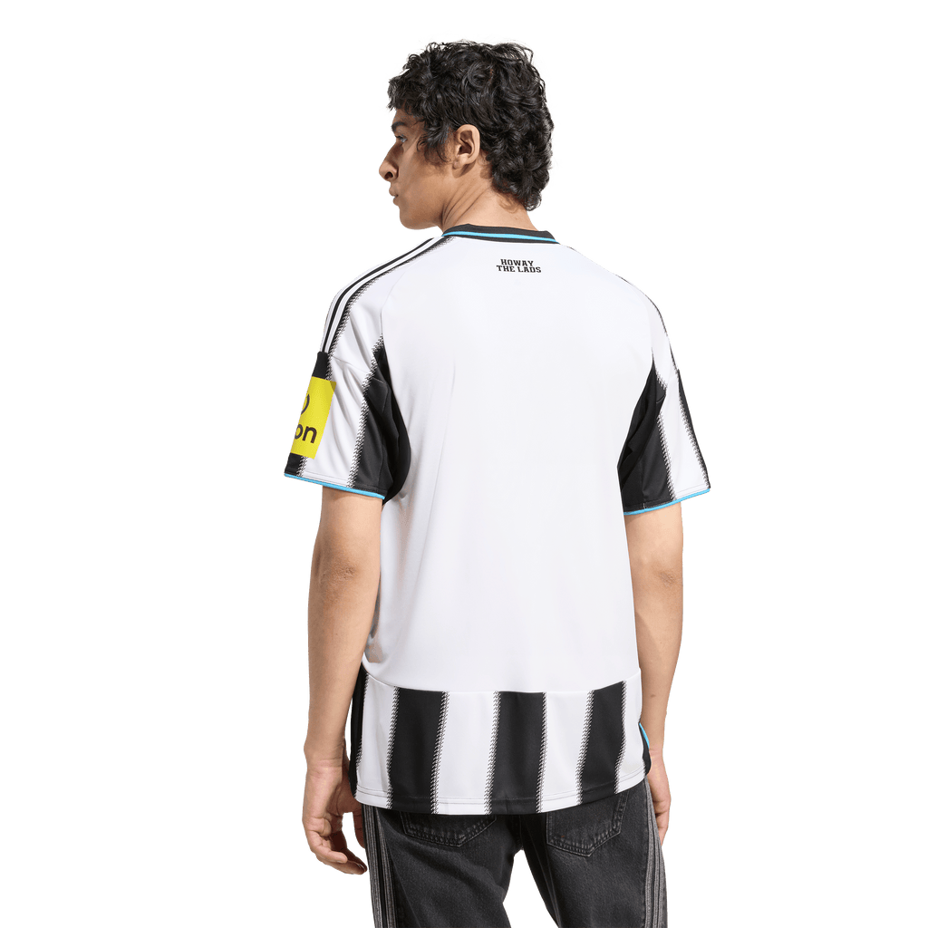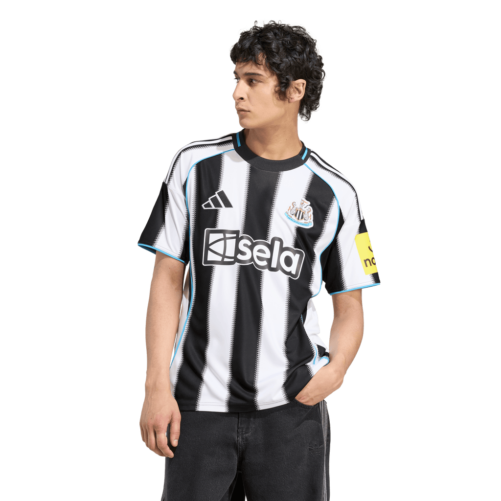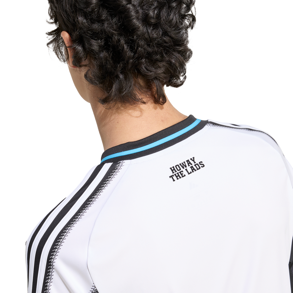 Classic home colours with a twist of local tradition. The time-honoured shepherd's check pattern added to the edges of the stripes on this Newcastle United FC jersey create blurred transitions that really catch the eye. Part of a fan-focused kit that features moisture-managing AEROREADY, this adidas football shirt is finished with a sewn-on club badge and "Howay the lads" sign-off.