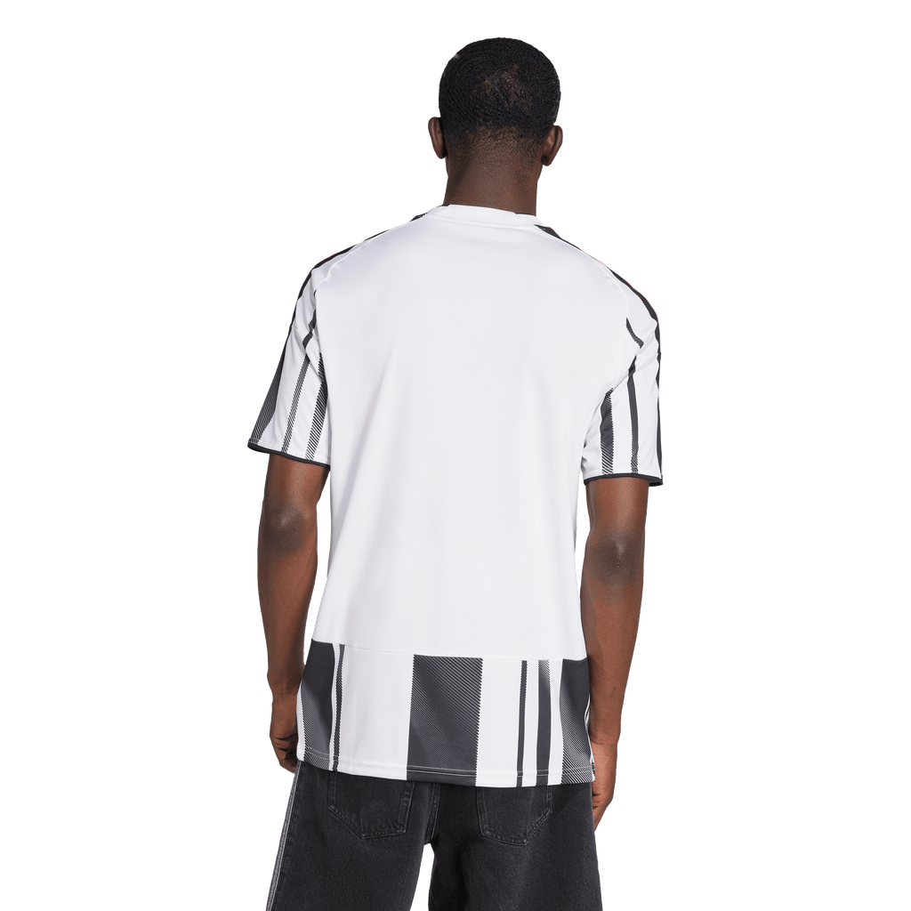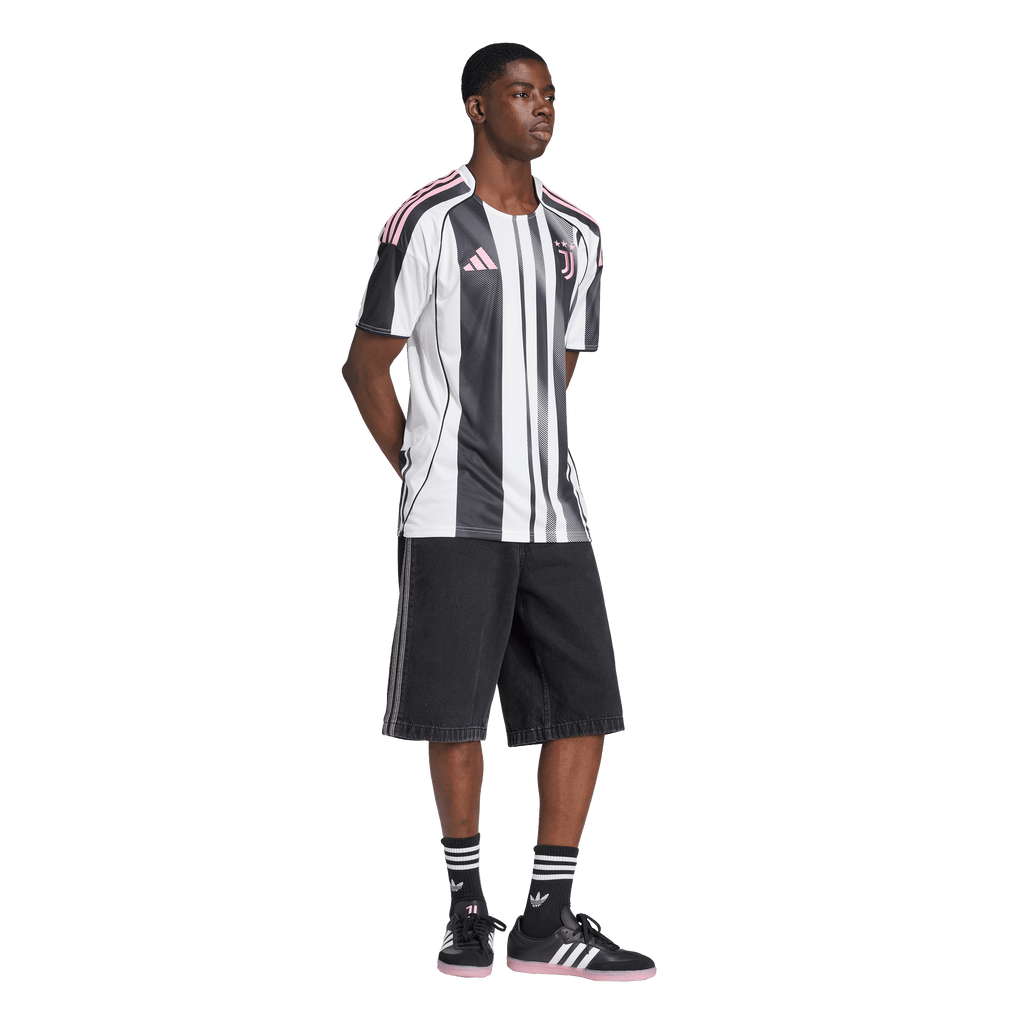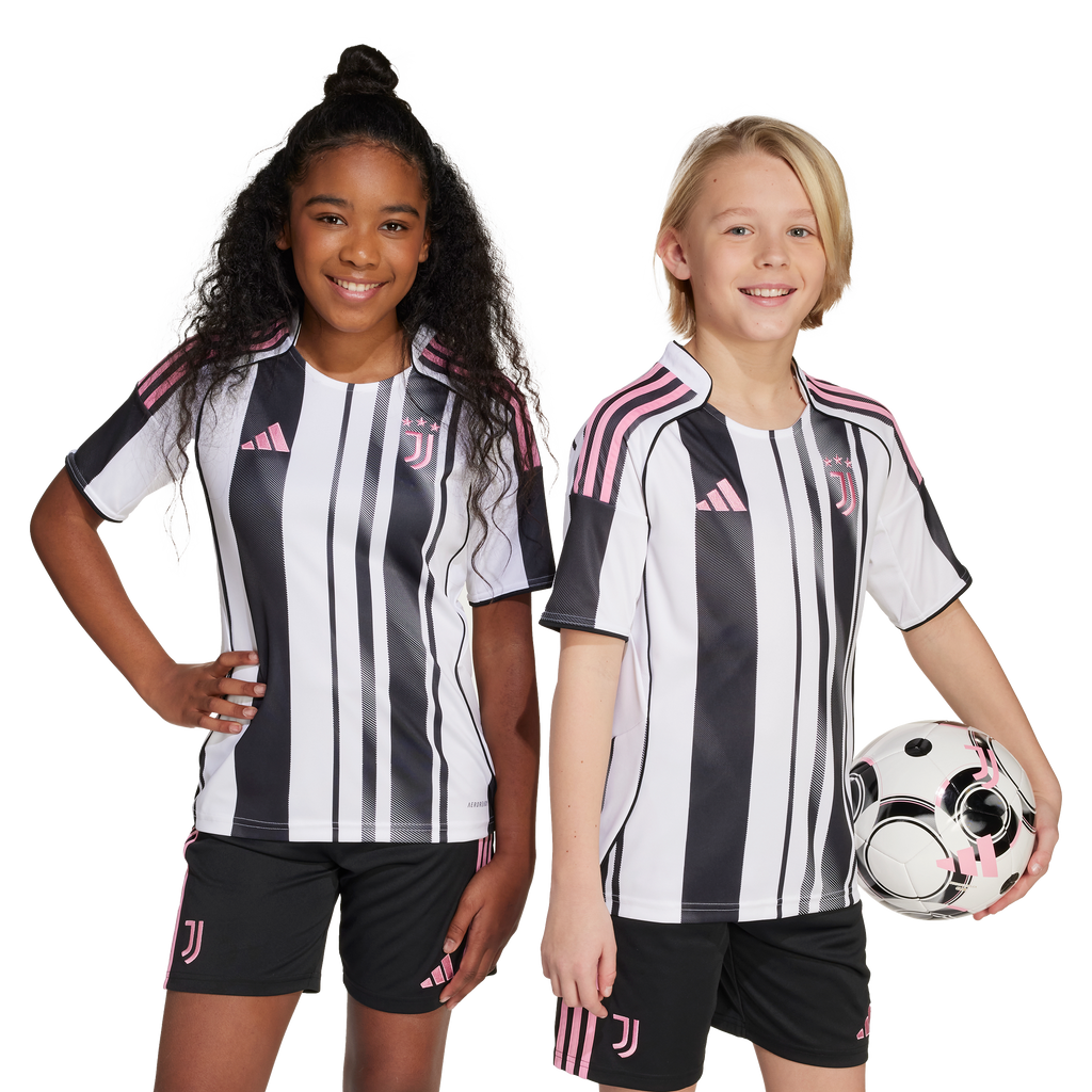 Football tradition with a twist. This adidas Juventus home jersey plays with the club's famous stripes to produce a design that really catches the eye. Created to keep fans comfortable, it teams moisture-managing AEROREADY with smooth interlock fabric. Finished in the club's timeless pink colours, an embroidered badge flashes your fandom.